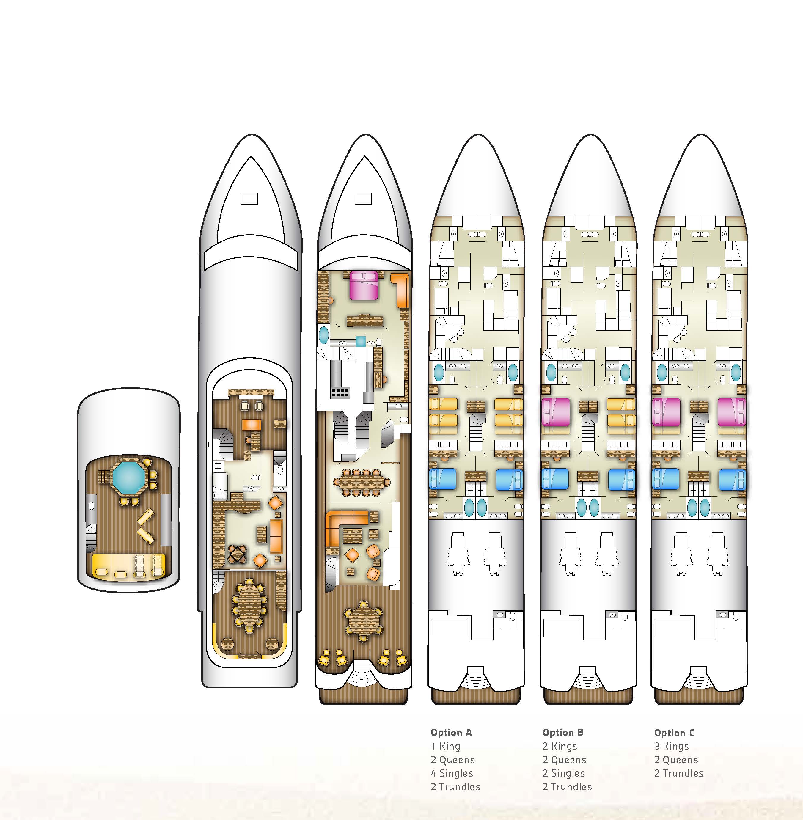 | Types de cabines | 5 (3 × double, 2 × double / twin, 2 × lits supplémentaires) |