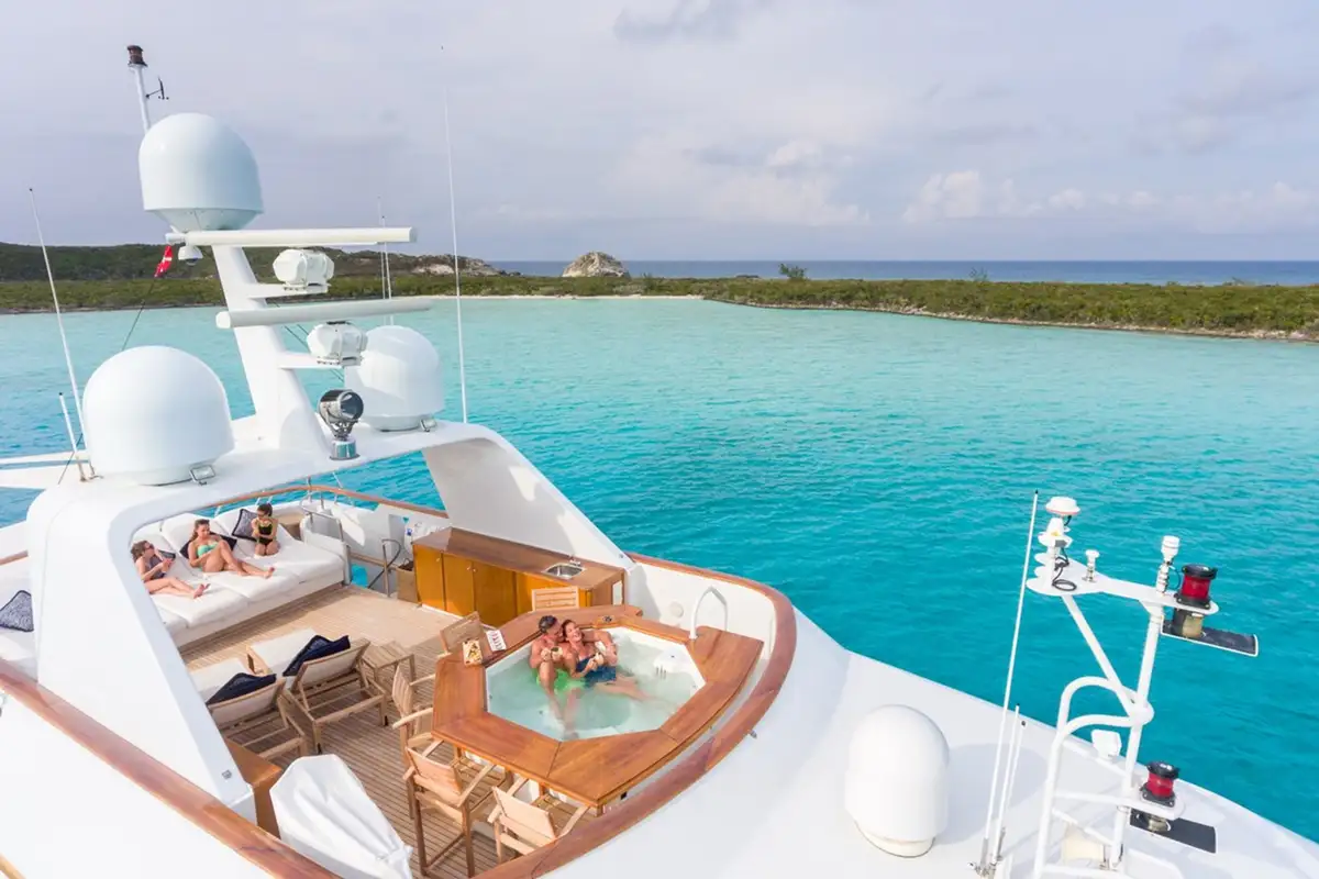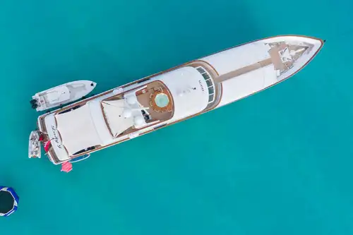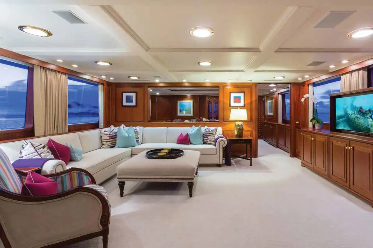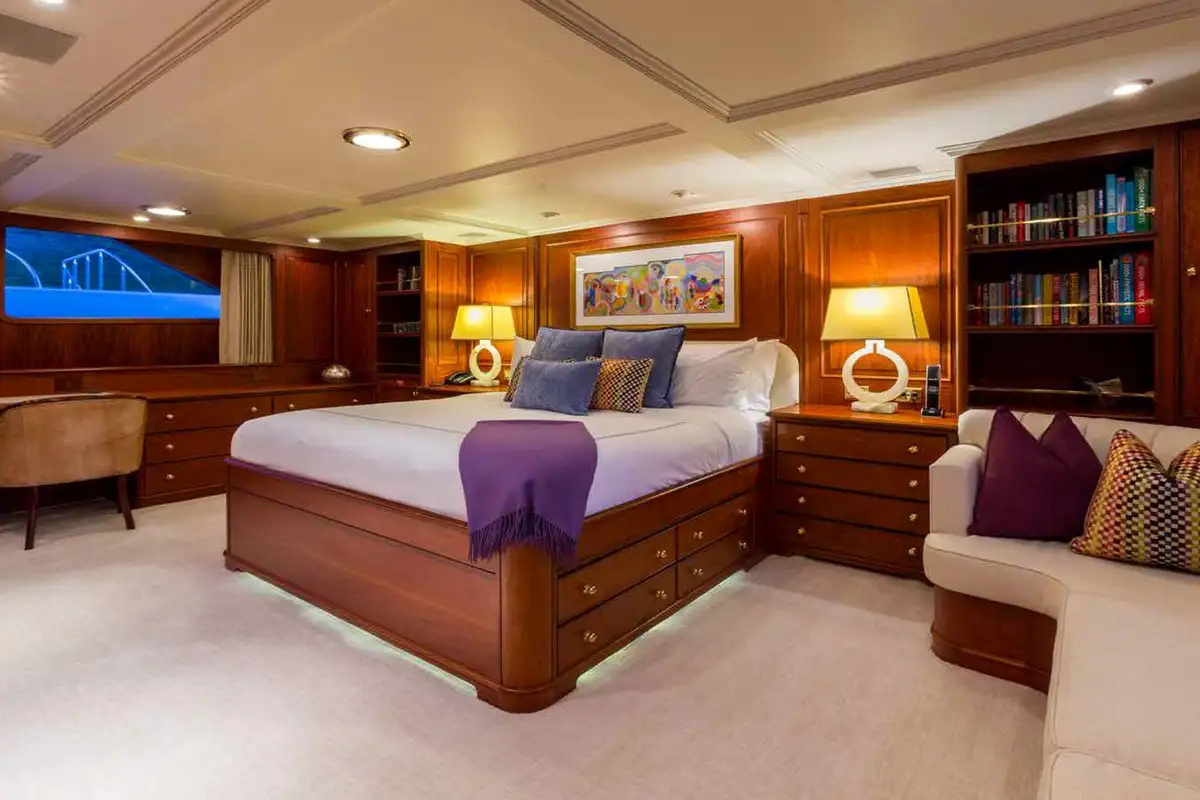From her swim platform, you are greeted by the attentive and professional crew, ready to cater to your every need. Your journey begins as guests are naturally drawn to the cockpit on the main deck via a tapering staircase, setting the stage for an unforgettable cruise.