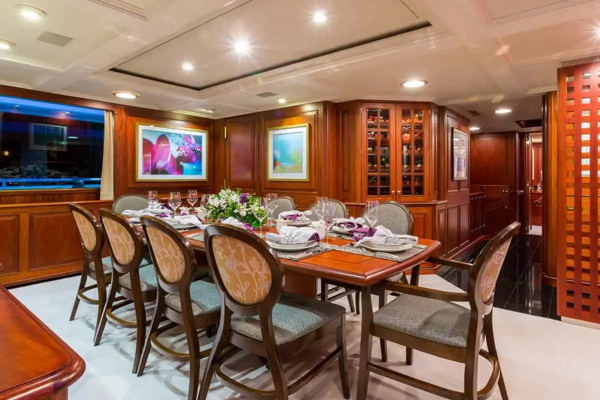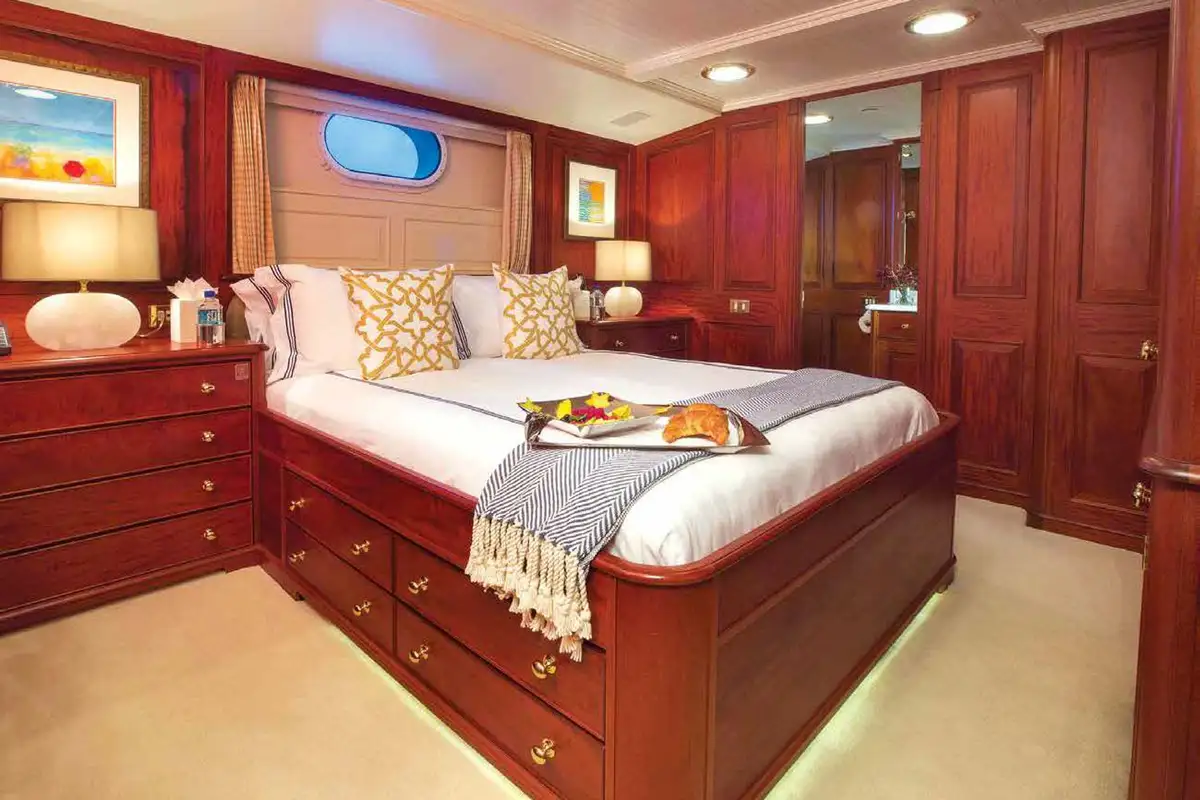 Descending to the lower deck, guests are presented with a choice of four immaculate guest suites, each offering a sanctuary of tranquillity and relaxation. From two queen-sized berth cabins to two twin/king-sized berth convertible suites, various layouts can be tailored to your needs by LADY J's dedicated crew.
