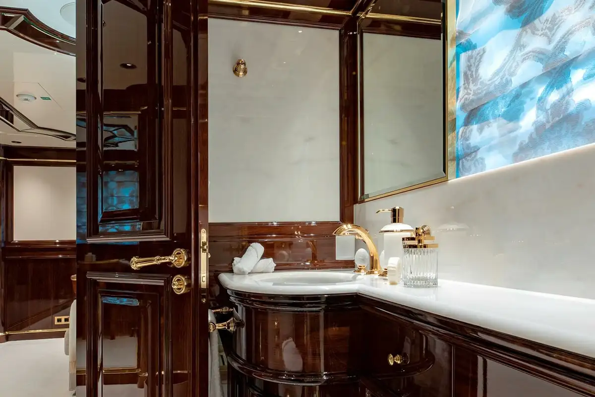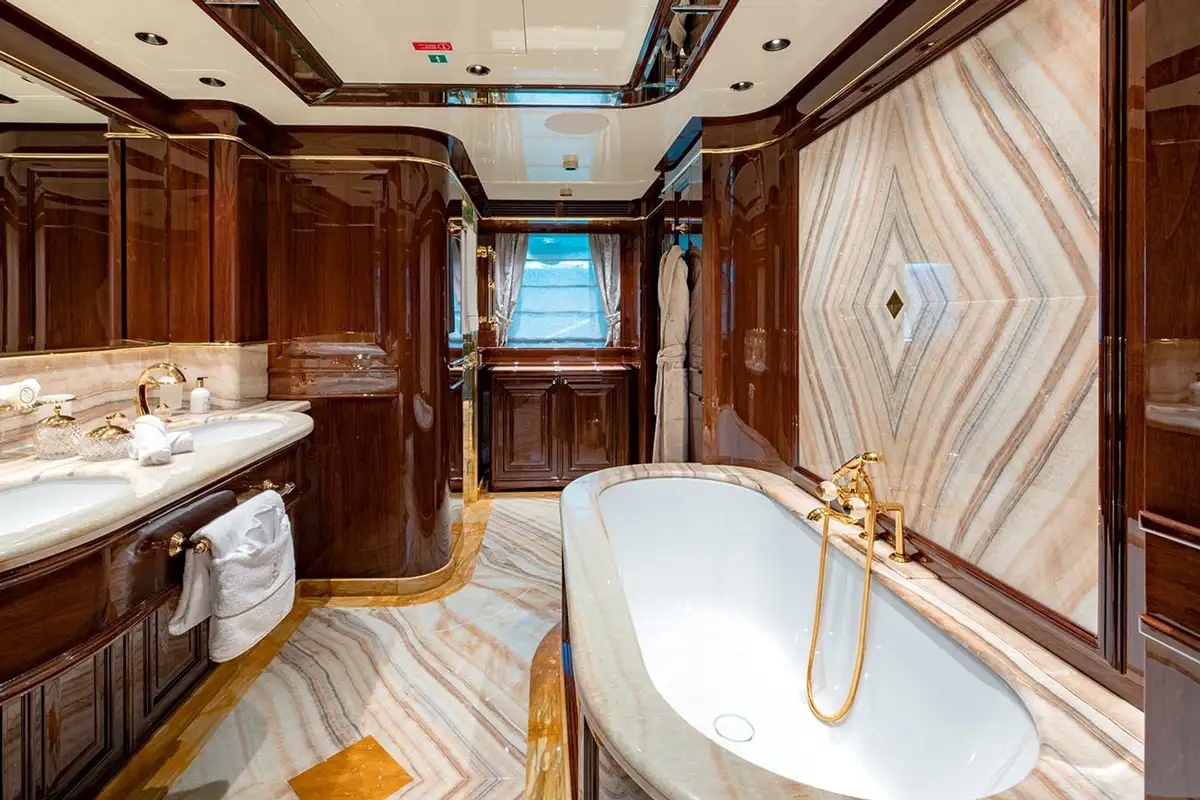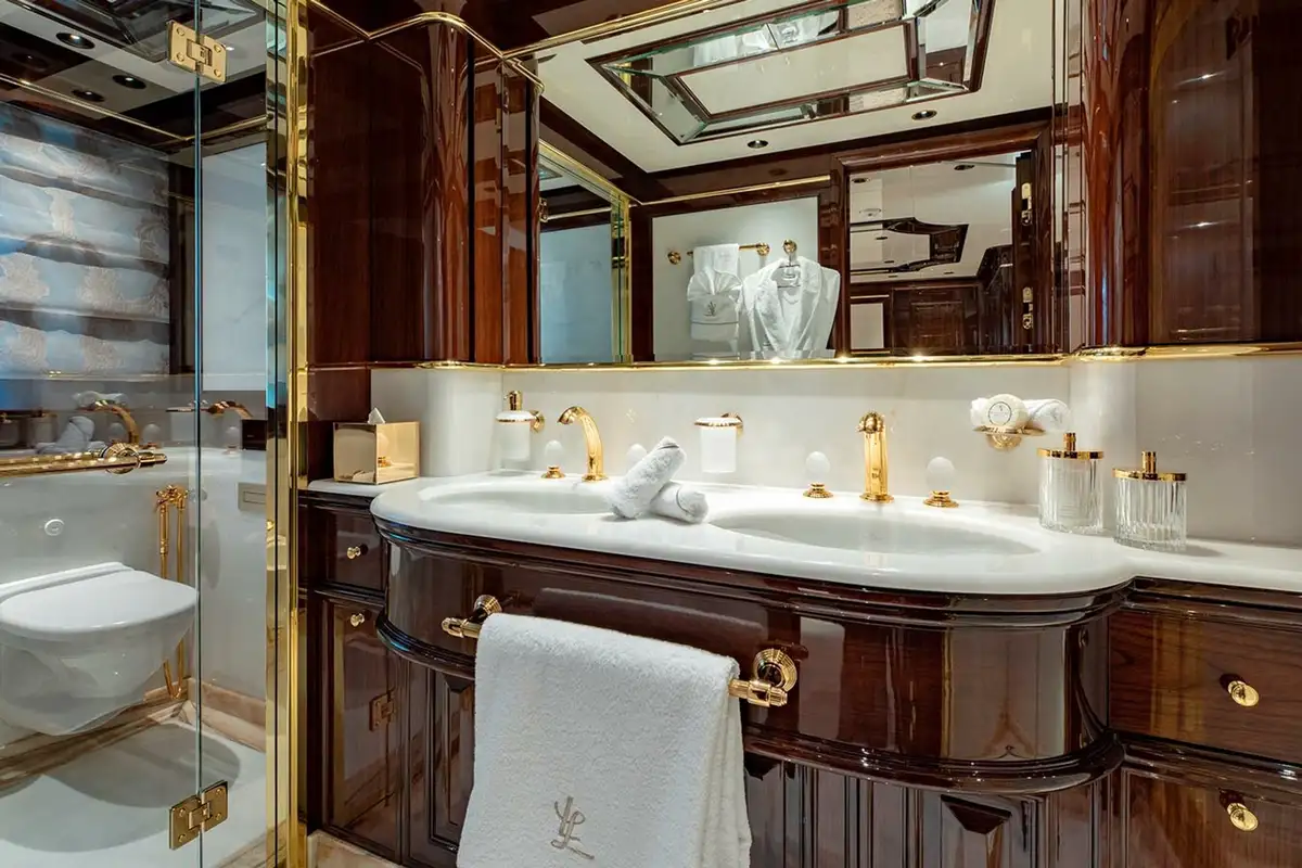 Offering versatile charter accommodation, Lady Lena can welcome up to 12 guests over six staterooms, comprising of the full beam Primary Stateroom, three VIP and two multi-purpose doubles with sofa-beds and pullmans. All staterooms are exquisitely finished, with the primary stateroom being a particular haven of luxury, with a separate office and onyx-clad bathroom, complete with his and hers vanity, full bath and separate shower room. Excellent service is guaranteed, with nine crew members on board to look after guest’s every need, and on-board luxuries such as a Spa are guaranteed to leave everyone relaxed and refreshed at the end of their stay.