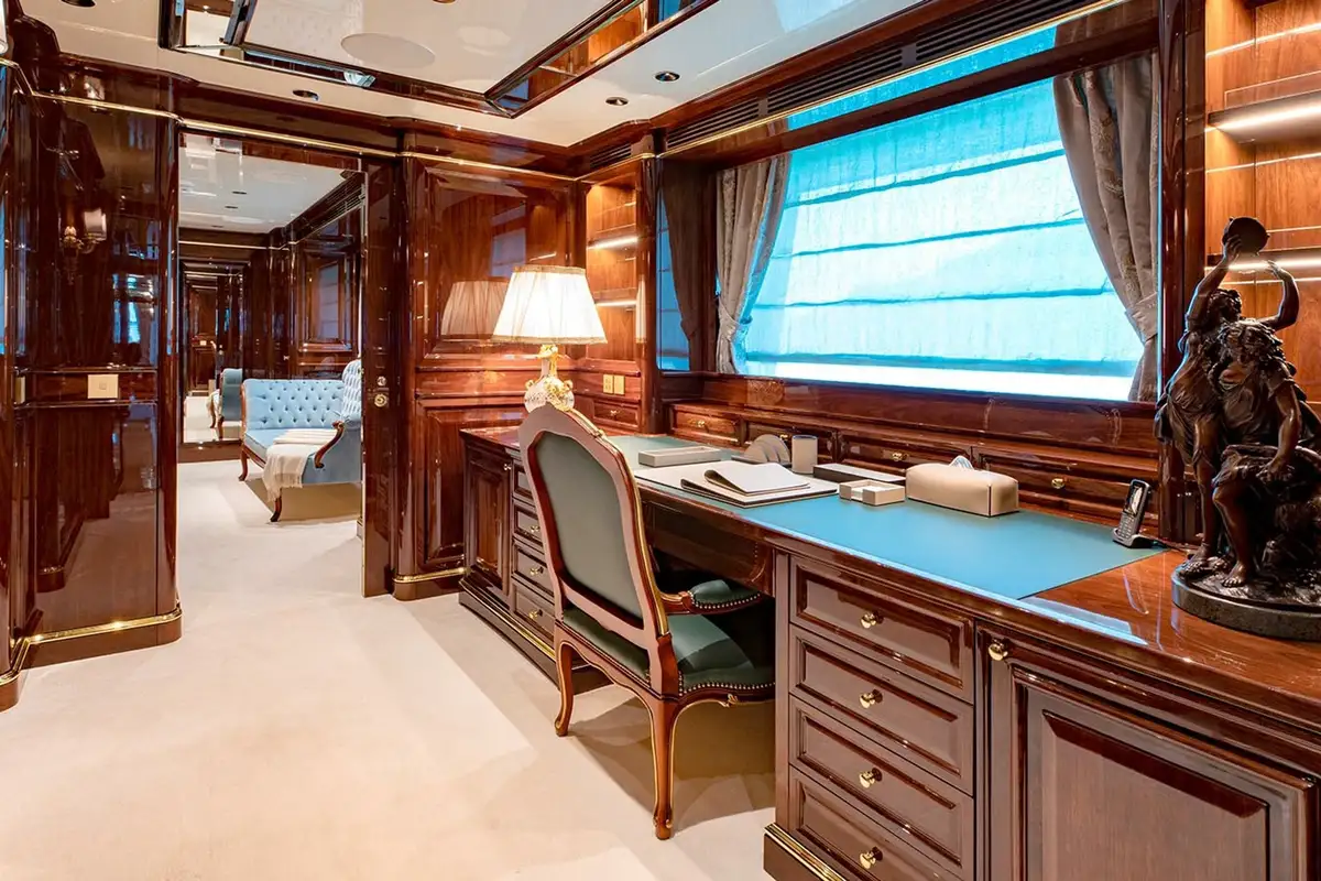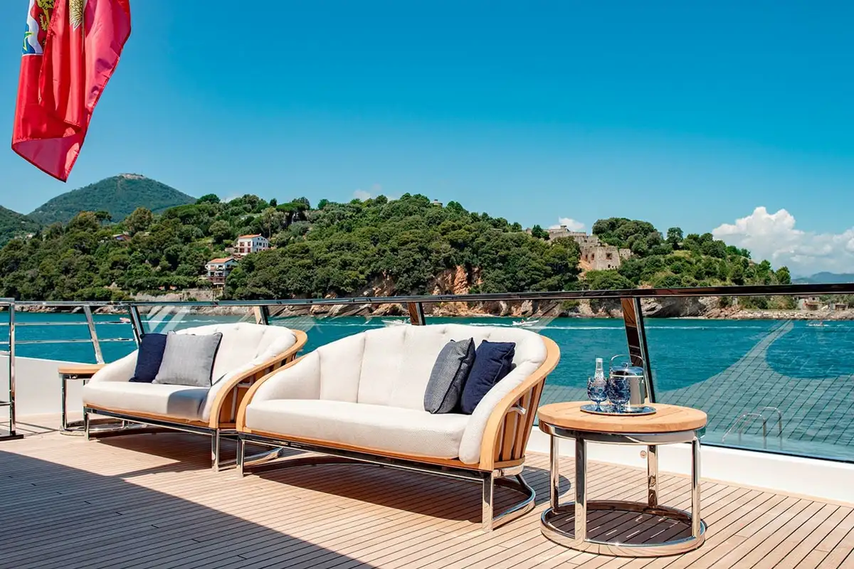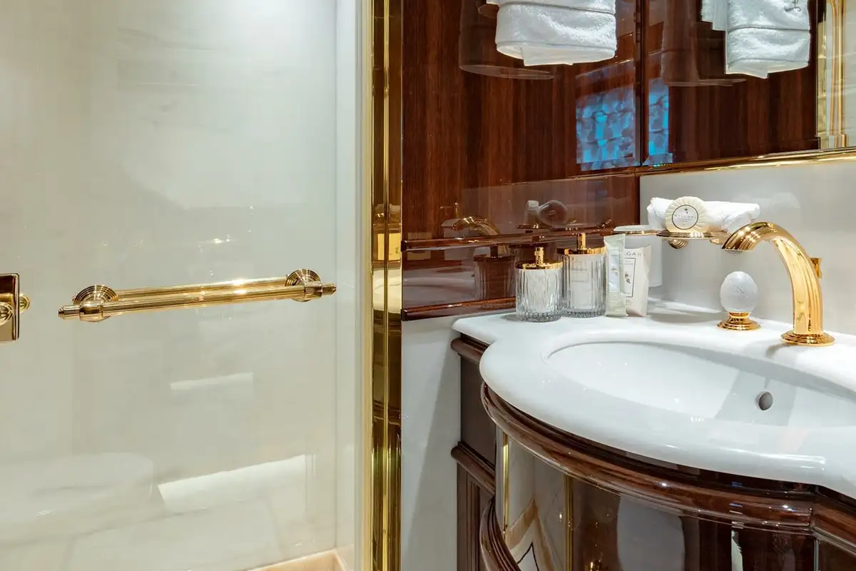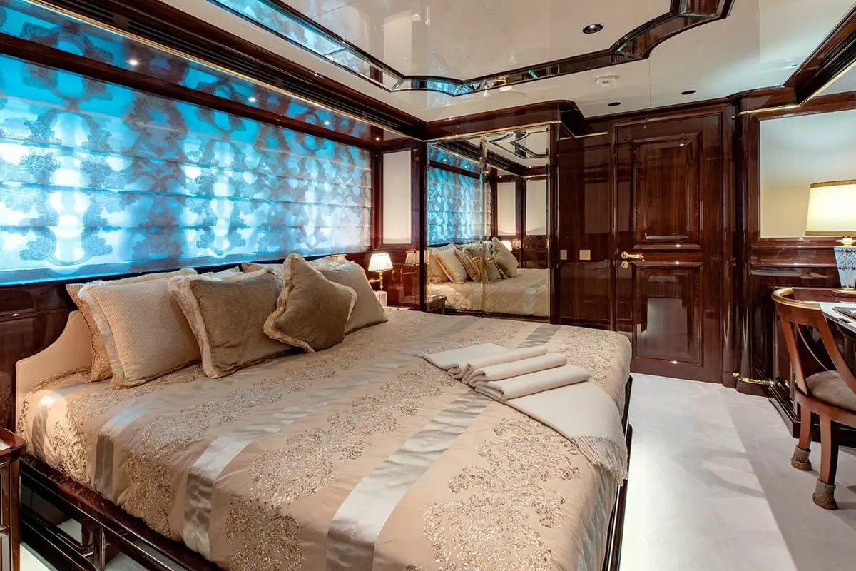 Offering versatile charter accommodation, Lady Lena can welcome up to 12 guests over six staterooms, comprising of the full beam Primary Stateroom, three VIP and two multi-purpose doubles with sofa-beds and pullmans. All staterooms are exquisitely finished, with the primary stateroom being a particular haven of luxury, with a separate office and onyx-clad bathroom, complete with his and hers vanity, full bath and separate shower room. Excellent service is guaranteed, with nine crew members on board to look after guest’s every need, and on-board luxuries such as a Spa are guaranteed to leave everyone relaxed and refreshed at the end of their stay.