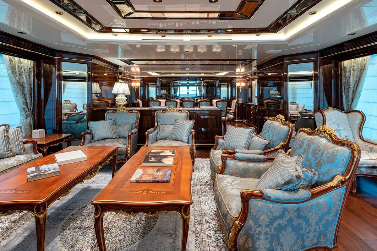 For the ultimate charter appeal, the four guest staterooms could be easily converted into: 2 big VIP suites each with a living room and two bathrooms; 2 big VIP two-bedroom suites with main double VIP room and Guest double room; 2 big VIP two-bedroom suites with main double VIP room and Guest twin room; 2 big VIP two-bedroom suites with main double VIP room and Guest single room with Sofa. So whether you're chartering with business partners or friends or there’re families with young child or teenagers on board, this multifunctional cabins layout makes everyone feel comfortable and safe.