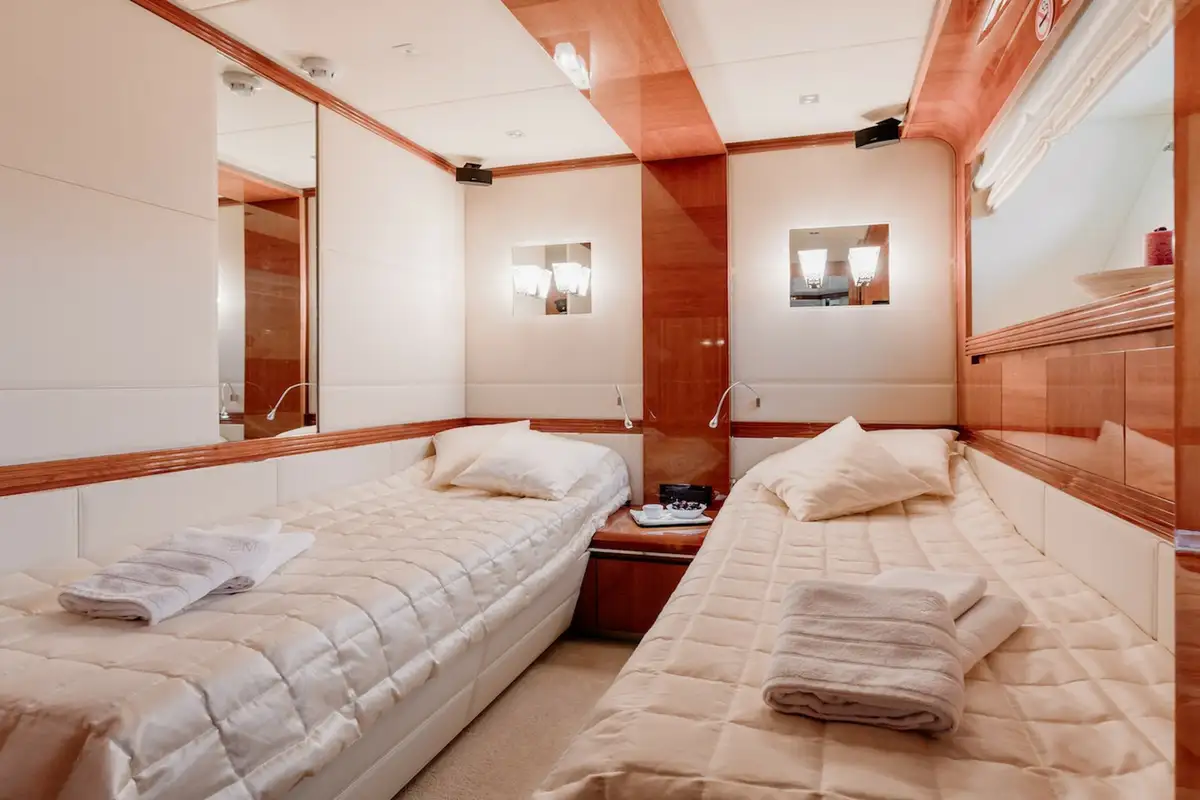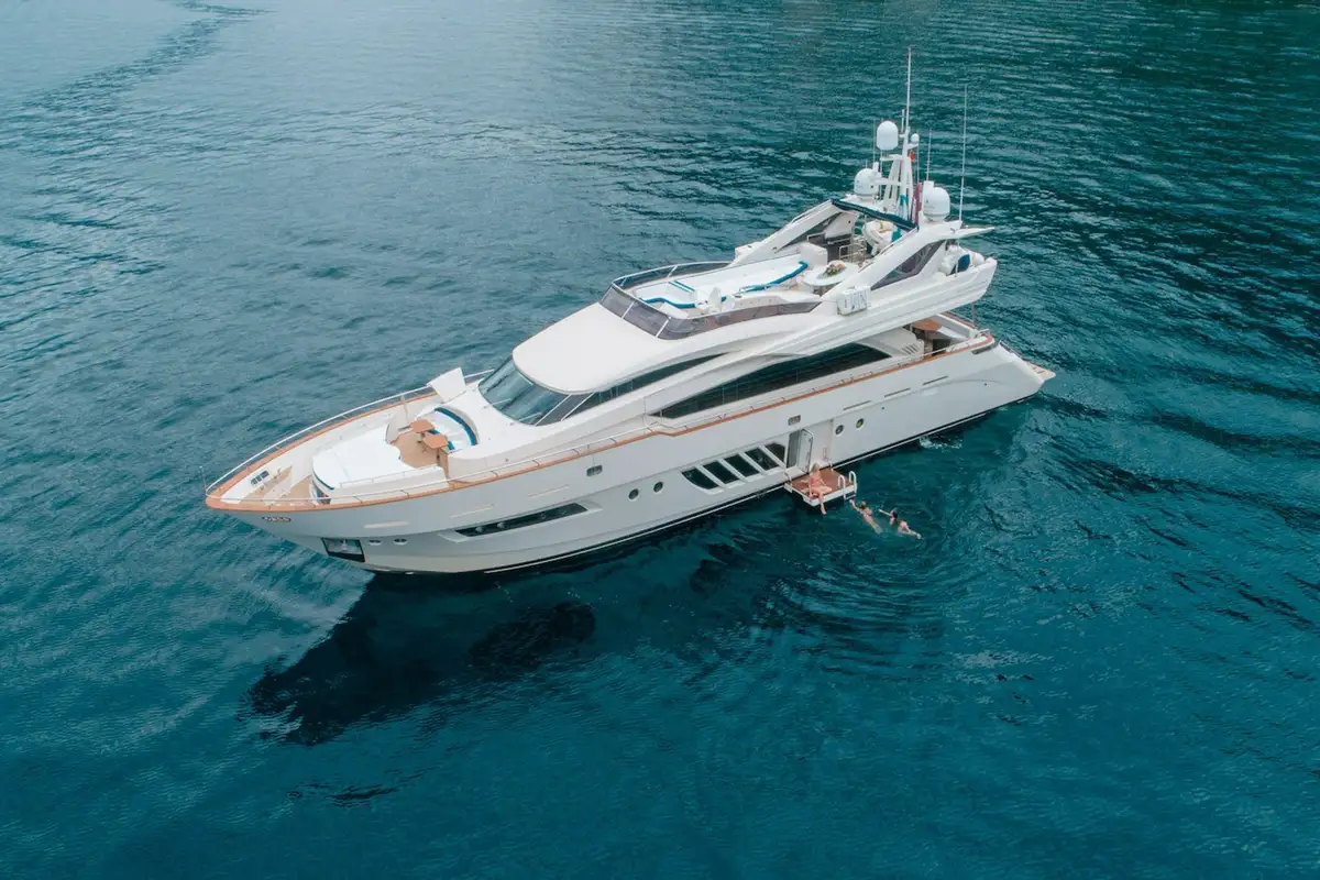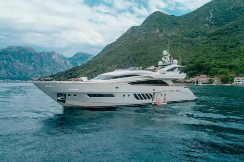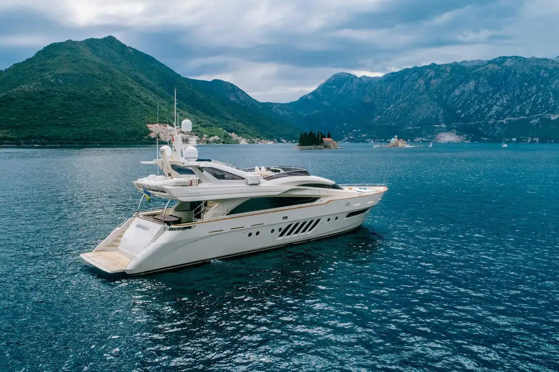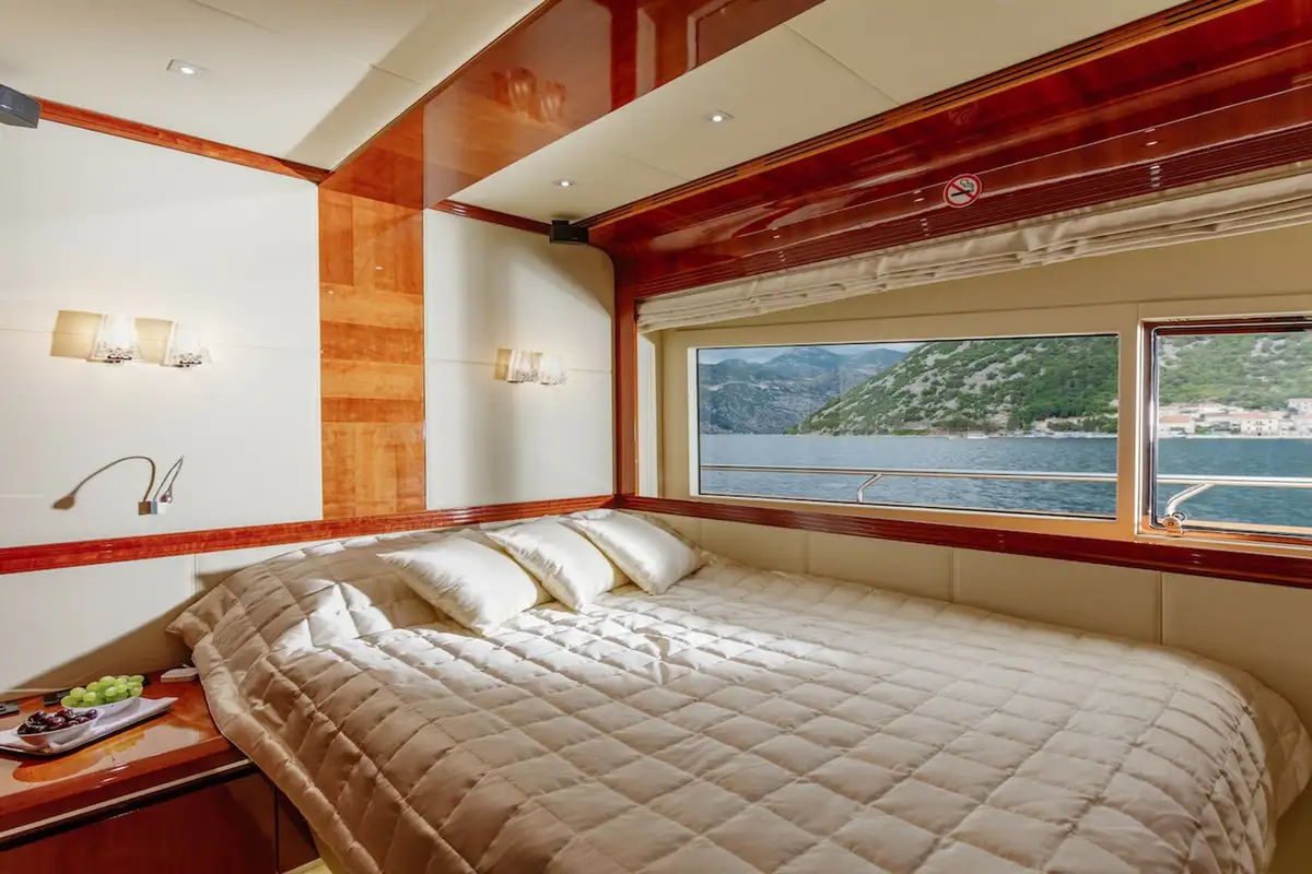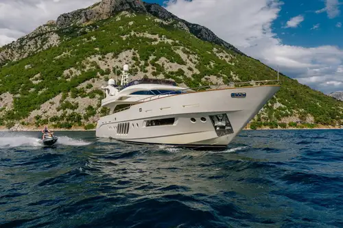 Lady Mura is a 29m Dominator built in 2010. This modern and sleek yacht accommodates up to ten guests in five cabins, along with a warm and welcoming crew of six that will ensure an unforgettable stay while cruising in the Mediterranean. The yacht’s interior decor is contemporary and warm, creating a harmonious ambience. Her large salon features elongated side windows that provide ample natural light throughout. All five cabins have private en-suite facilities and are fully air conditioned.