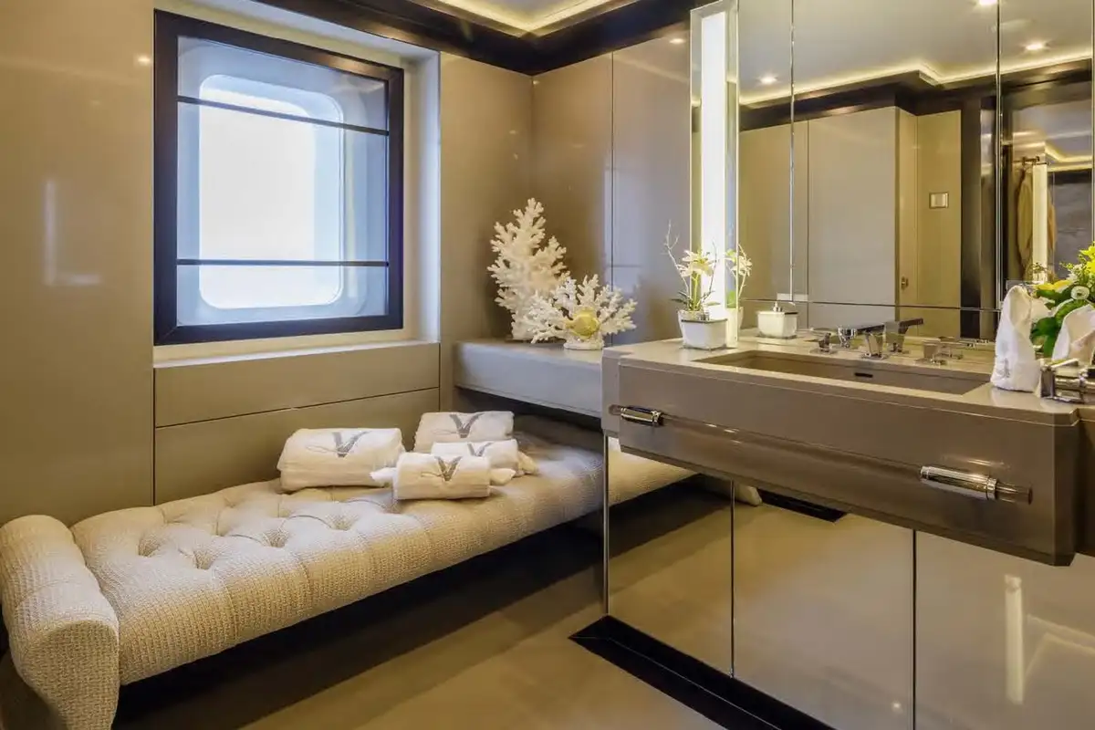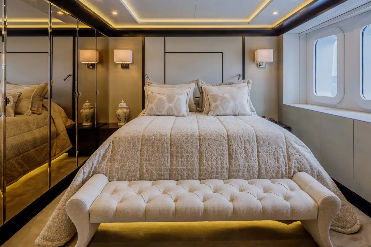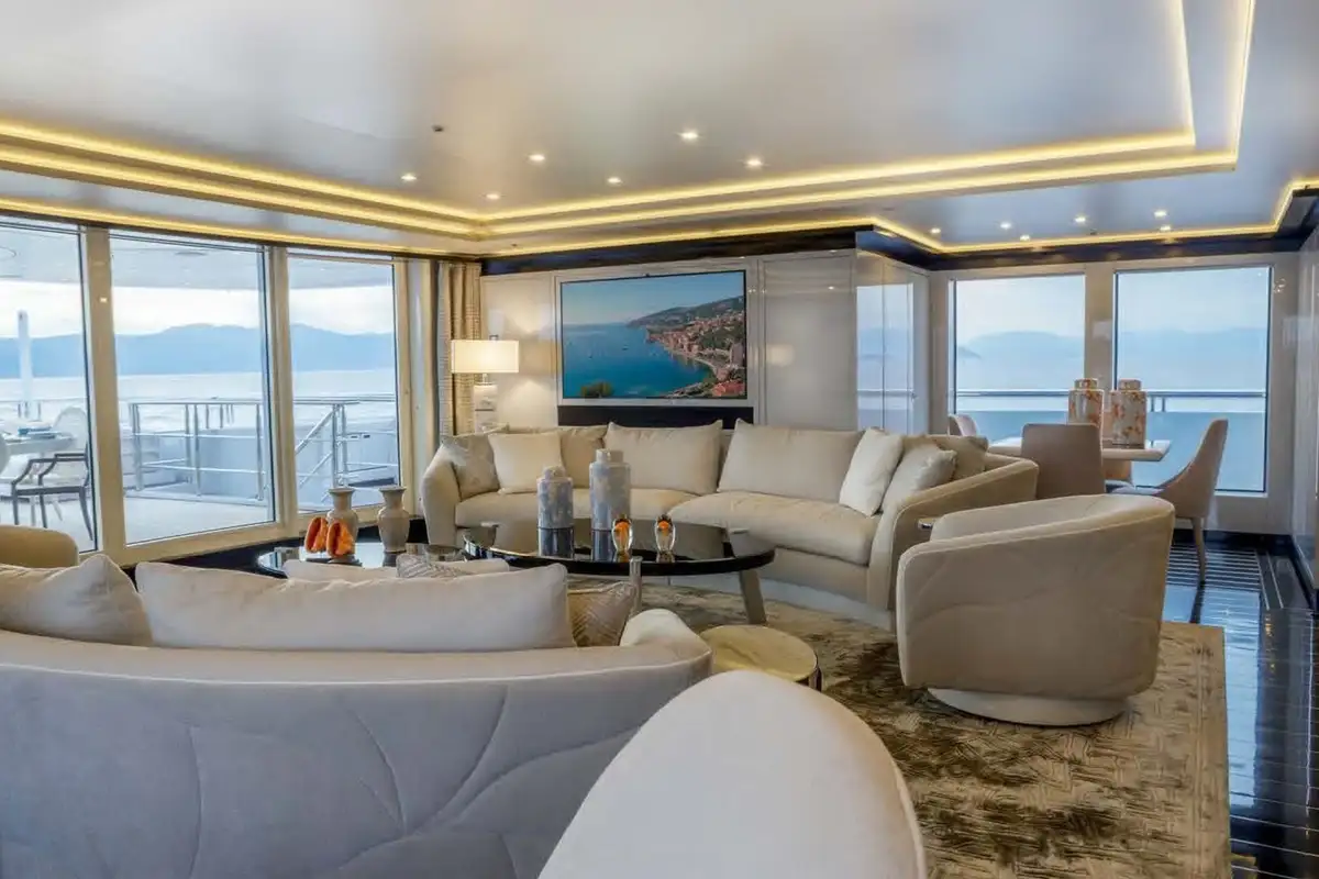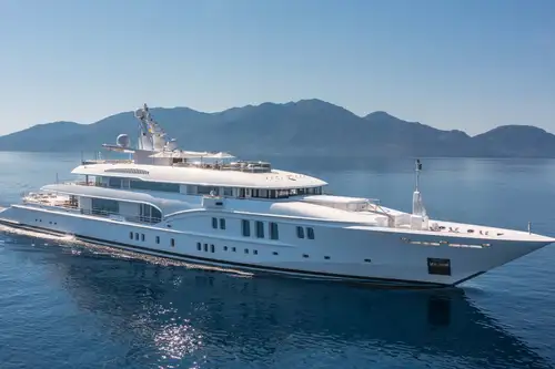 M/Y LADY VERA, the stunning Nobiskrug 73,52m, is a steel displacement vessel built by German Nobiskrug shipyard and designed by SDC in 2011 and refitted in 2023. Boasting an impressive volume of 1585GT spread over four decks, she can provide everything one seeks on a super yacht of the highest standards. She can comfortably accommodate 12 guests in 6 modern and spacious double staterooms served by 16 crew. High ceilings and lofty windows flood the rooms with natural light and provide spectacular sea views throughout.
