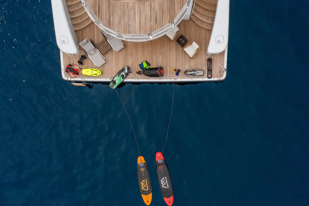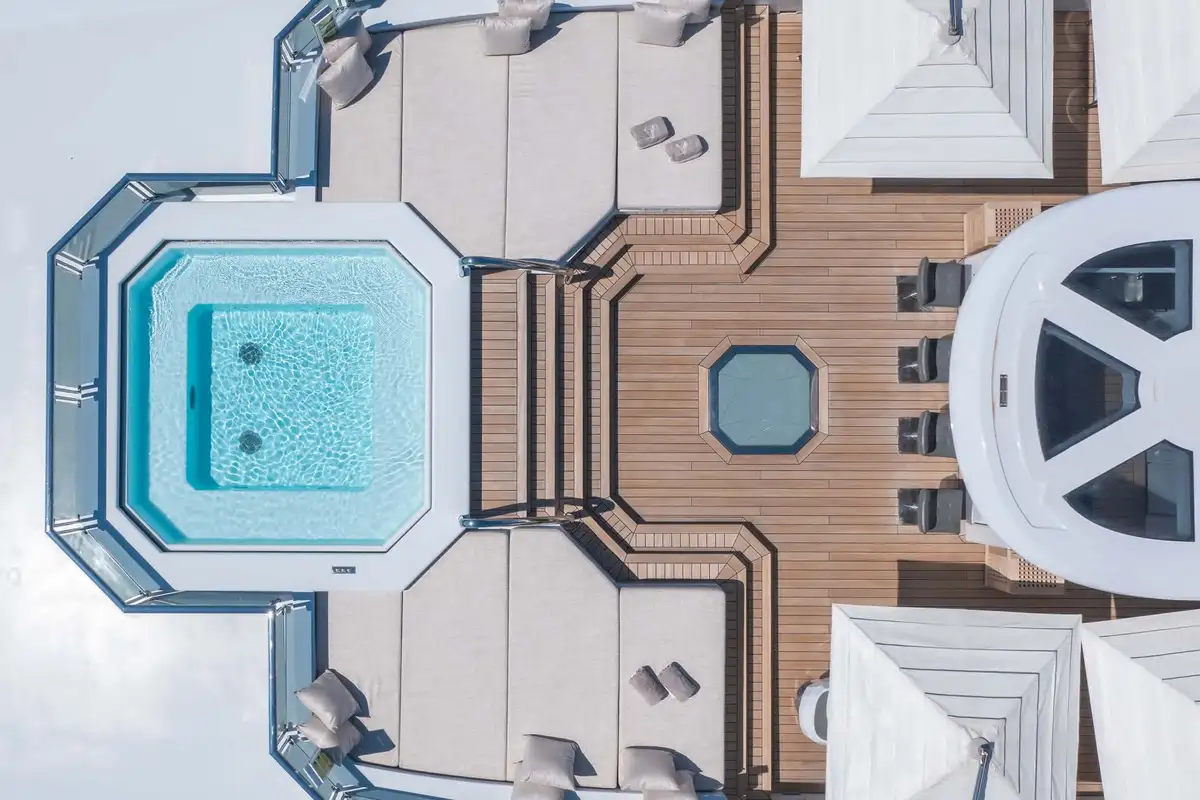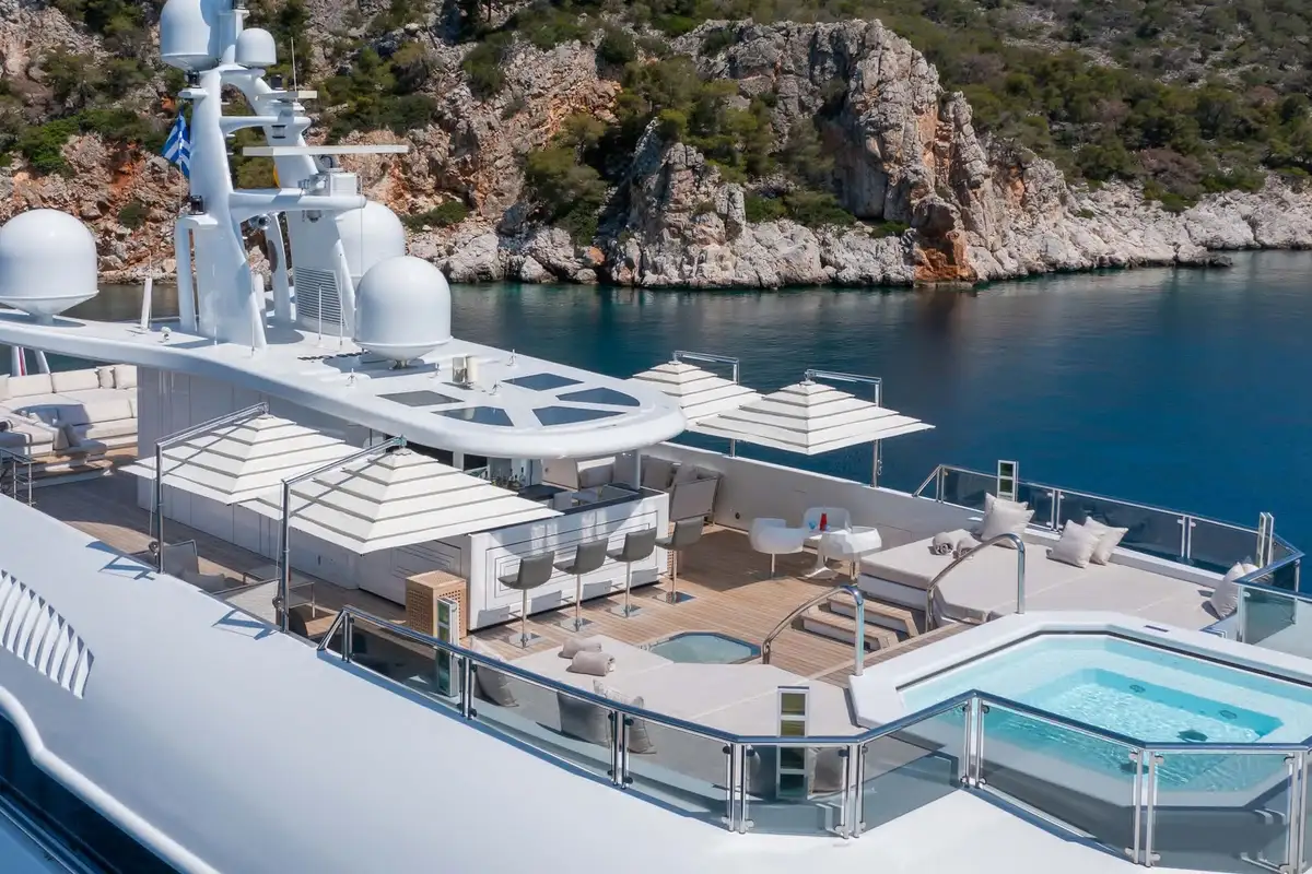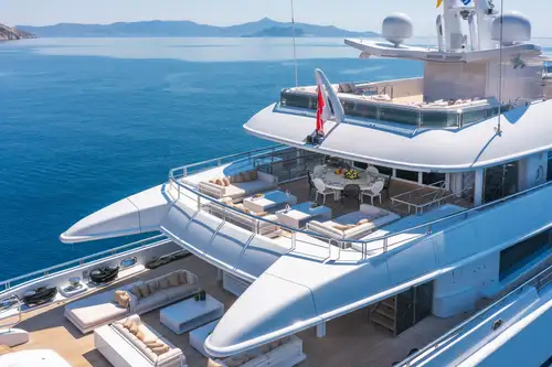 The expansive deck spaces give M/Y Lady Vera wide appeal for entertainment and lounging. Most notable of these is her sundeck featuring a large Spa Pool and bar forward, as well as a raised sunbathing aft area to enjoy amazing views. M/Y Lady Vera has a whole host of amenities on board ranging from the fully equipped Beach Club to the Touch and Go Helipad and the expansive top deck to the large aft swim platform.