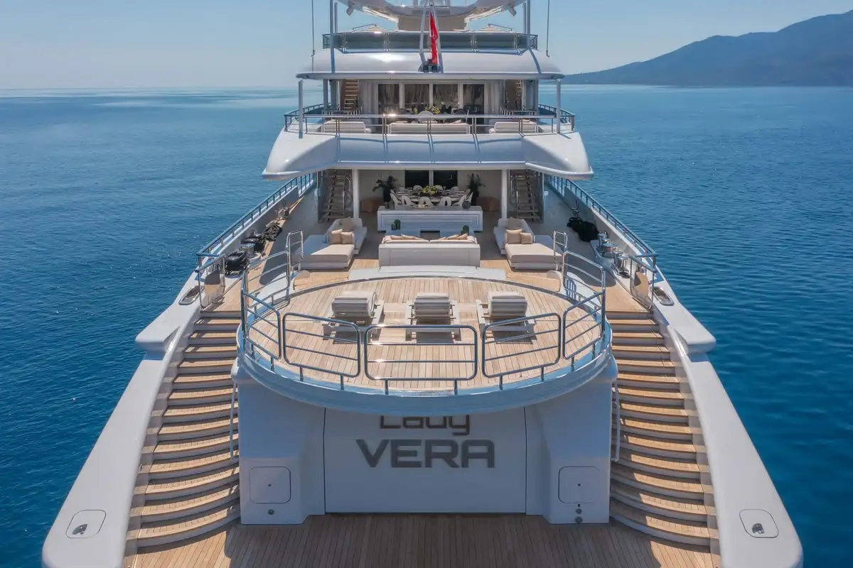 M/Y LADY VERA, the stunning Nobiskrug 73,52m, is a steel displacement vessel built by German Nobiskrug shipyard and designed by SDC in 2011 and refitted in 2023. Boasting an impressive volume of 1585GT spread over four decks, she can provide everything one seeks on a super yacht of the highest standards. She can comfortably accommodate 12 guests in 6 modern and spacious double staterooms served by 16 crew. High ceilings and lofty windows flood the rooms with natural light and provide spectacular sea views throughout. The expansive deck spaces give M/Y Lady Vera wide appeal for entertainment and lounging. Most notable of these is her sundeck featuring a large Spa Pool and bar forward, as well as a raised sunbathing aft area to enjoy amazing views. M/Y Lady Vera has a whole host of amenities on board ranging from the fully equipped Beach Club to the Touch and Go Helipad and the expansive top deck to the large aft swim platform.