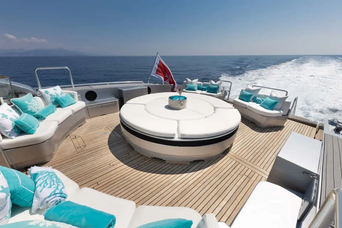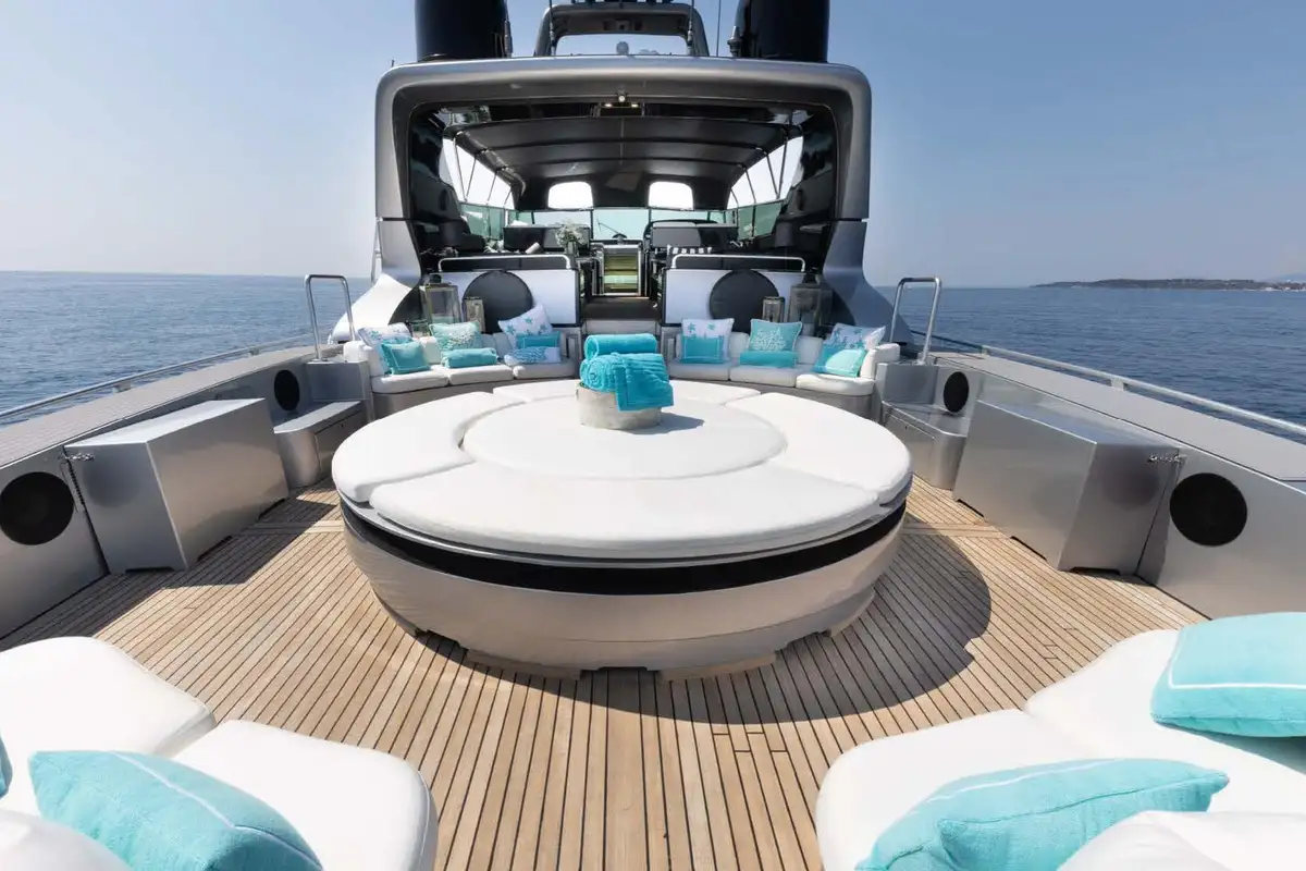 When the sun is out, there’s no better place to be than LAUREN V’s cockpit. Laid out around a central circular sunpad with more seating arranged around it, this sprawling deck space is where the action is. Whether you prefer a serene setting chilling with tunes or a private club dancing to floor fillers, it can be everything what you want. You can plunge from here into the waters surrounding LAUREN V or use it to sun dry after exhausting all the on-water activities this fabulous yacht has to offer. Those looking for a secluded retreat can head forward to the foredeck canopied sunpad.