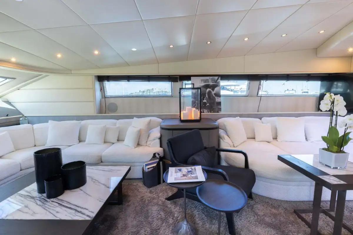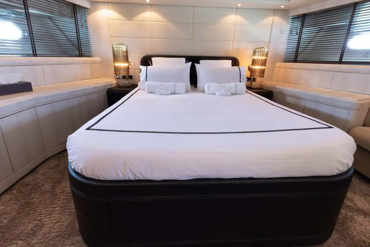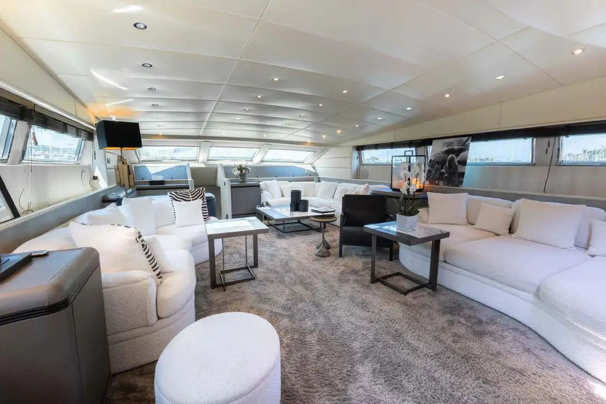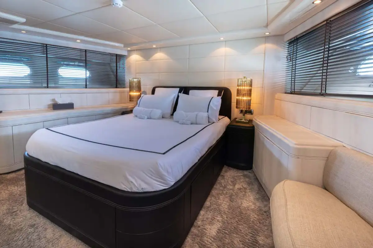 From the lounge, you can retire to the lower deck and the grand guest suites. Forward, there is a lavish double VIP suite. Aft of the guest suites is the full-beam master suite, featuring a queen-sized berth, an en-suite bathroom with his and hers vanity units, and a separate shower compartment. Perfect to refresh and revive. Between these two gorgeous double suites are two twin-berth suites (one with a pullman berth) that share the same fine styling features found throughout this immaculate yacht.