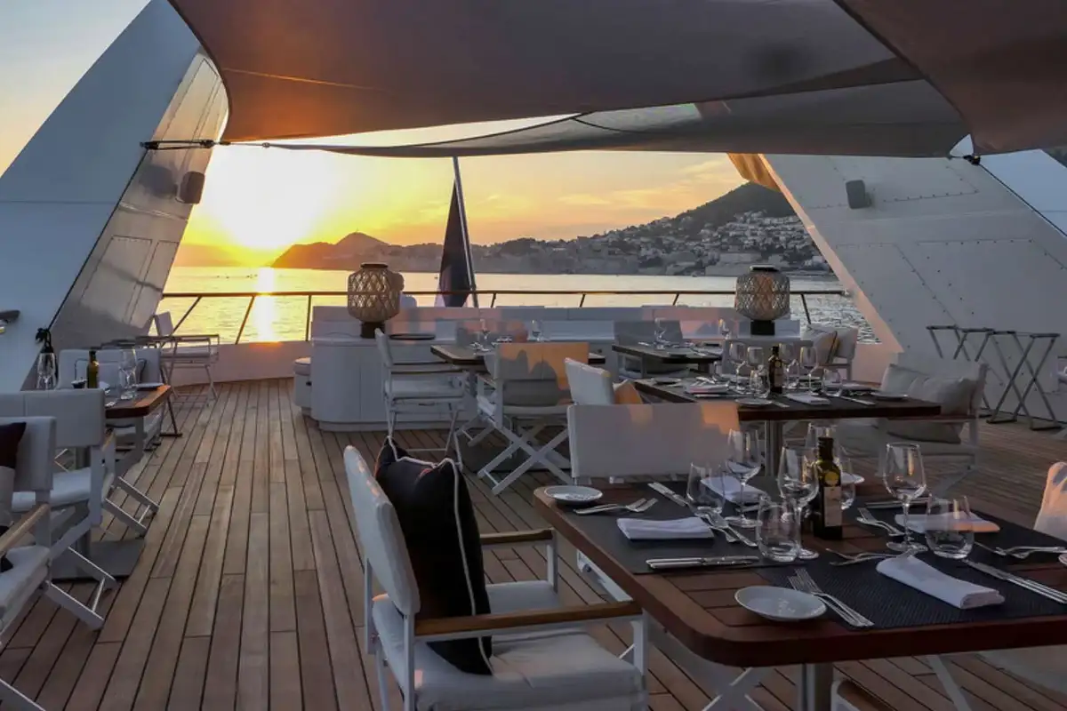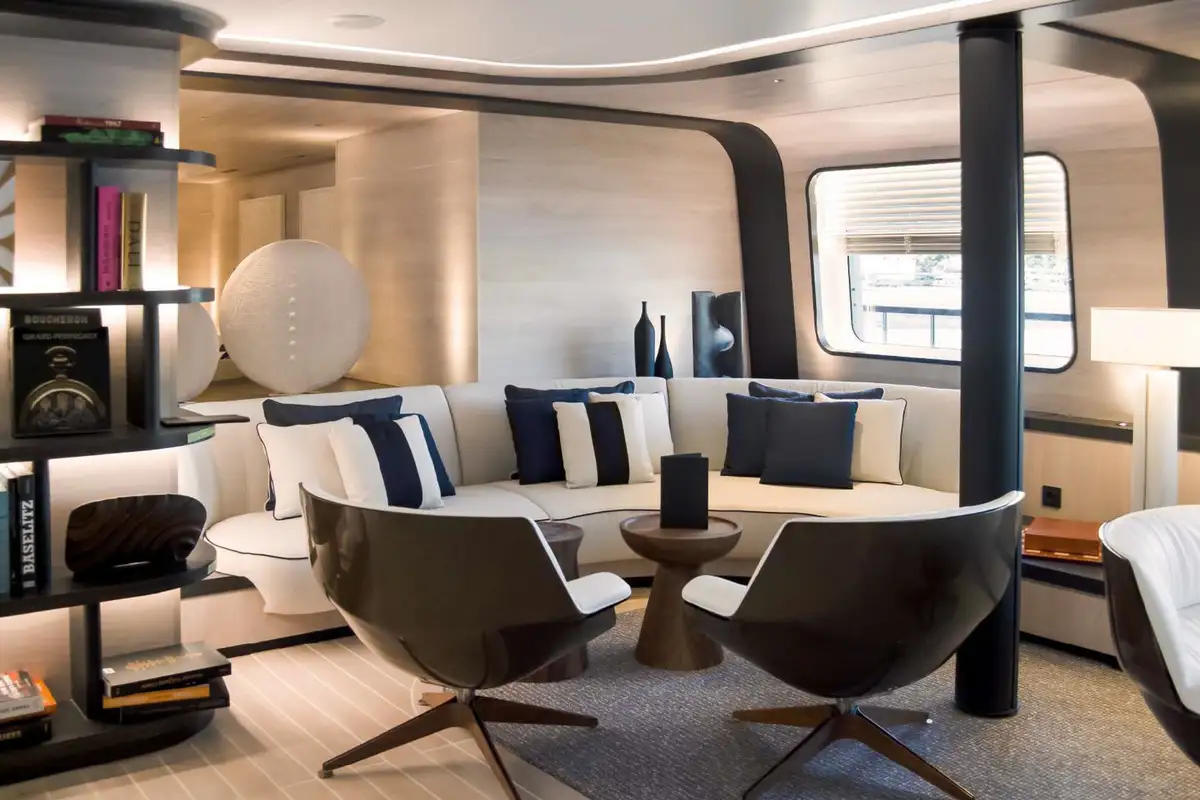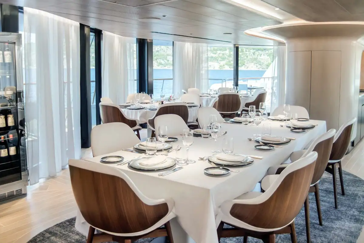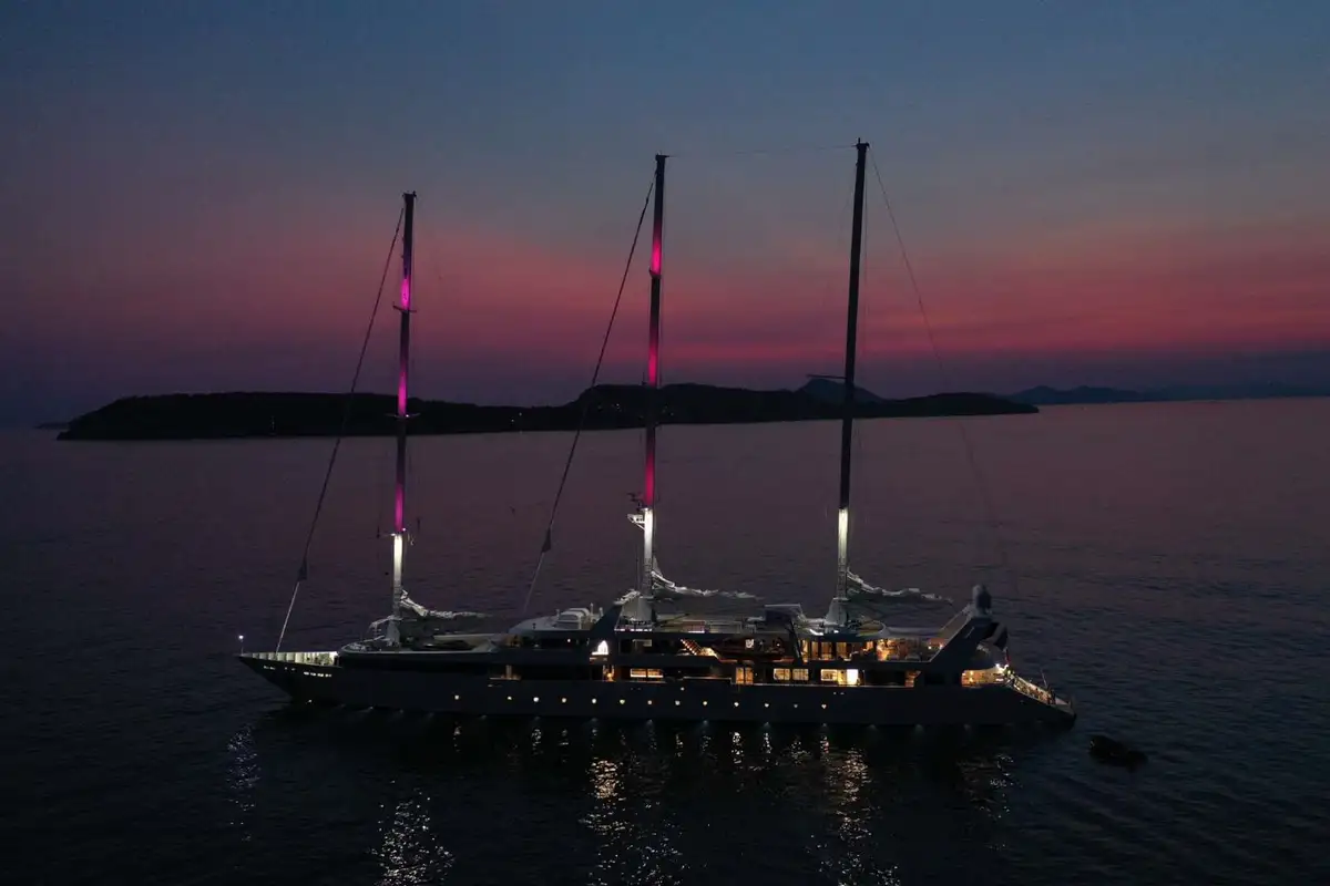 She also has a superyacht-style stern with an expansive bathing platform that’s ideal for boarding her four expedition-grade RIB tenders, launching her kayaks, paddleboards and windsurfers, or simply diving in for a swim. She carries a fleet of underwater sea scooters and scuba diving gear for underwater exploration, and a sea pool is deployed from her stern for safe, jellyfish-free bathing when the anchor goes down in a secluded, sheltered bay.