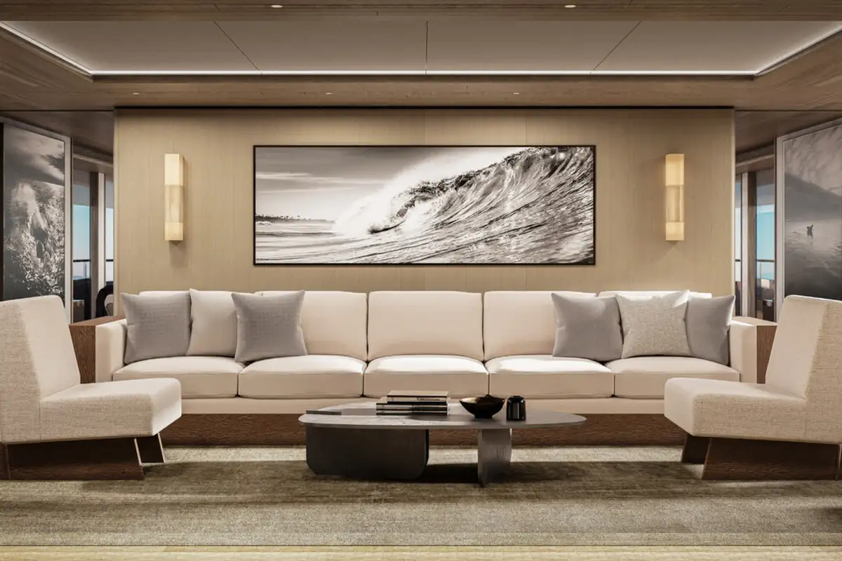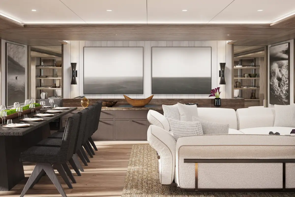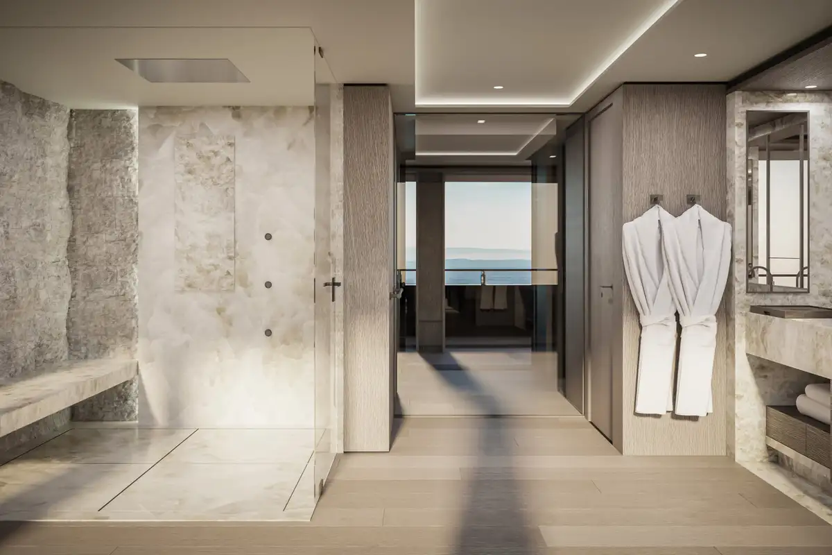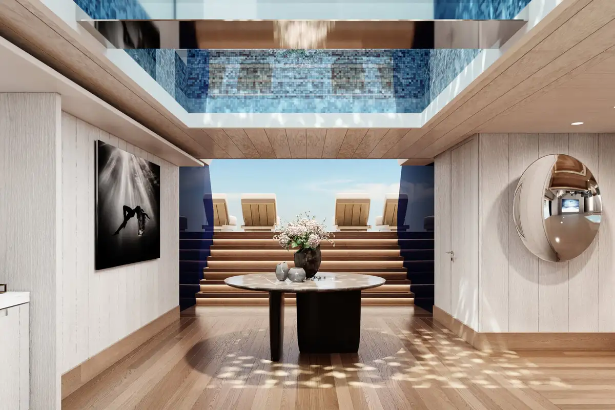 Delivered in 2025 by Feadship, LES CINQ is a yacht that truly ticks every box. From an exceptional waterline beach club and a striking glass-bottom pool to stunning interior design by renowned Parisian studio Gilles & Boissier, every detail has been crafted to impress. Masculine yet elegant, straight lines and bold forms meet nuanced surfaces that play with the light, commanding attention from every angle.