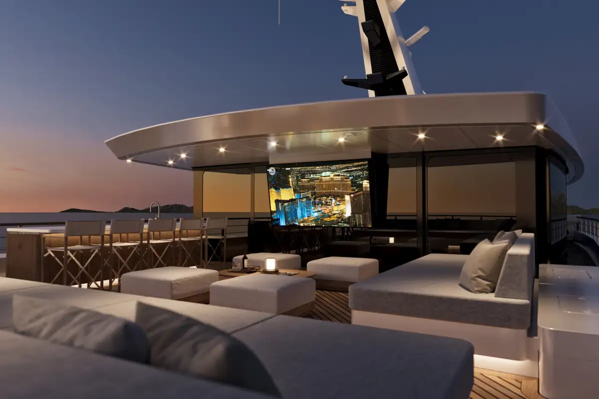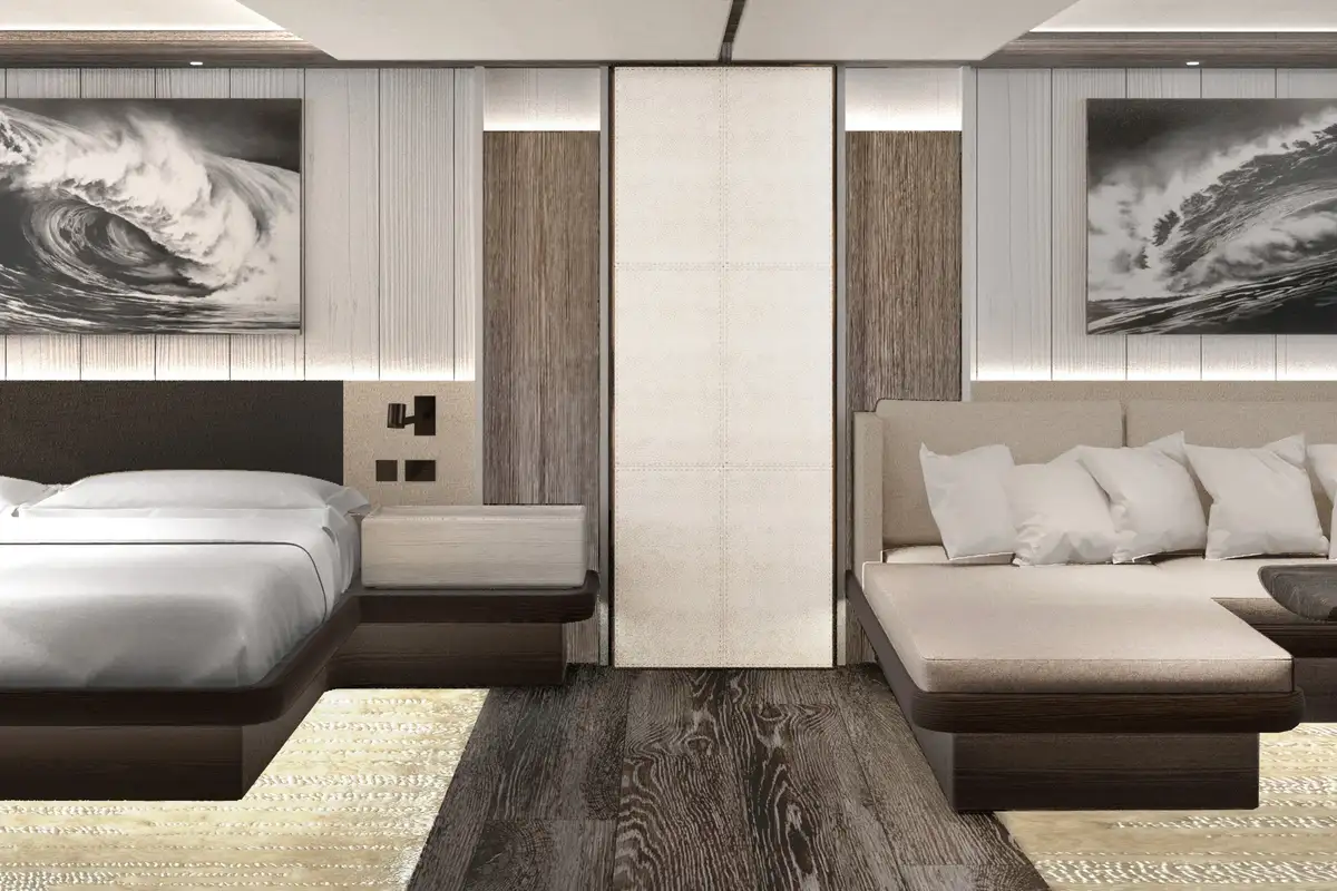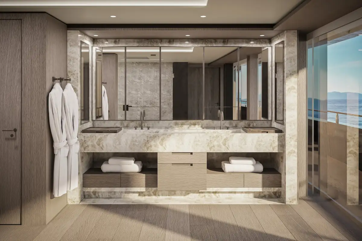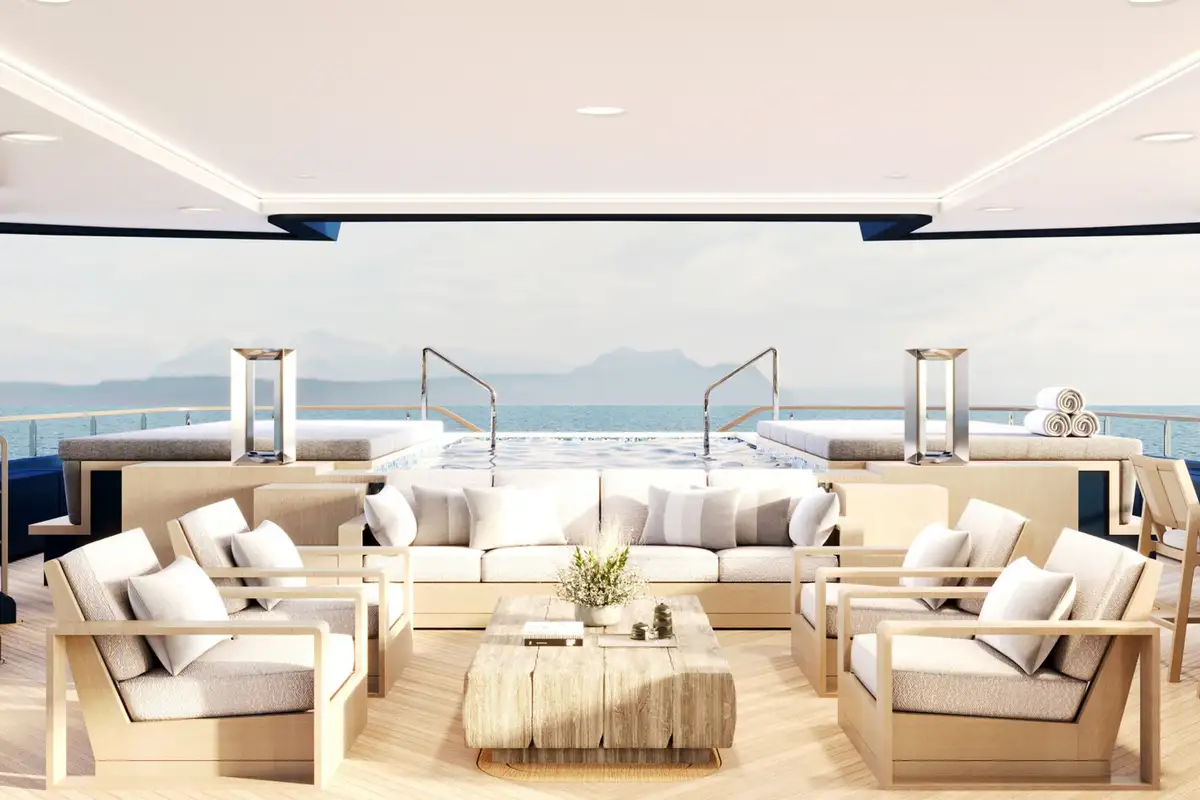 Delivered in 2025 by Feadship, LES CINQ is a yacht that truly ticks every box. From an exceptional waterline beach club and a striking glass-bottom pool to stunning interior design by renowned Parisian studio Gilles & Boissier, every detail has been crafted to impress. Masculine yet elegant, straight lines and bold forms meet nuanced surfaces that play with the light, commanding attention from every angle.