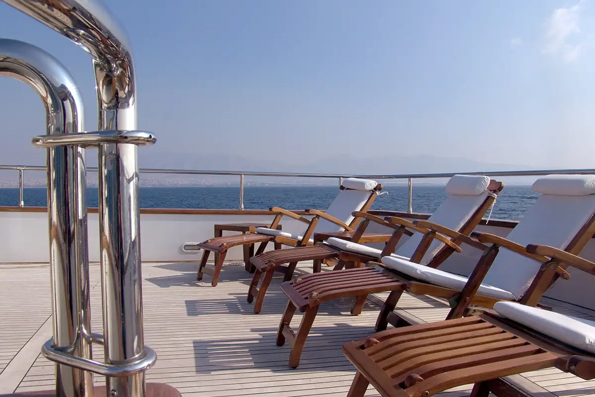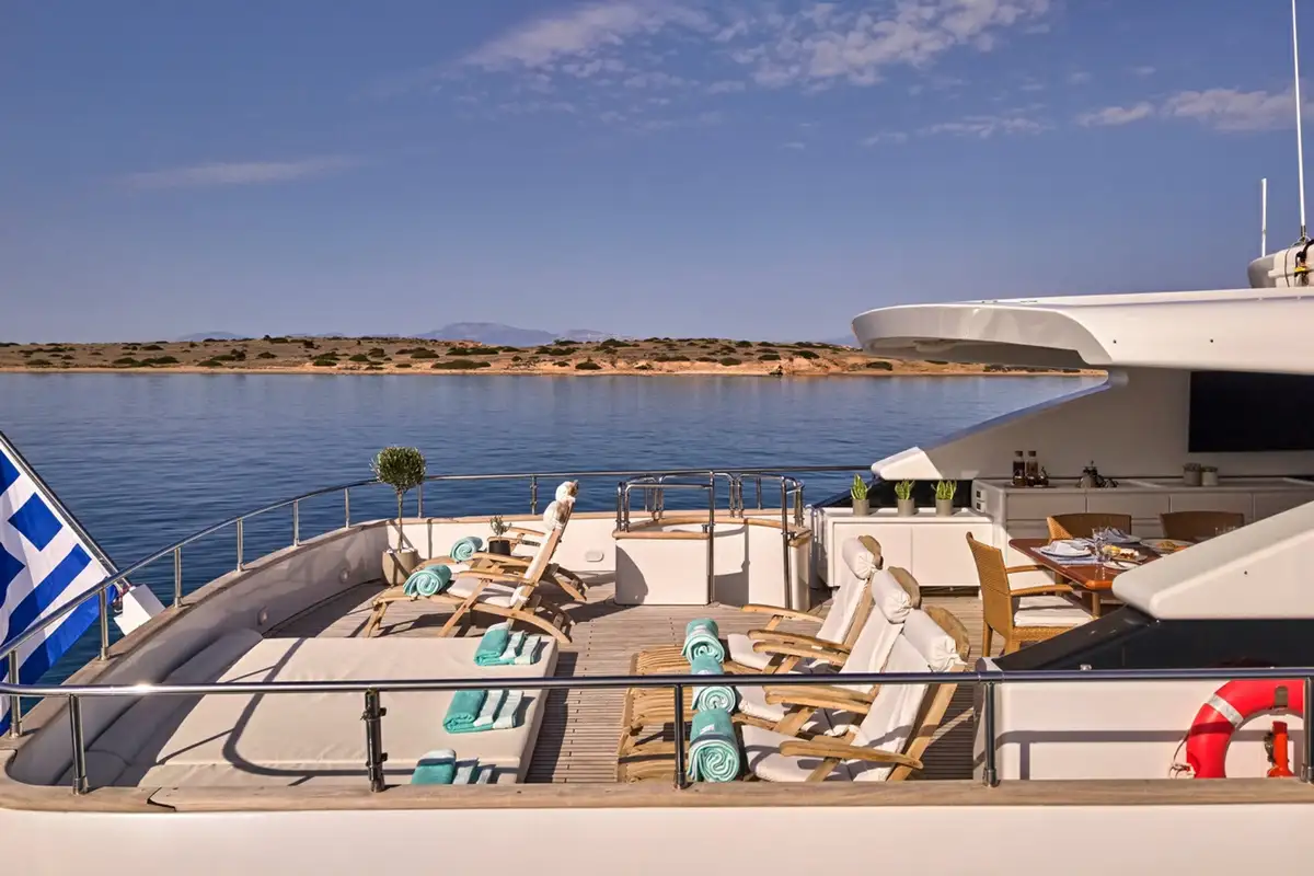 Outside aft decks on two levels provide ample space for relaxing, lounging and dining in the cool sea breeze. There’s also a secluded sunbathing area on the foredeck, with sunpad cushions set into the coachroof.