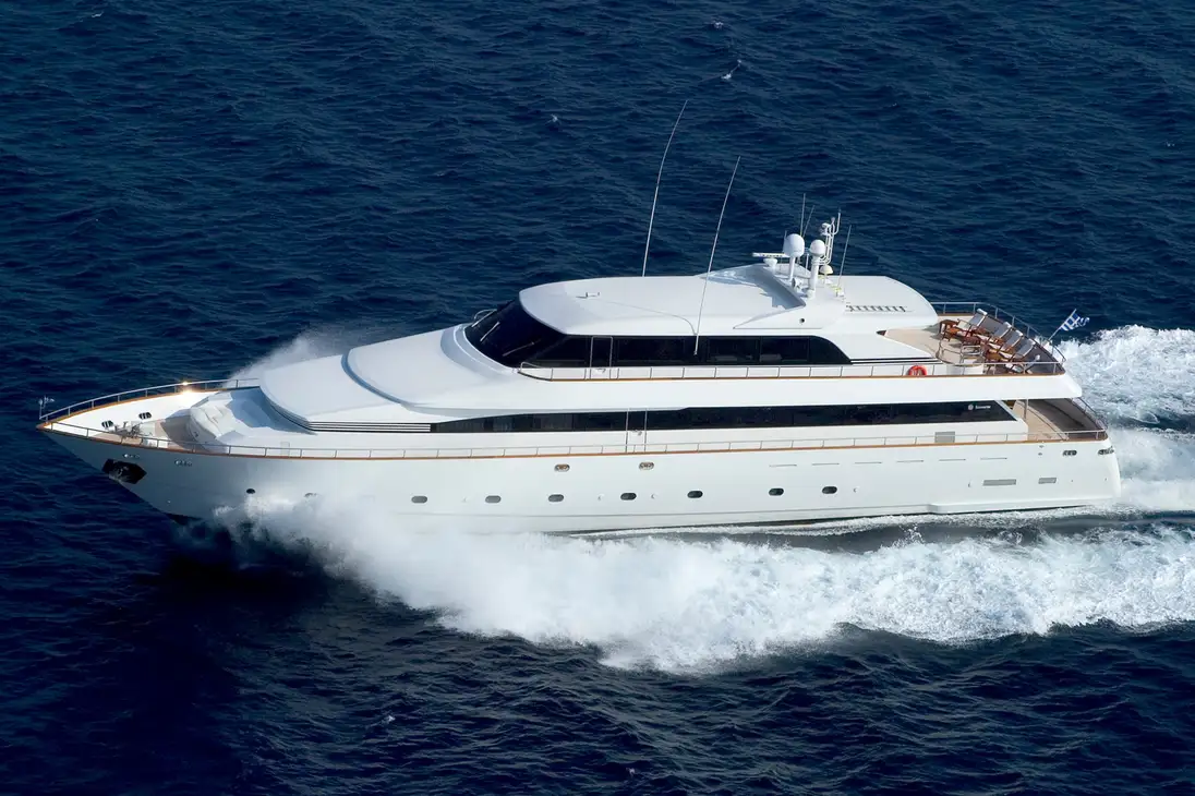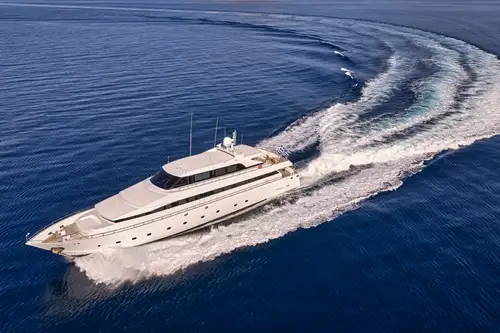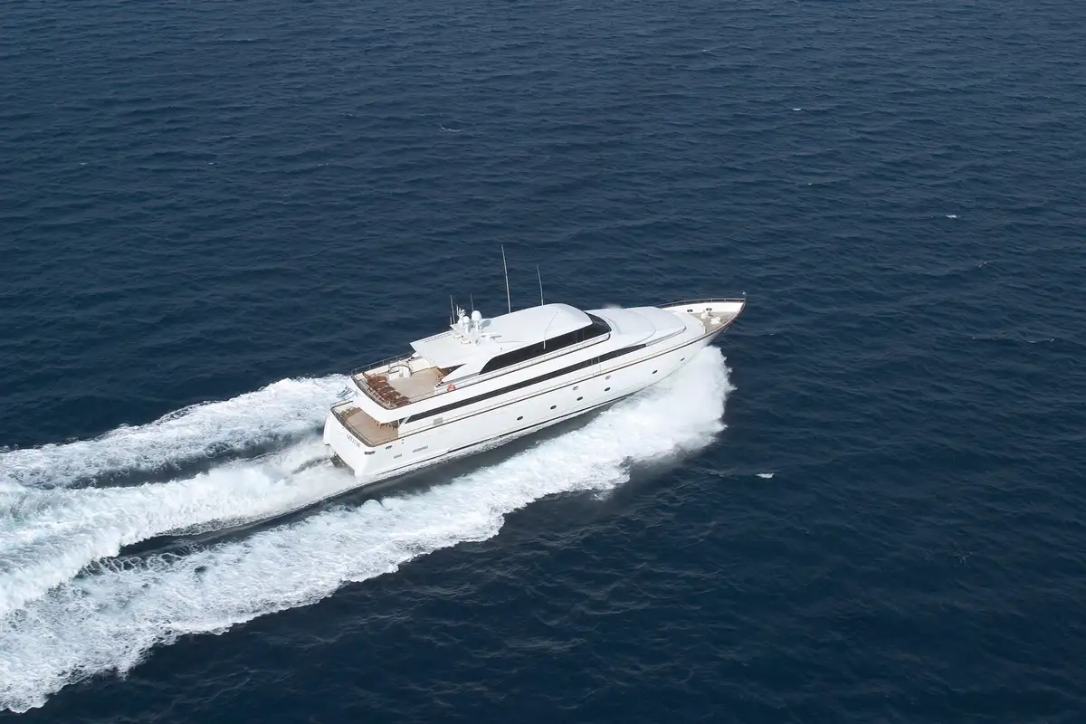 The Technomarine shipyard built some notably stylish motor yachts back in the ‘90s, with crisp, clean lines and excellent performance. The 36m (118ft) LET IT BE is a great example – she’s a tri-deck vessel offered for charter in sparkling fettle, fresh from a total interior refit in 2024.