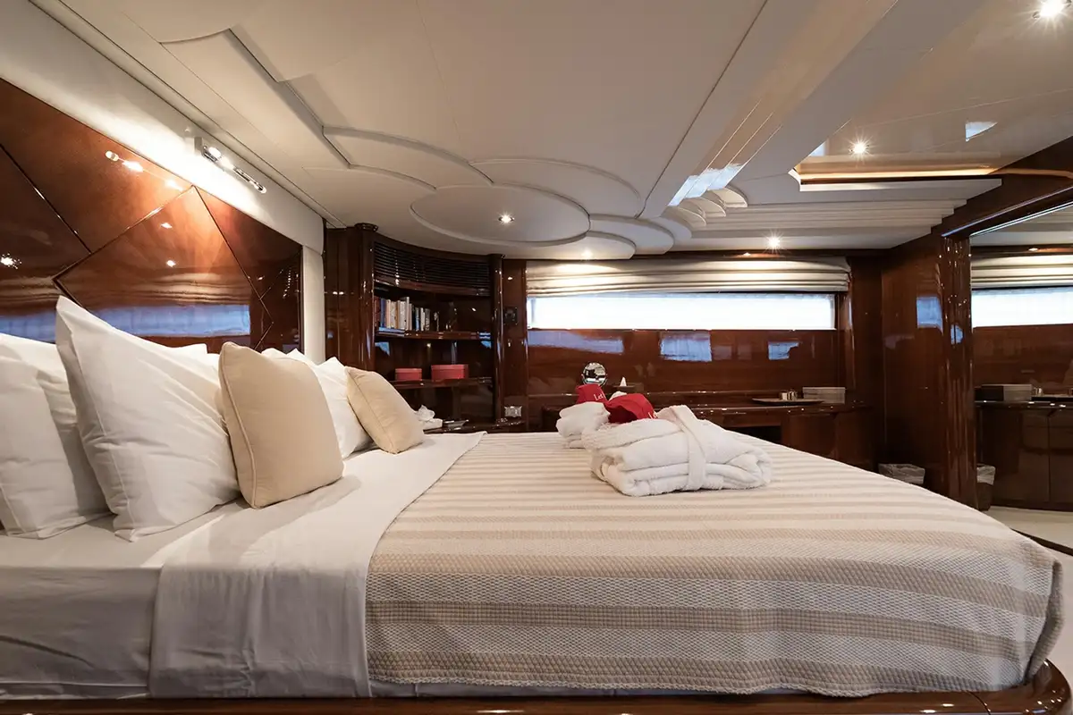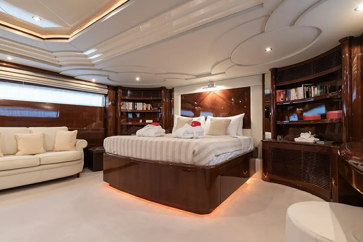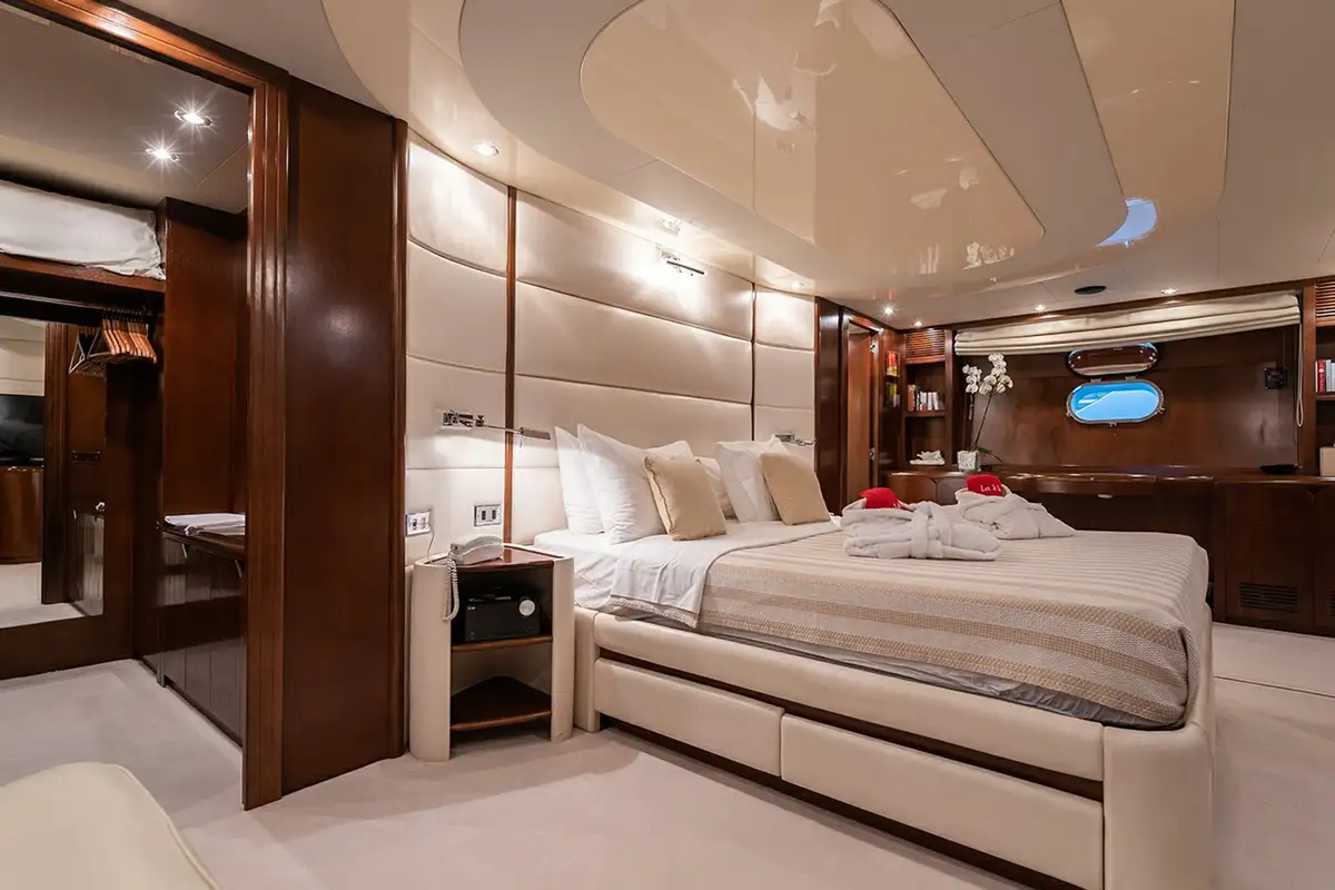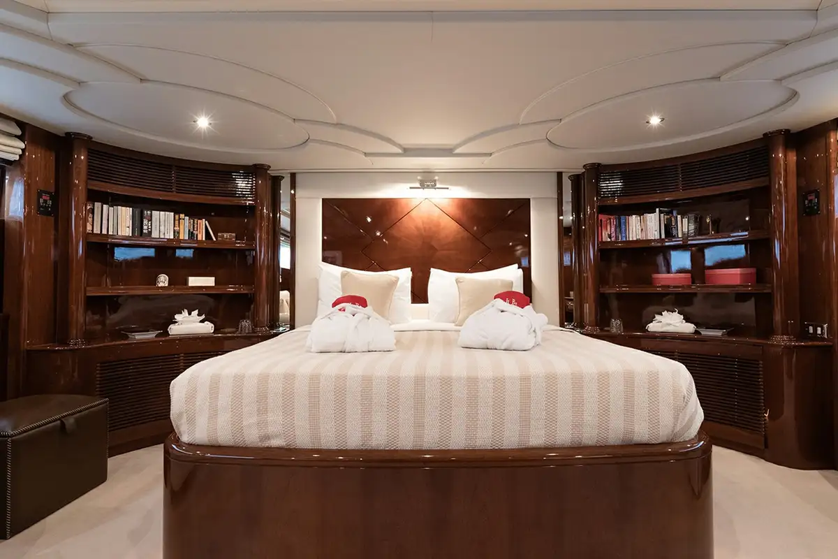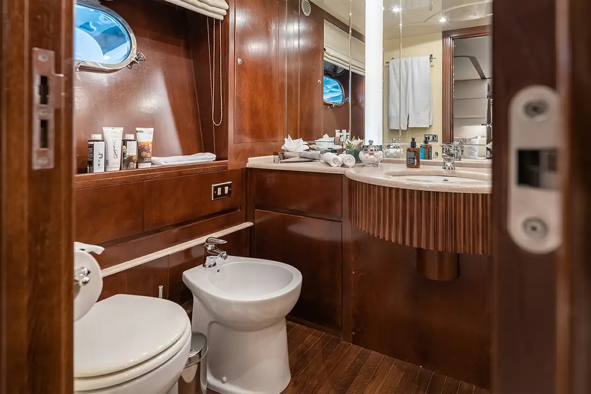 The other guest cabins include two VIP doubles on the lower deck with sofas, desks and walk-in closets, plus a pair of nicely furnished twins. It’s a versatile configuration, ideal for a wide range of charter groups.