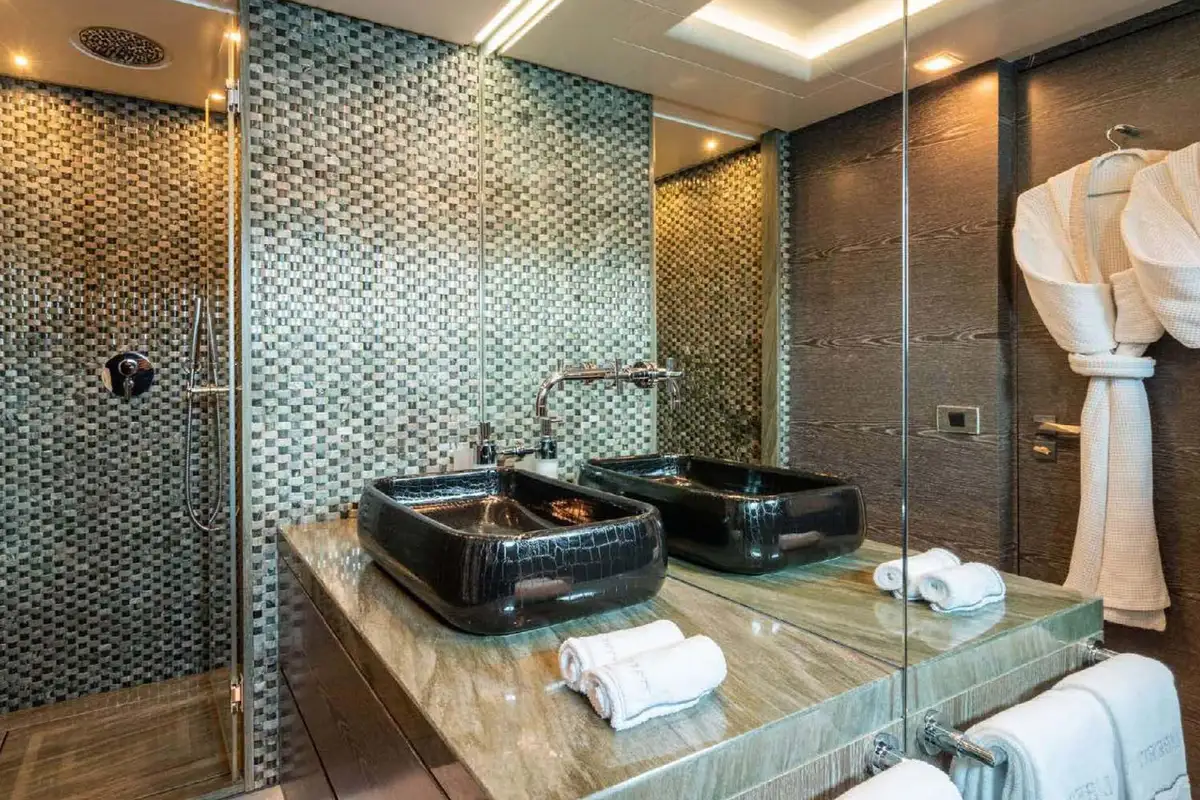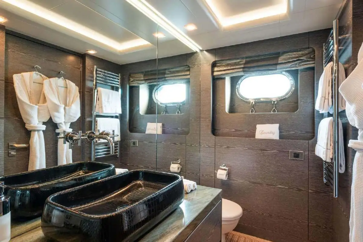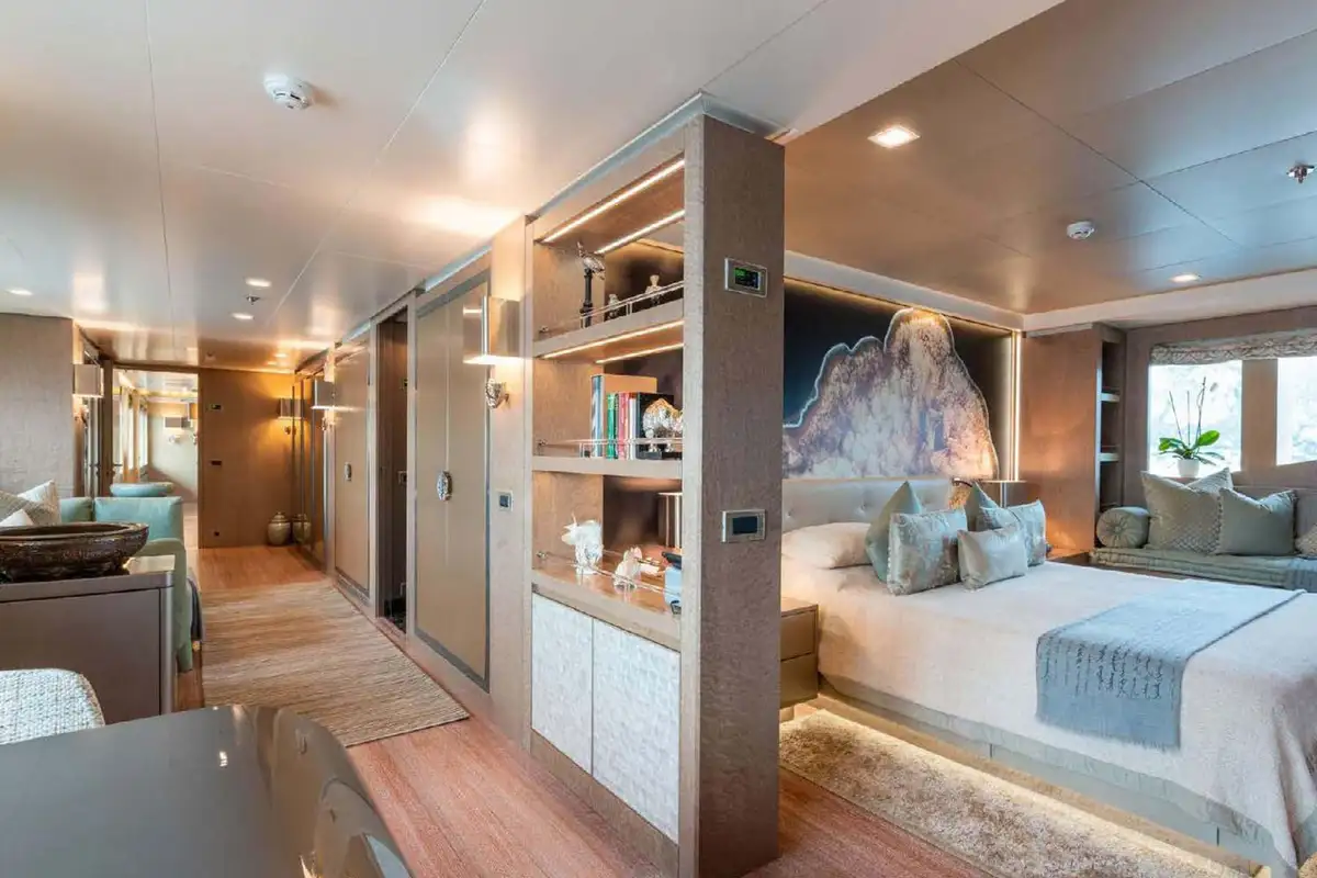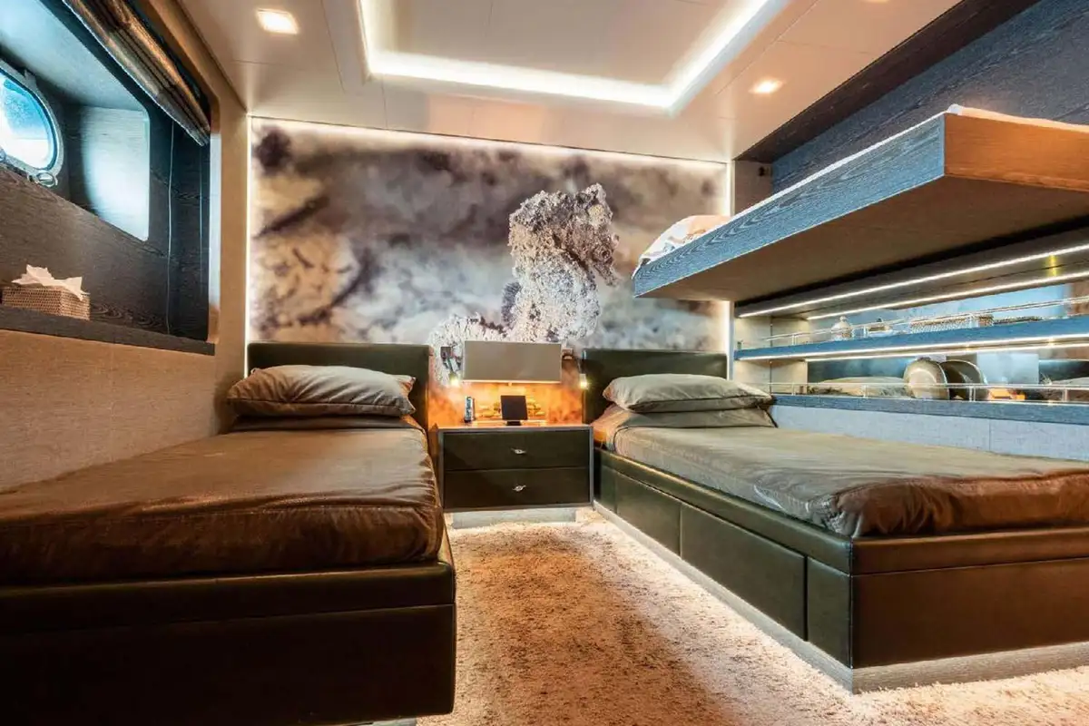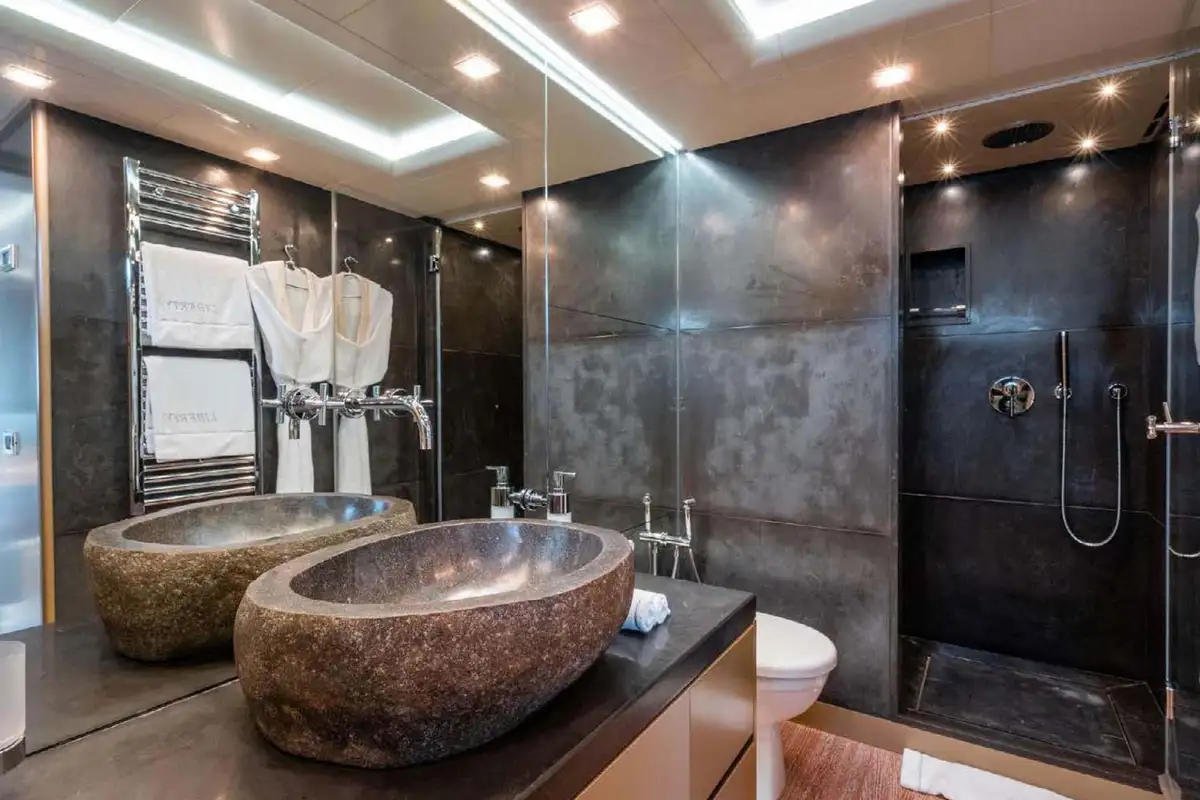 When the evening comes to an end LIBERTY’s guest accommodation will also not disappoint. Her six luxurious cabins, each with a different ocean theme, welcome 12 guests, including a full beam master suite on the main deck. There is also a VIP on the bridge deck and four further guest cabins on the lower deck, comprising two doubles and two twins, providing the perfect retreat after a full day of activities and fun.