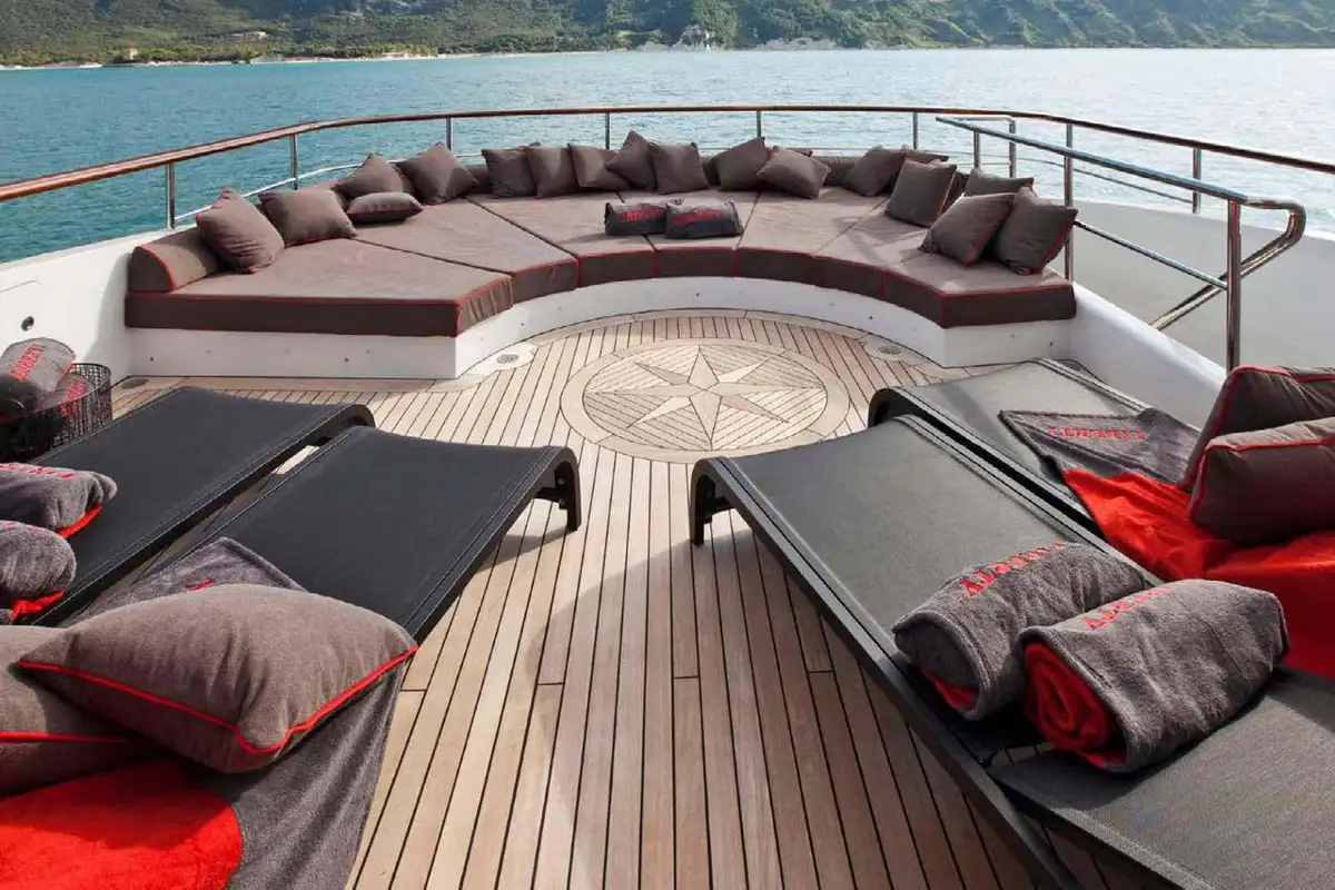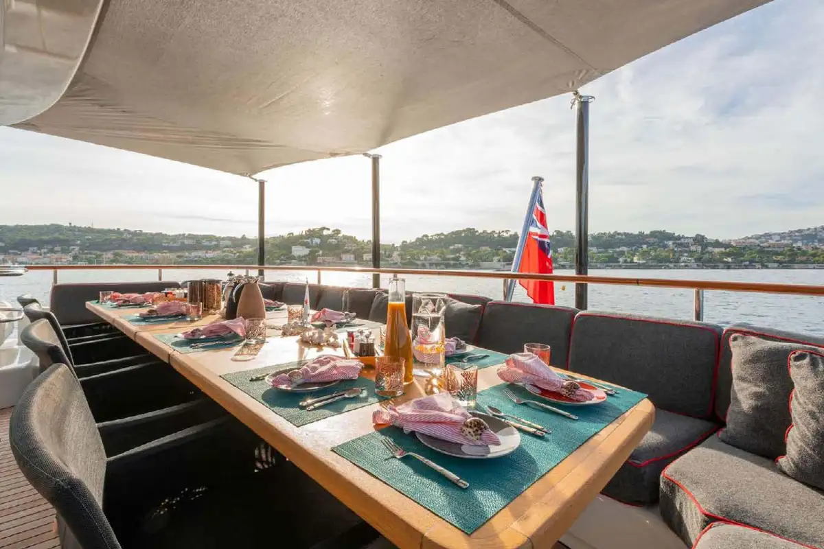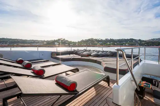 When the sun gets too hot, take refuge beneath the shade of the satcom arch on the sun deck. Set up to provide an al fresco dining experience with a view, enjoy a leisurely lunch followed by more relaxation and a chance to digest before jumping into the water for a refreshing dip.