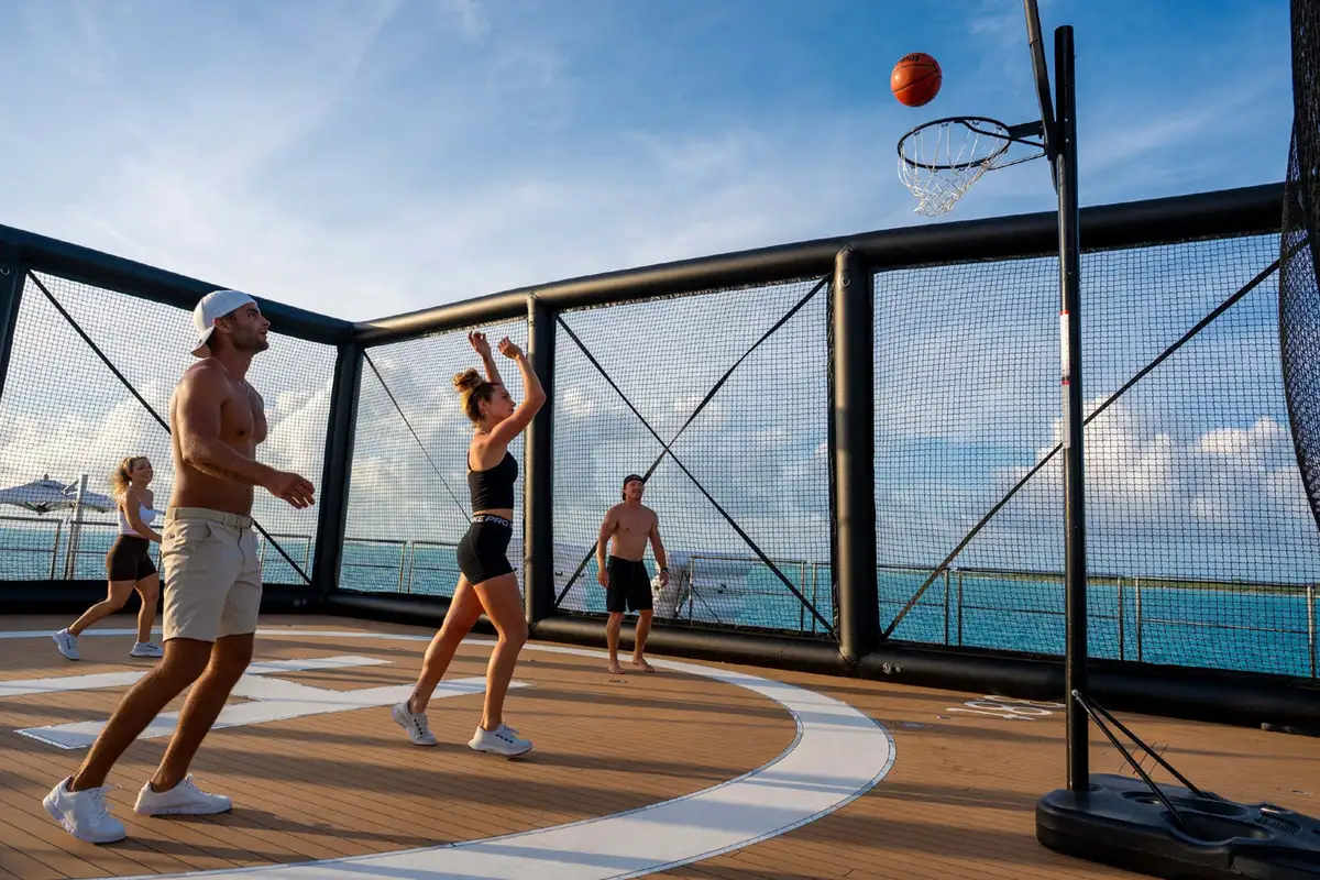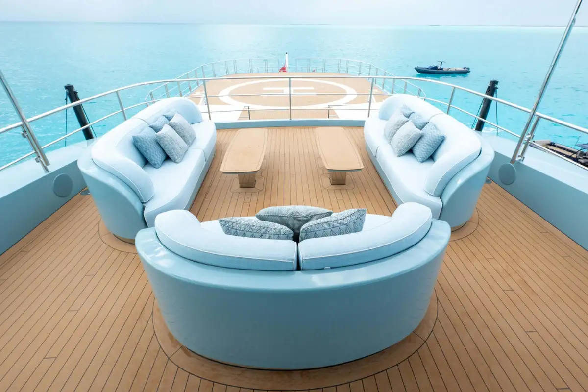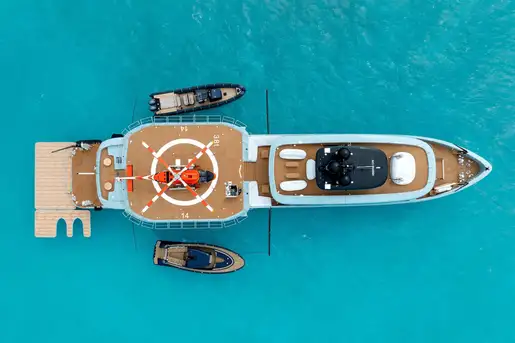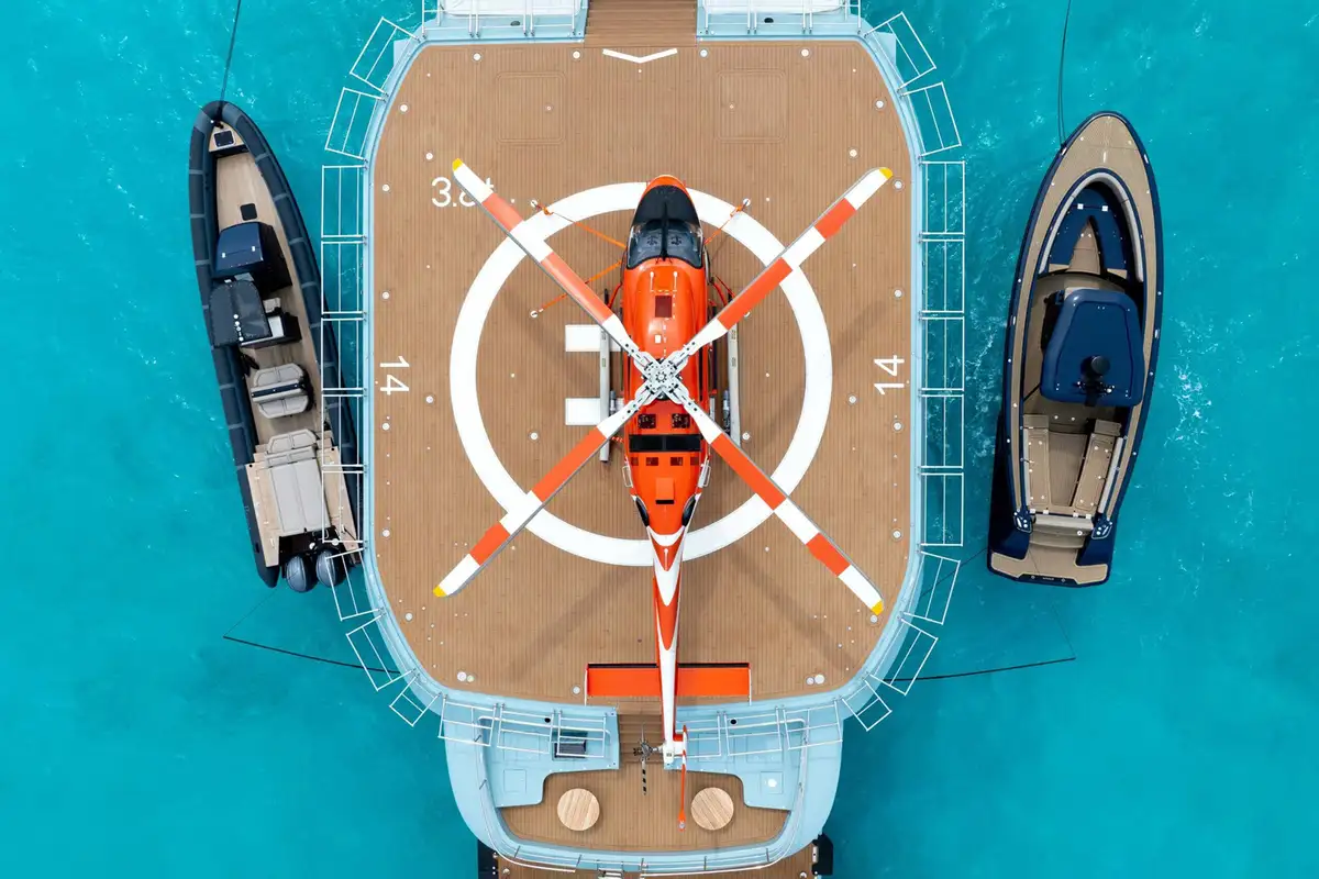 At the heart of LIMERENCE is a fully certified helideck, capable of accommodating large helicopters such as the Airbus H145 and Bell 429, with onboard refuelling facilities. Ingeniously, this expansive space transforms into a fully enclosed multi-sports arena where guests can enjoy basketball, pickleball, football, or volleyball in total privacy.