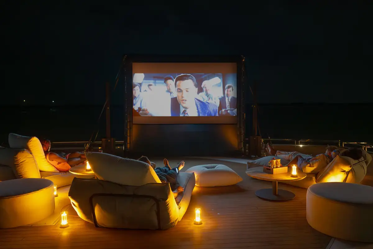 As evening falls, LIMERENCE seamlessly transforms into a world-class party venue. Guests can enjoy a full-deck DJ setup, karaoke, disco ball, and a mesmerising light show. For a more relaxed evening, opt for a candlelit dinner on the swim platform followed by an open-air cinema experience on the helideck, transformed into a starlit screening space.