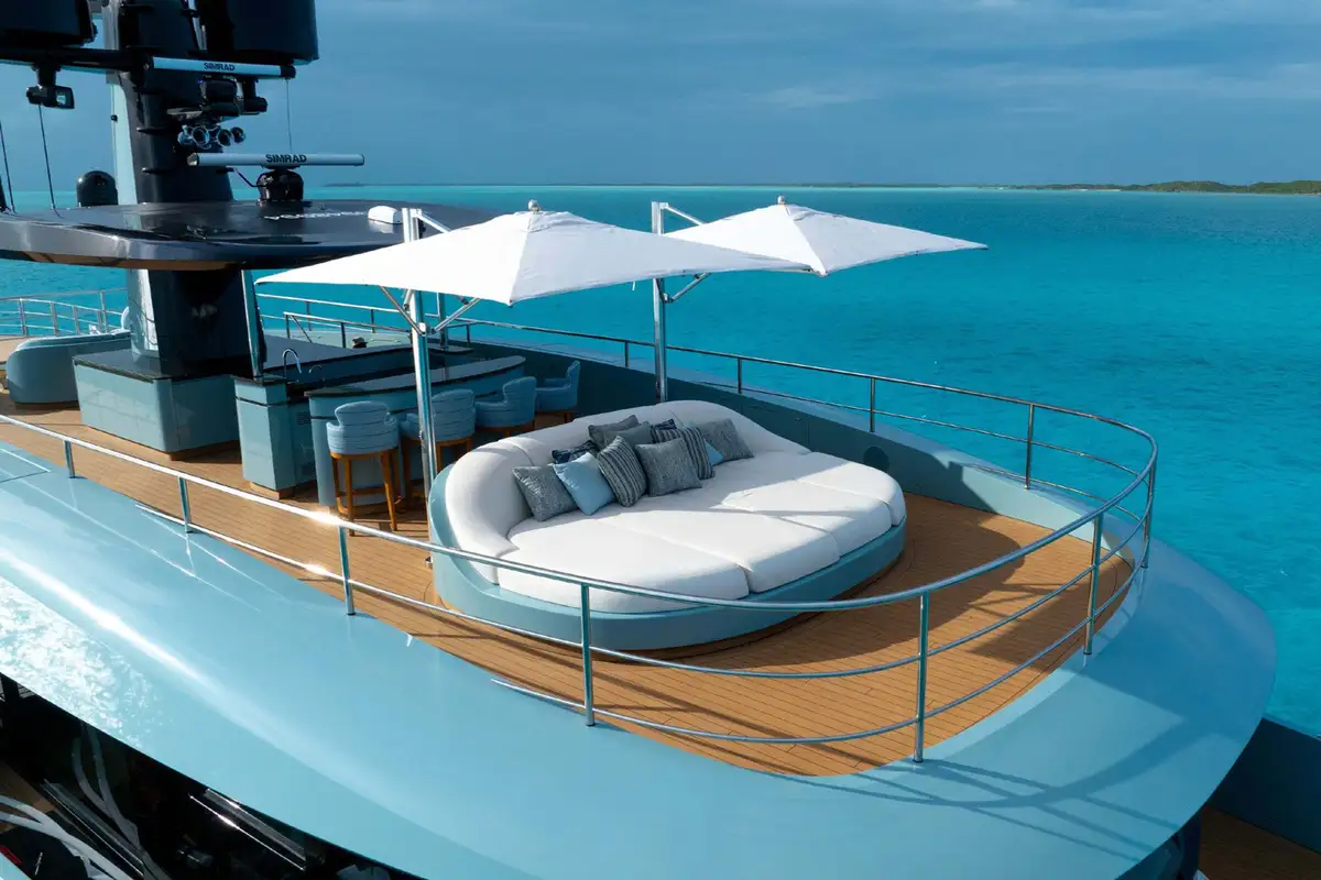 Adventurous spirits will delight in unique on board offerings such as a golf driving range with biodegradable balls and laser clay shooting. For shoreside indulgence, the crew can arrange a private beach club experience, complete with shaded lounge areas, elegant dining for twelve, and an optional beachside watersports hub. Activities like beach volleyball, cricket, frisbee, and American football keep the energy high and the fun continuous.