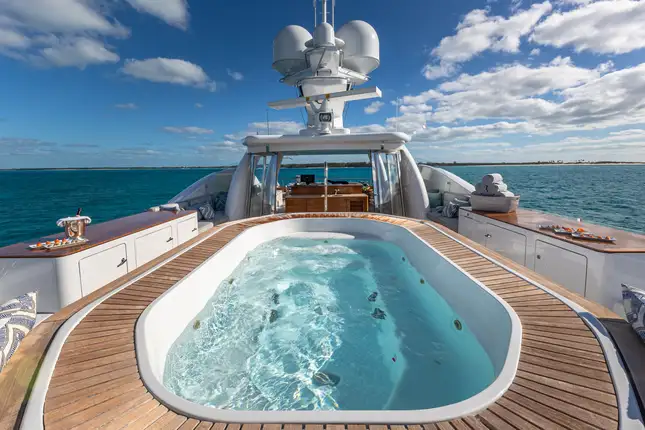 Her guests love the sun deck, where you can soak in the sun in the large jacuzzi, stretch out on the sunpads to work on your tan, work out on the exercise equipment, enjoy a sundowner at the fully equipped bar or just relax with a good book on the aft deck loungers. After dark it's back to the sun deck to watch movies under the stars.