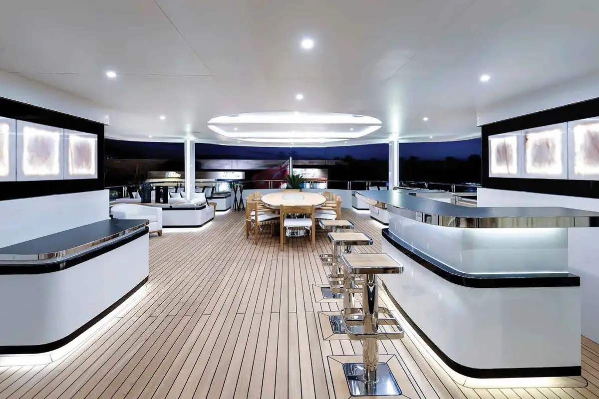 Invited by lights and music your guests step aboard to cocktails and bubbles, and a warm breeze rustling off the sea. The yachts’ three bars are in full swing, and the kitchen sends out platters of delightful amuse bouche. The children have set up camp in the cinema room to avoid going to bed - you know that they are having the time of their lives, and so are you. Welcome to cruising, LIQUID SKY-style.