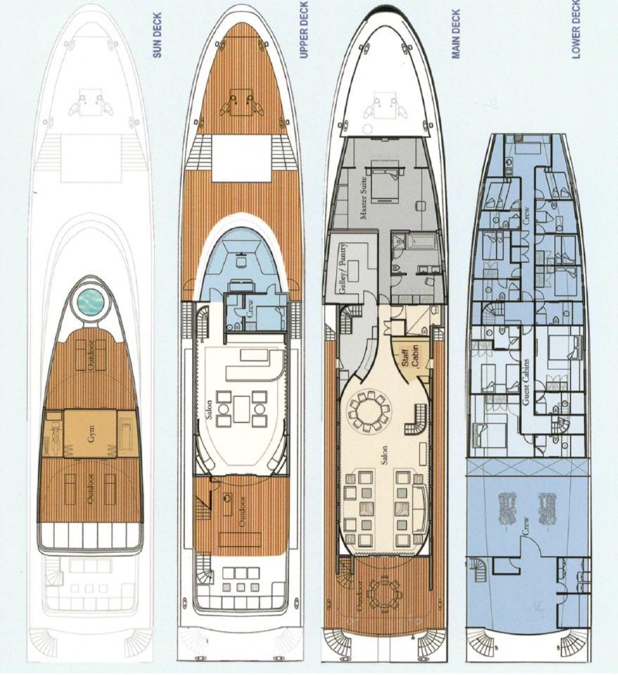 | Types de cabines | 5 (4 × double, 1 × twin, 2 × lits supplémentaires) |