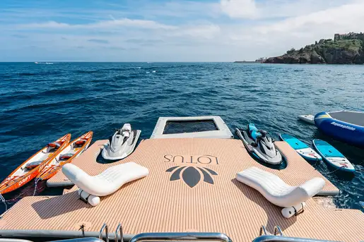 Backed by hills and vegetation, this picturesque beach is popular with visitors. There are other small coves barely accessible on foot but easy to reach by tender, ideal for privacy.