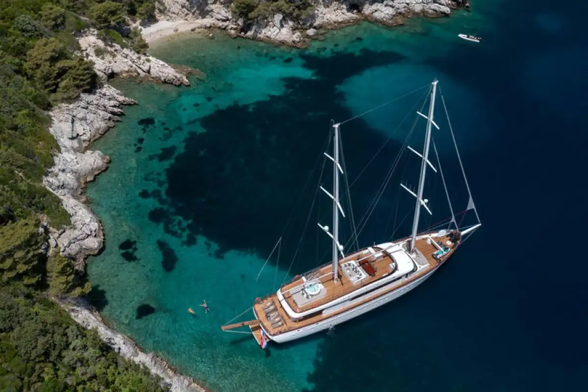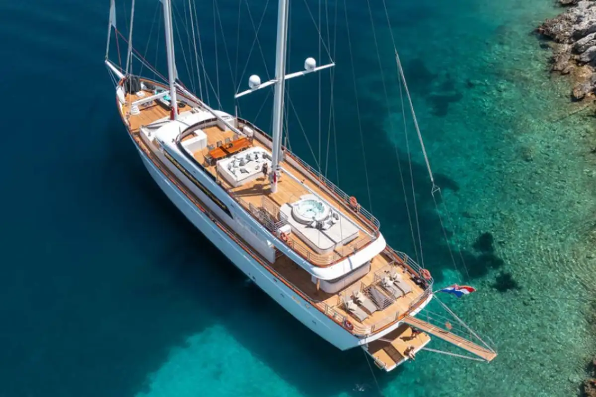 If you’re looking to cruise the islands of the Adriatic in a sailing yacht with a very generous amount of living space, LOVE STORY 43m (141ft) should be on your short list. Purpose built in 2021 as a luxury yacht for private charter, this ketch is designed to host up to 12 guests in six cabins with service from a crew of eight.