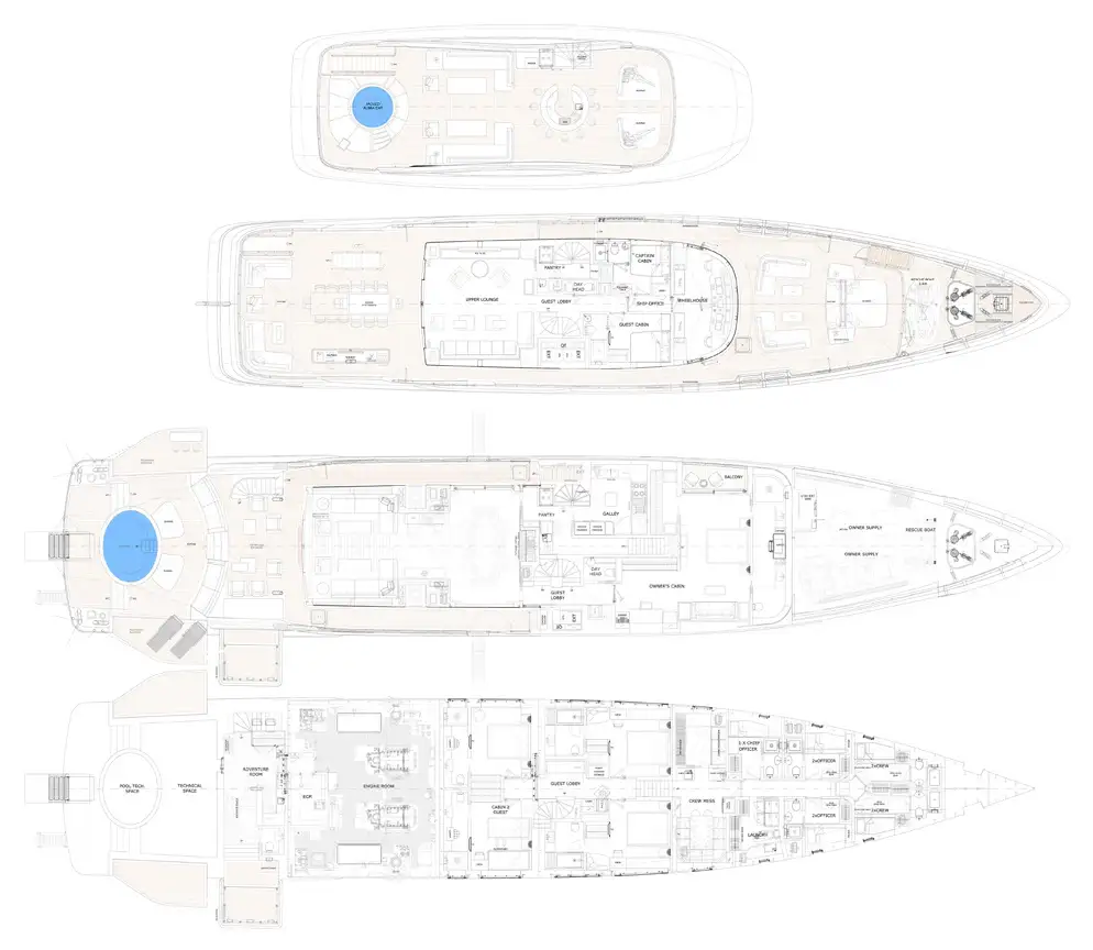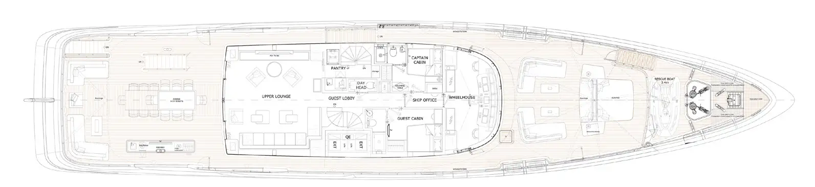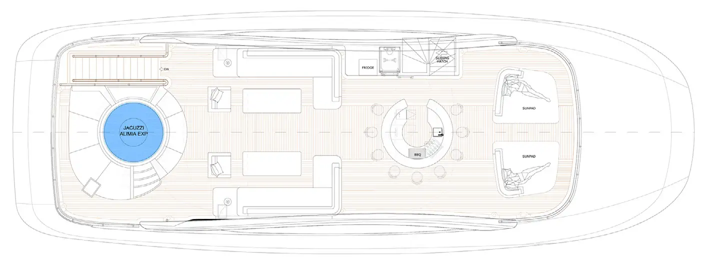- Jacuzzi on the main deck aft and sun deck
