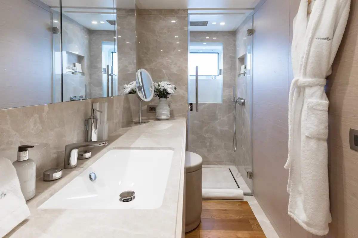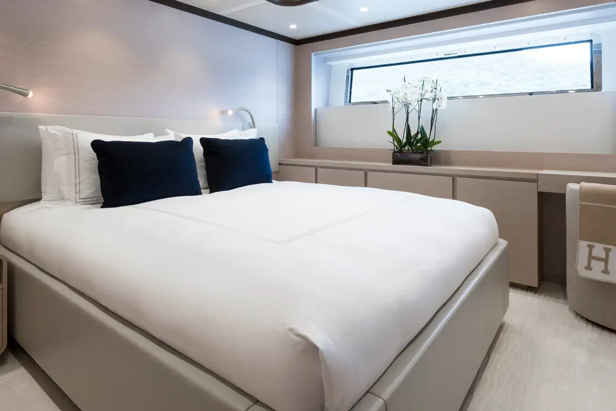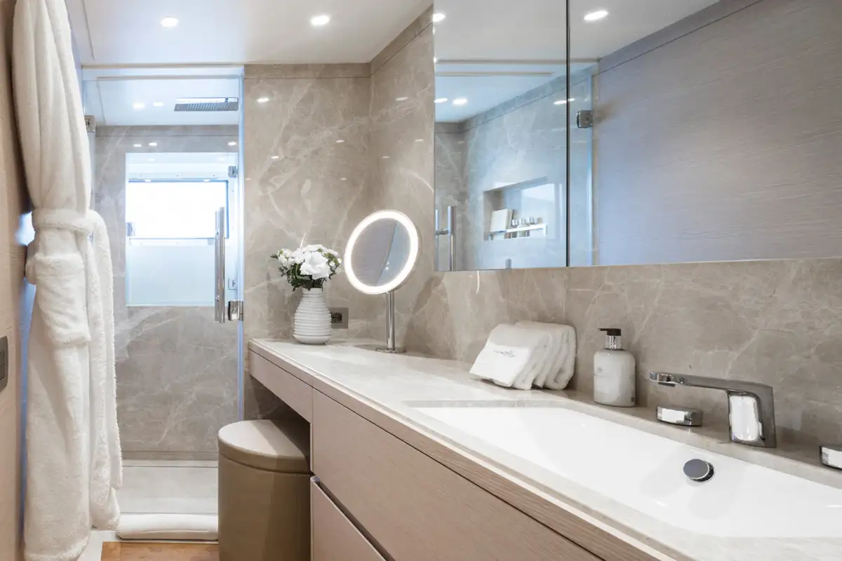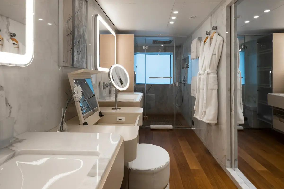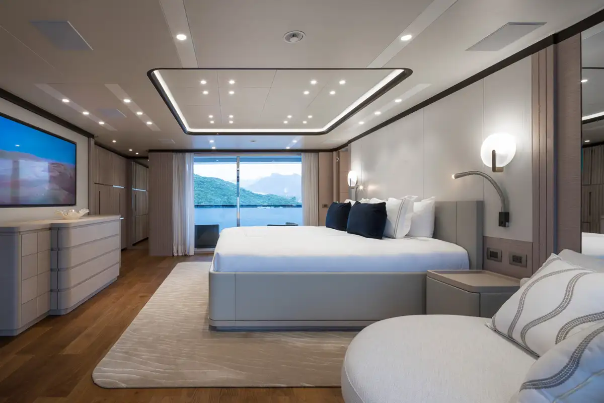 An abundance of natural light floods every deck, enhanced by panoramic windows and an open-plan layout that erases the boundaries between inside and out. LUMIERE accommodates up to 12 guests in six cabins, including a full-beam master cabin on the main deck with its own private balcony, as well as a sixth cabin that is located on the upper deck. The lower deck hosts three spacious doubles and one convertible cabin so guests can have the choice of a flexible cabin arrangement.