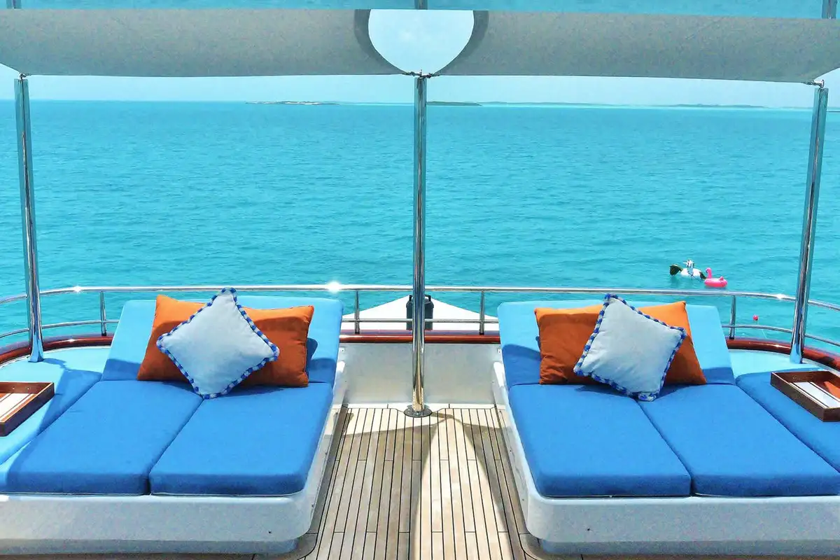 After dinner, you can retire to your private lounge in your impressive full-beam master cabin, or watch a movie and enjoy drinks with your friends or family in M3’s comfortable sky lounge. Perhaps you’d rather take drinks onto the upper aft deck al fresco lounge area, to take in your breath-taking surroundings, with stars filling the night’s sky.