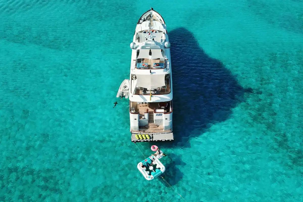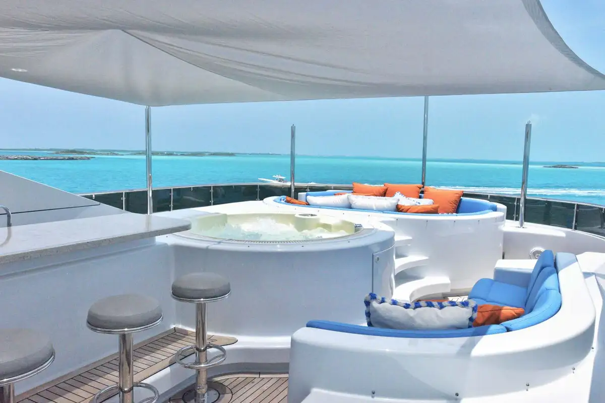 As your charter progresses you can spend time relaxing on the sun deck with its splendid sunpads, social seating, wonderful wet bar and a joyful jacuzzi. Others in your party might want to enjoy the thrill of being towed at speed on inflatable toys behind the yacht’s tender or an exhilarating thrash around on one of her two PWC. You may want to join them or opt for a more tranquil retreat on a paddle board or just take time out snorkelling with the abundant marine life beneath the waves.