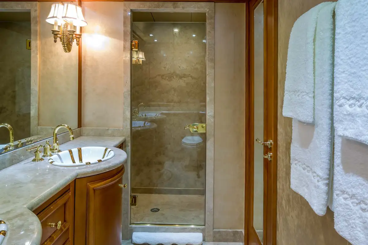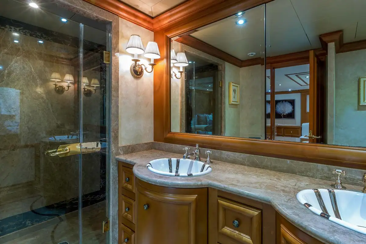 You and your guests can take as long as necessary to freshen up in M3’s sumptuous suites. These are thoughtfully arranged to offer you versatile accommodation for 10 guests in total, with four double suites and one twin-berth suite. M3 stands out with both a full-beam main deck master suite and a full-beam double VIP suite on the lower deck too.