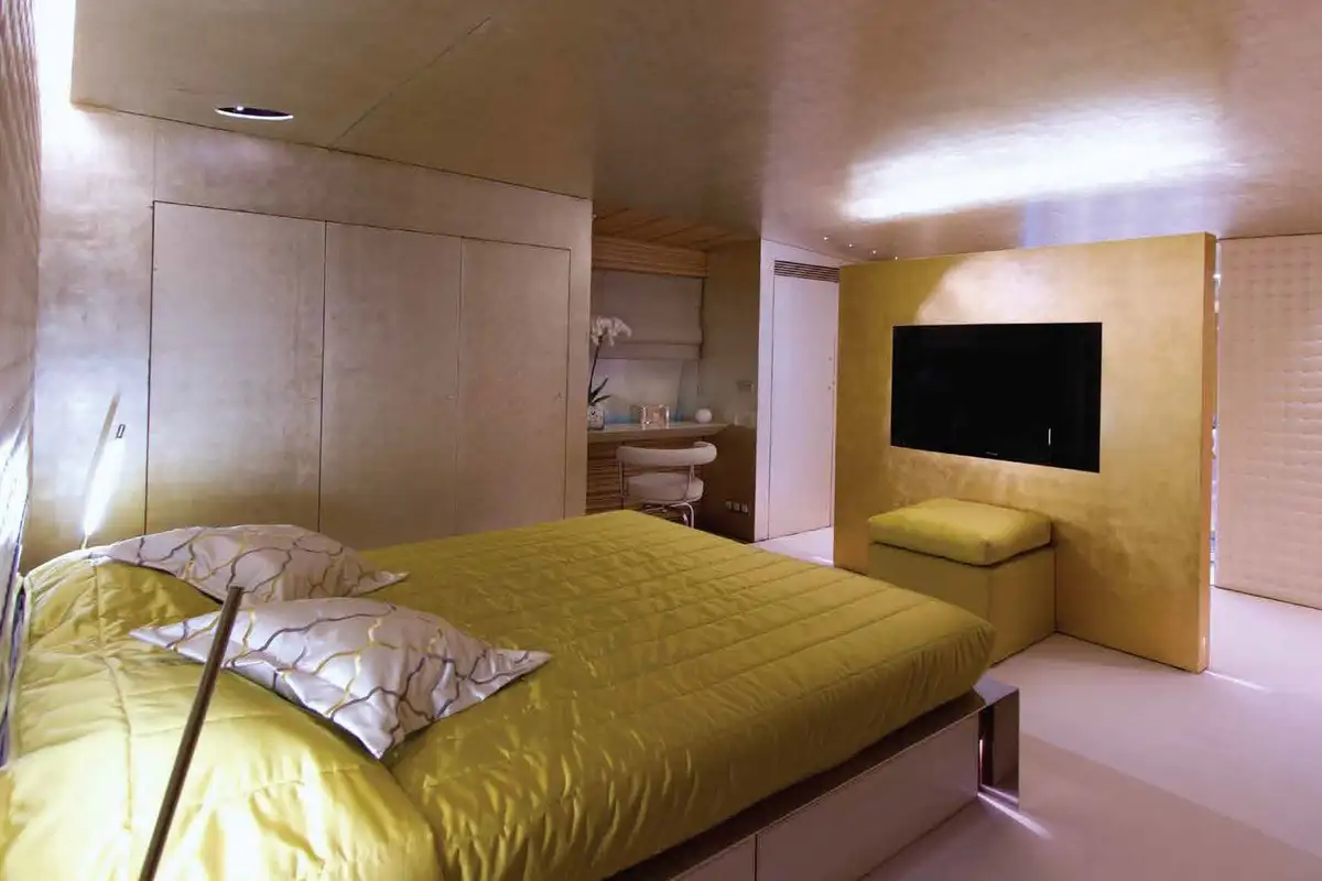 Awake in the cool, minimalist master suite forward on the main deck and make your way up to the huge sun deck where a healthy and nutritious breakfast awaits on the open air dining table shaded by a removable awning. Then stretch out on the banks of seating either side while you make the day's plan with the captain. The crew is entirely Greek so you have all their local knowledge at your disposal to find the secret places you're going to love.