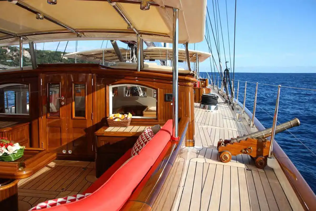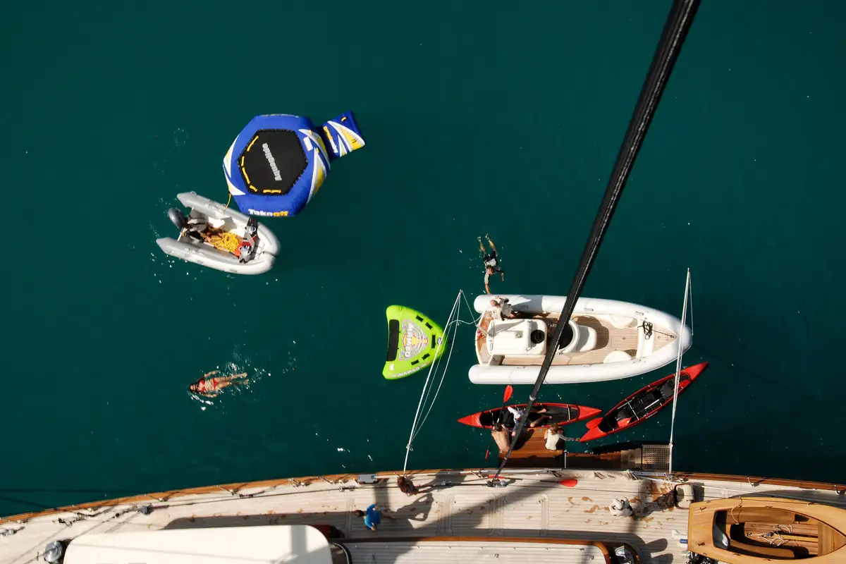 The exquisite 3.7m (12ft) launch, MARIETTA, is housed on board. This 1910 Mylne-designed sailing dinghy with an electric motor is perfect for exploring quiet bays or teaching children to sail. The young and the mischievous will enjoy playing 'pirates' and firing a salute from MARIE's fully operational cannons. Others will love the crow's nest lift that hoists two guests 37.5m (123ft) up the main mast for spectacular views.