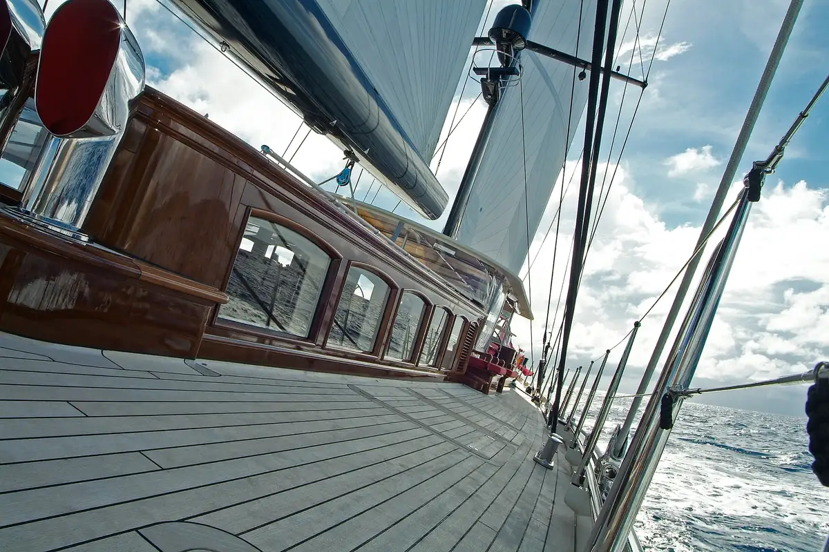 Her soaring masts were designed to carry a huge 3,300sqm (33,500sqft) press of sail, which can smoothly propel this luxury yacht to over 18 knots. The latest hybrid and carbon fibre technology ensures that she is agile and, most importantly, safe.