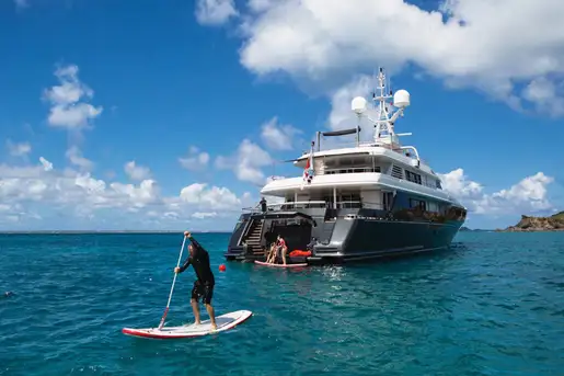 Come the afternoon and MARIU will display another of her strengths, offering a myriad selection of watersports for all capabilities. As an RYA approved training centre for personal watercraft, guests can gain a temporary license to ride the jetskis and waverunners for the duration of the yacht charter. The yacht’s toy box is also bursting at the seams with SeaBobs, a hoverboard, scuba diving equipment and all manner of towable toys to amuse yourself in the waters around the yacht.