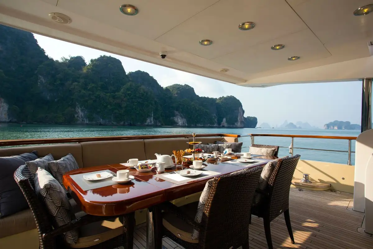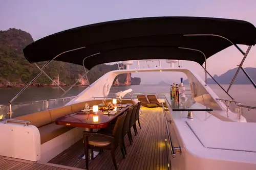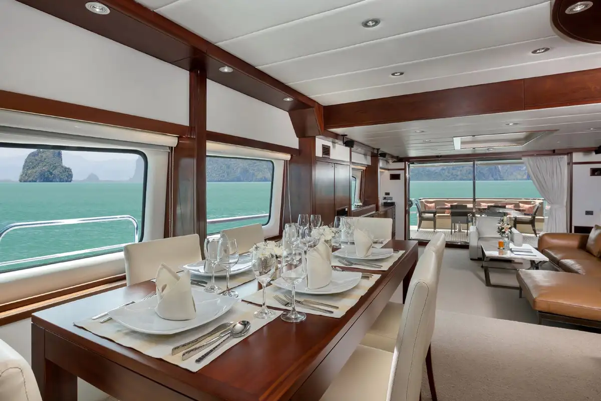 MIA KAI offers multiple seating areas both inside and out with shaded and sun lounging areas on the sun deck and lounging on the bow.