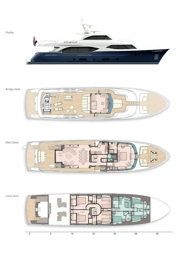 - Zero speed stabilisers to reduce any rolling motion while at anchor