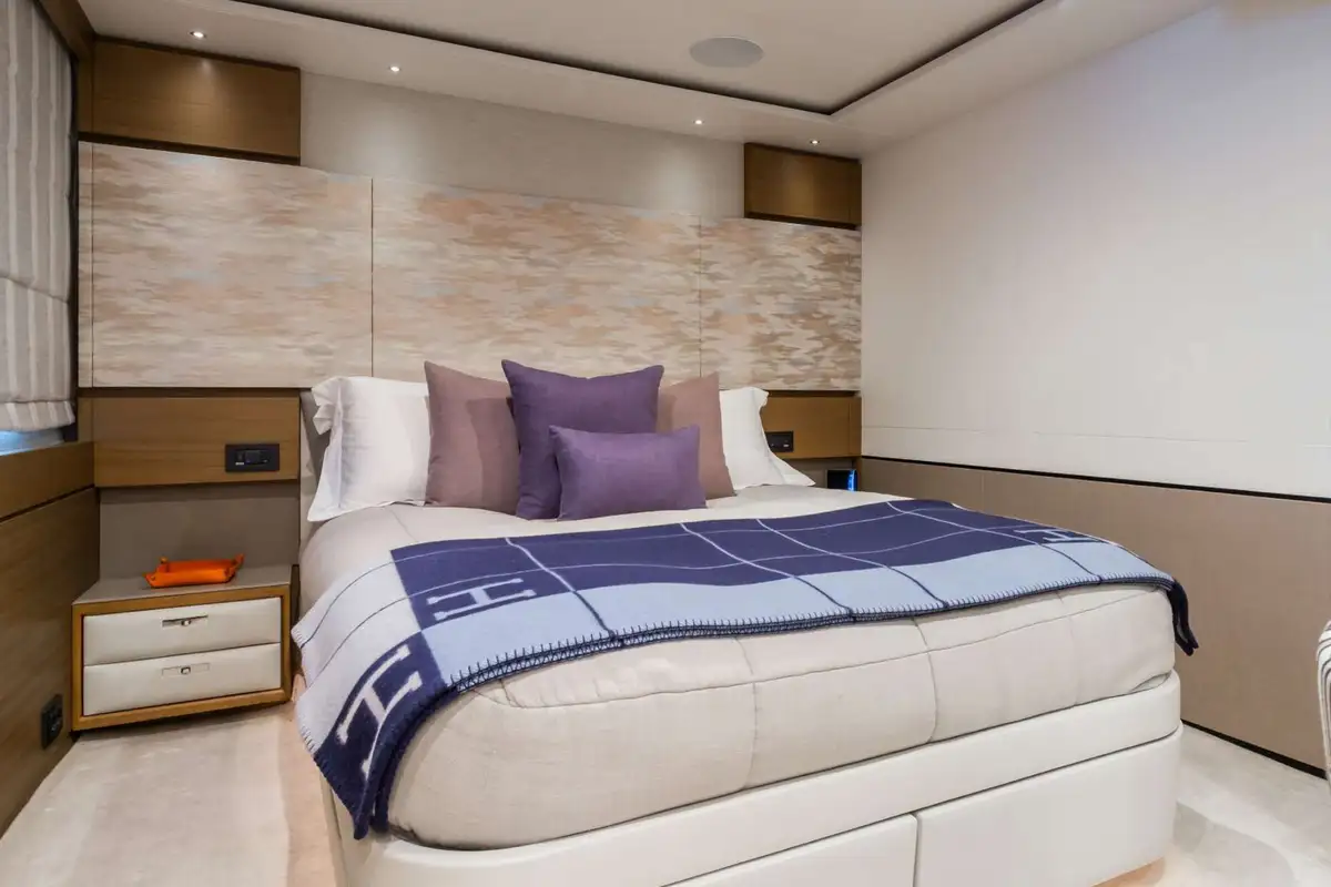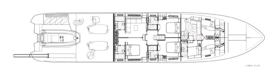 Another stand-out feature of this yacht is her versatile layout, which adapts to suit a wide range of guests and purposes. With a luxurious VIP double cabin on the lower deck as well as the full-beam master cabin on the main deck, she’s a great choice for two couples sharing a charter with space for children, too. The VIP suite can also convert into a regular double and a nice single cabin.