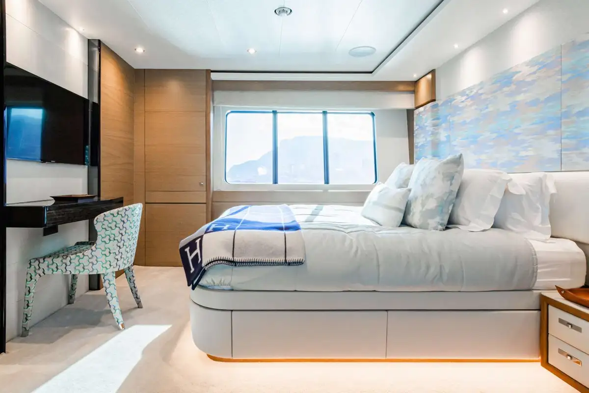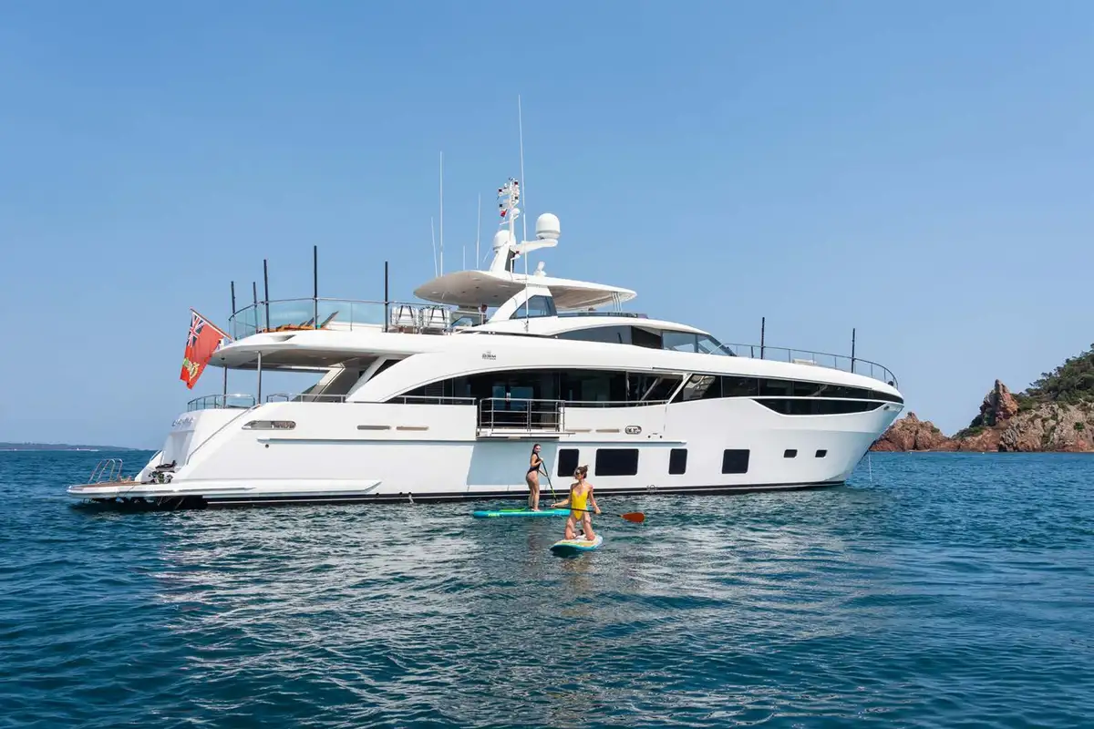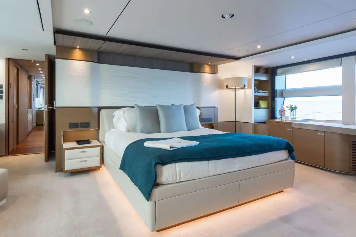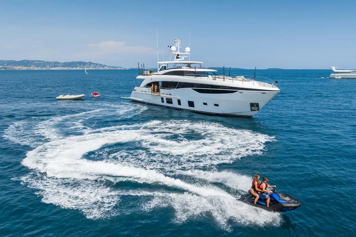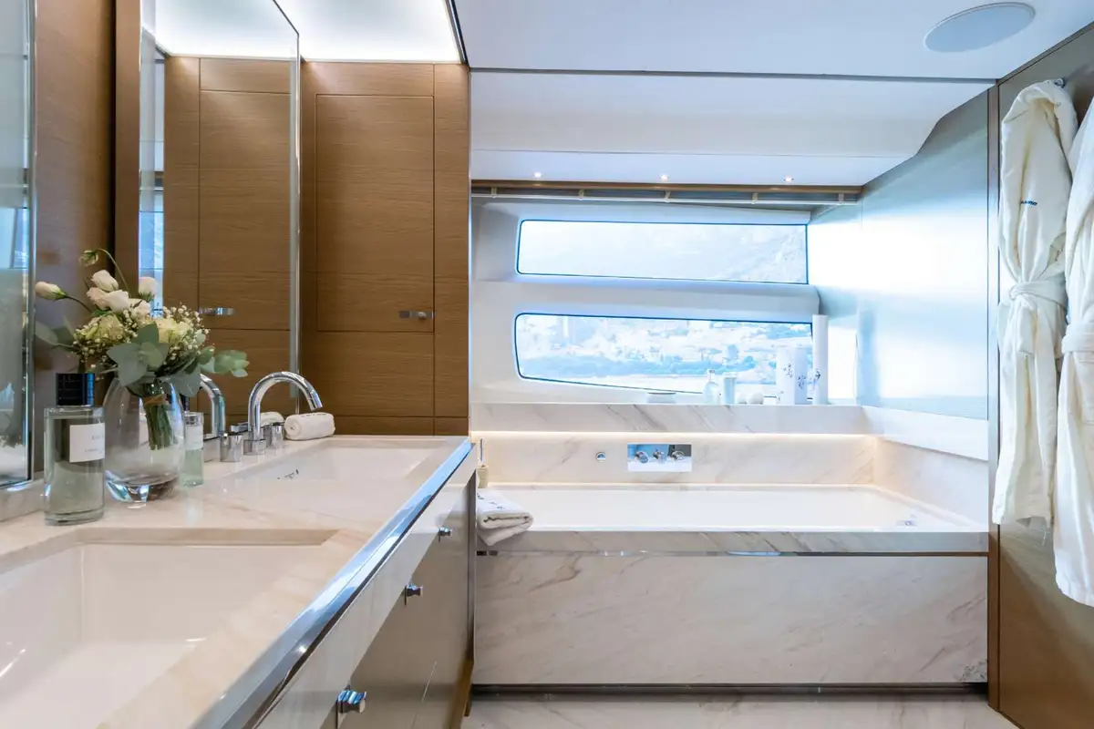 She comes with an extra-large RIB tender that’s great for beach landings as well as waterskiing, wakeboarding and inflatable tows. With a jet ski, paddleboards, submersible scooters and more, there’s never a dull moment on board. Plus, there’s one more great feature that you may not notice - she has active stabiliser fins to prevent any rolling motion. So whether you’re cruising along the coast or anchored in a bay, your comfort is assured at all times.