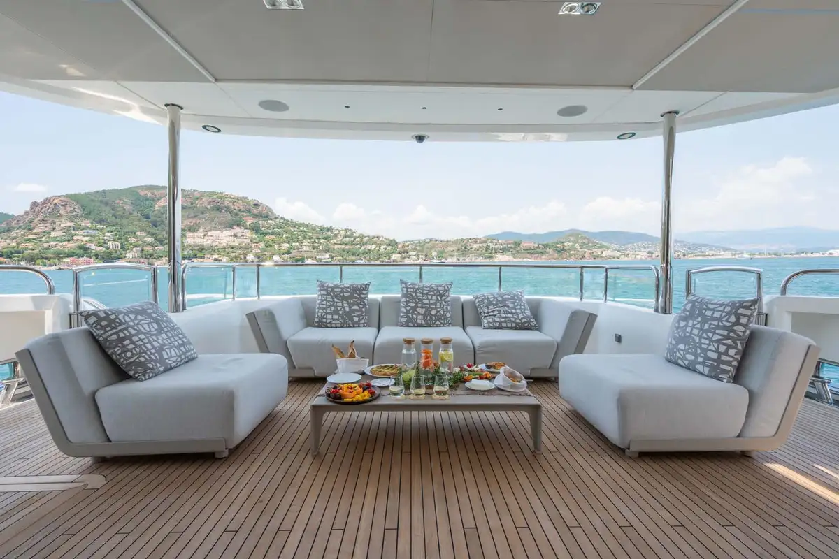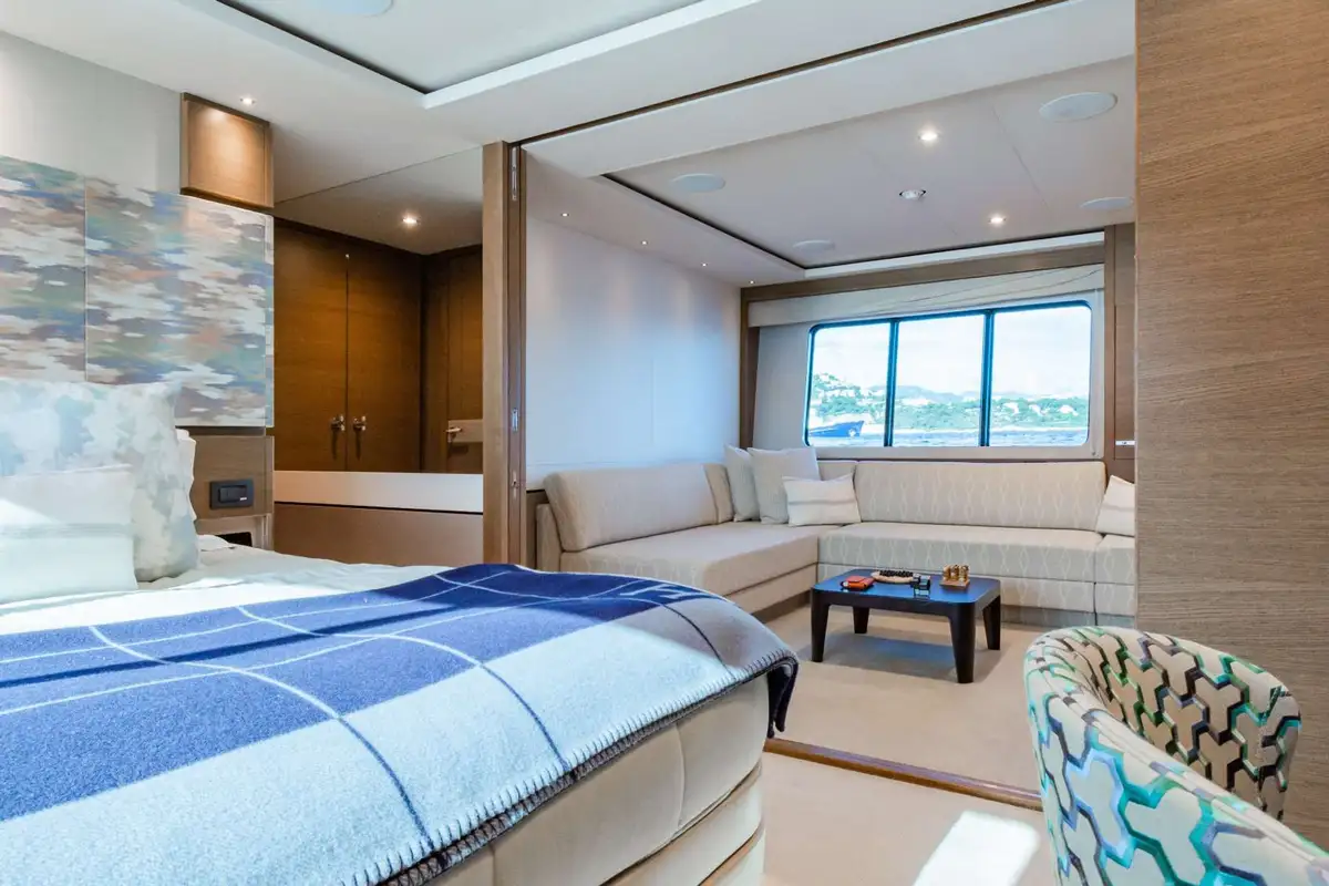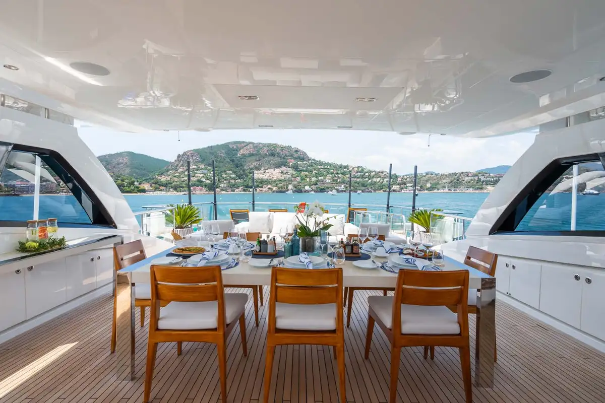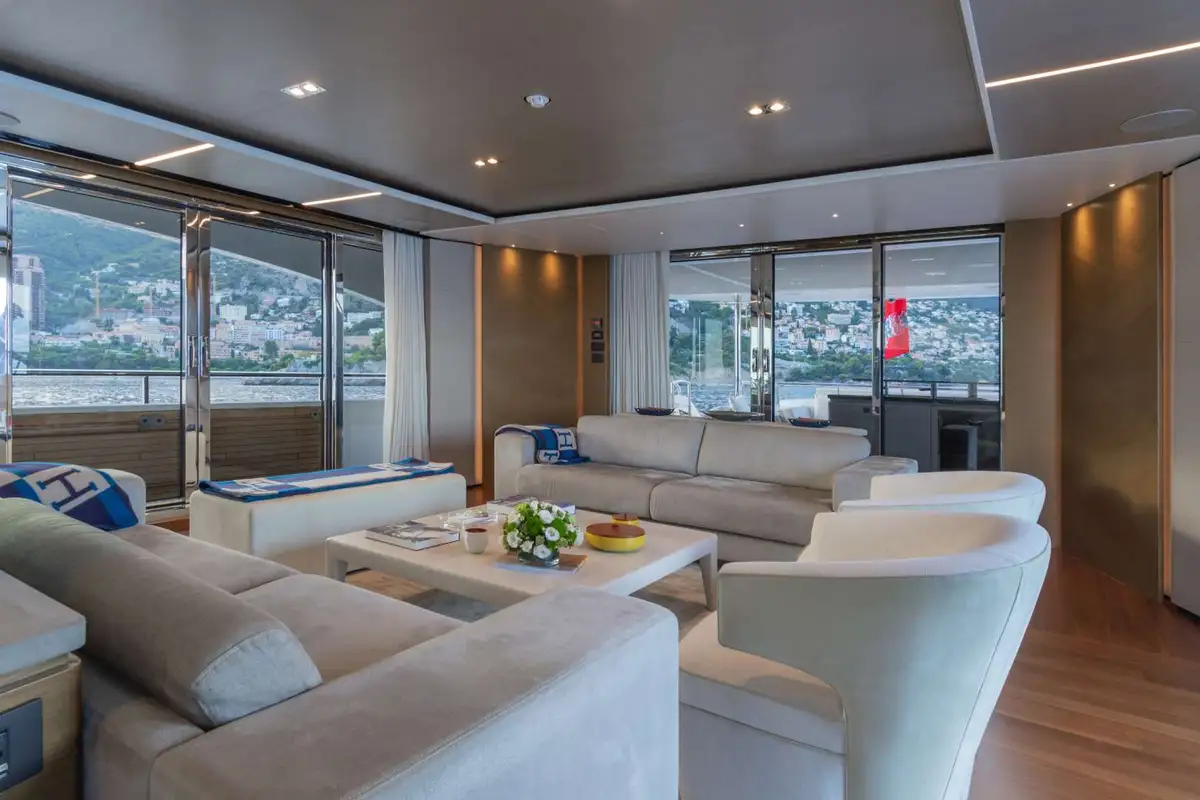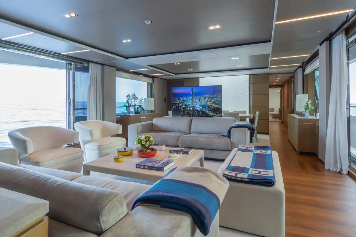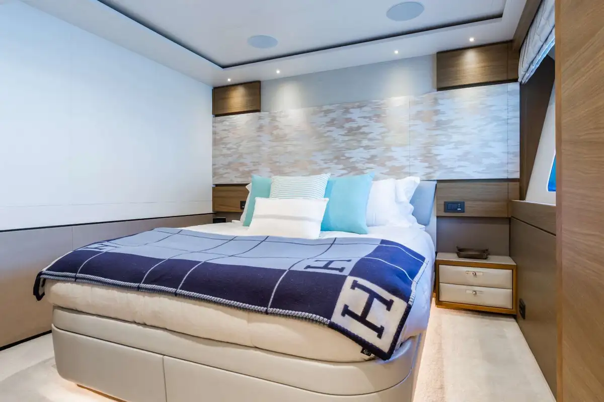 She comes with an extra-large RIB tender that’s great for beach landings as well as waterskiing, wakeboarding and inflatable tows. With a jet ski, paddleboards, submersible scooters and more, there’s never a dull moment on board. Plus, there’s one more great feature that you may not notice - she has active stabiliser fins to prevent any rolling motion. So whether you’re cruising along the coast or anchored in a bay, your comfort is assured at all times.