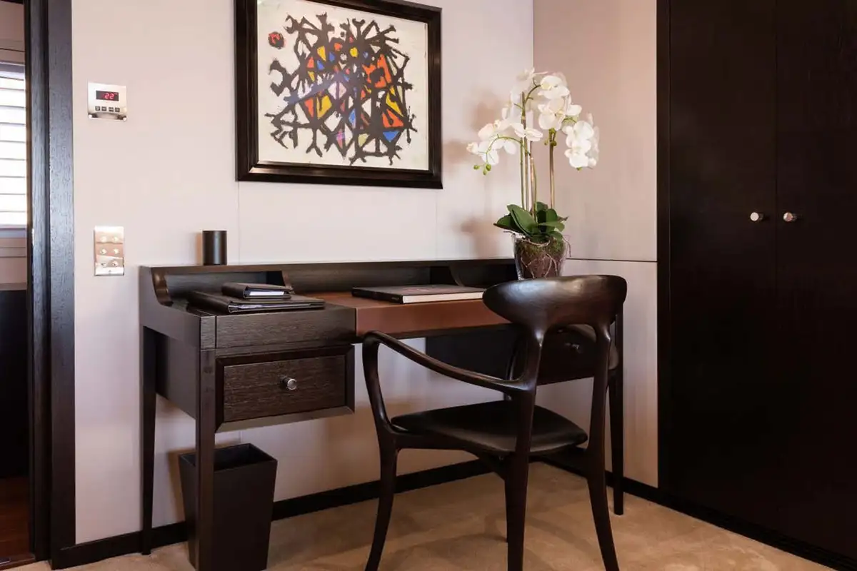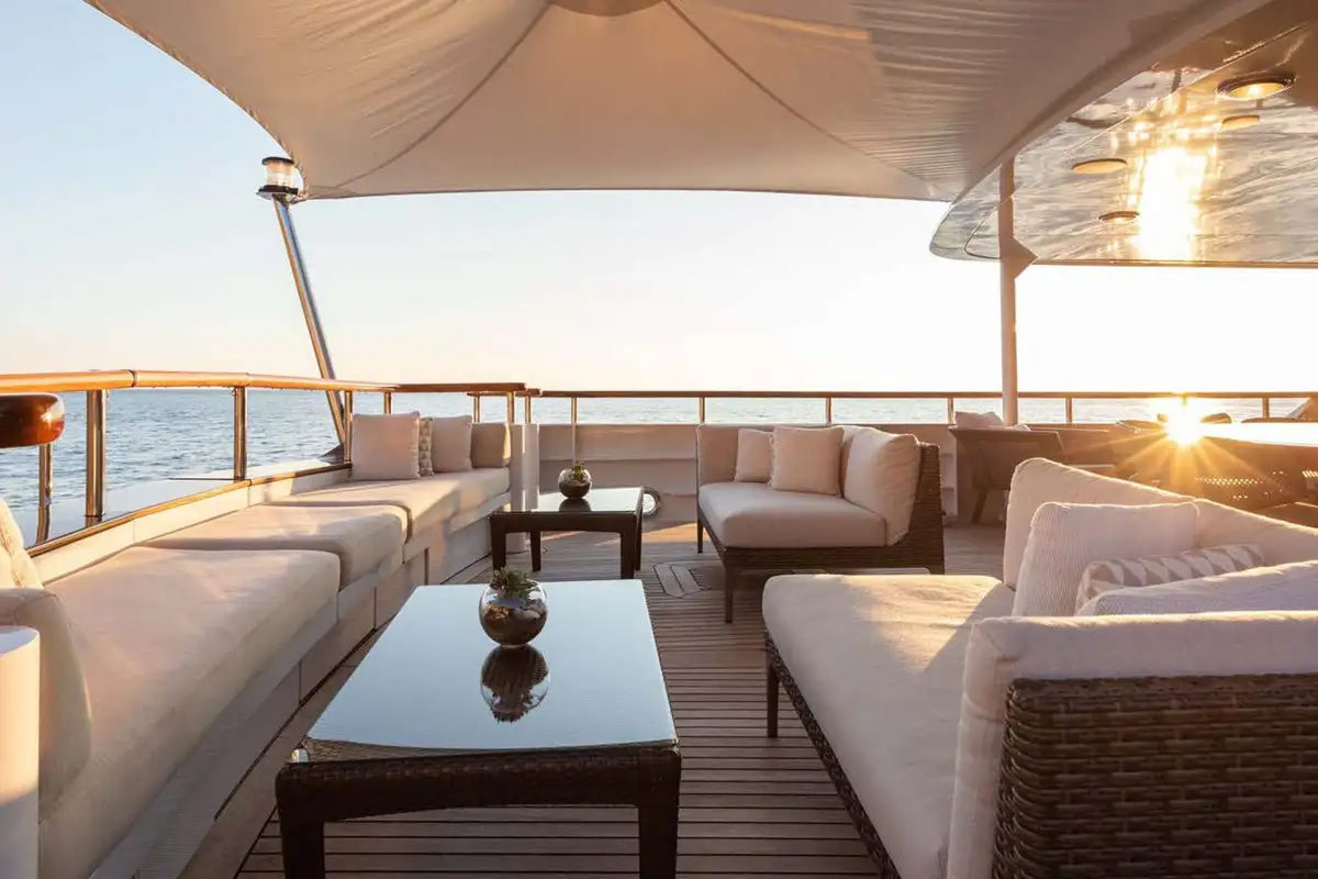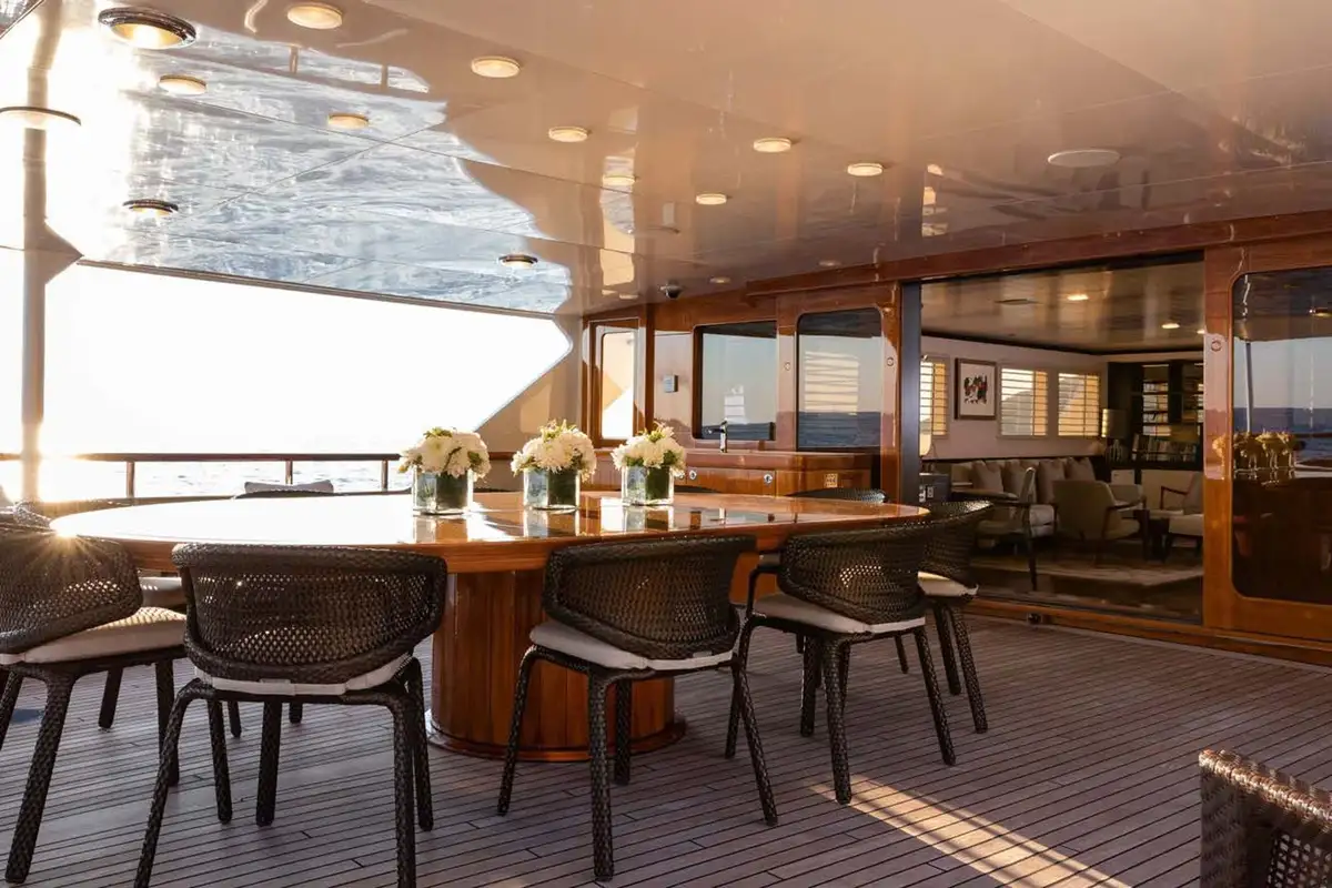 After a peaceful night's slumber, begin the day with a workout on the sun deck or a sunrise yoga session with the dedicated exercise equipment. This enviable location allows guests to enjoy the fresh breeze and views over the ocean while they work out. Follow your session with a cooling dip in the mosaic jacuzzi before heading down to the upper deck to enjoy a well-deserved breakfast.