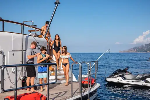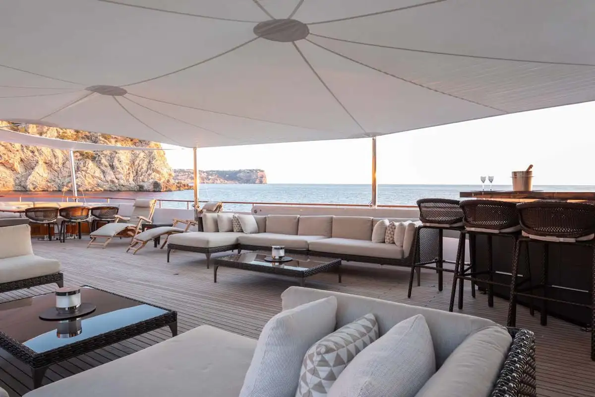 After an al fresco lunch, the sky lounge is the perfect place to retreat to avoid the sun at its peak and rest before some fun on the water, discovering MIRAGE’s treasure trove of toys. As an approved RYA watersports centre MIRAGE can offer endless options for her guests, including scuba diving equipment, sailing boats, jetskis and various towable toys.