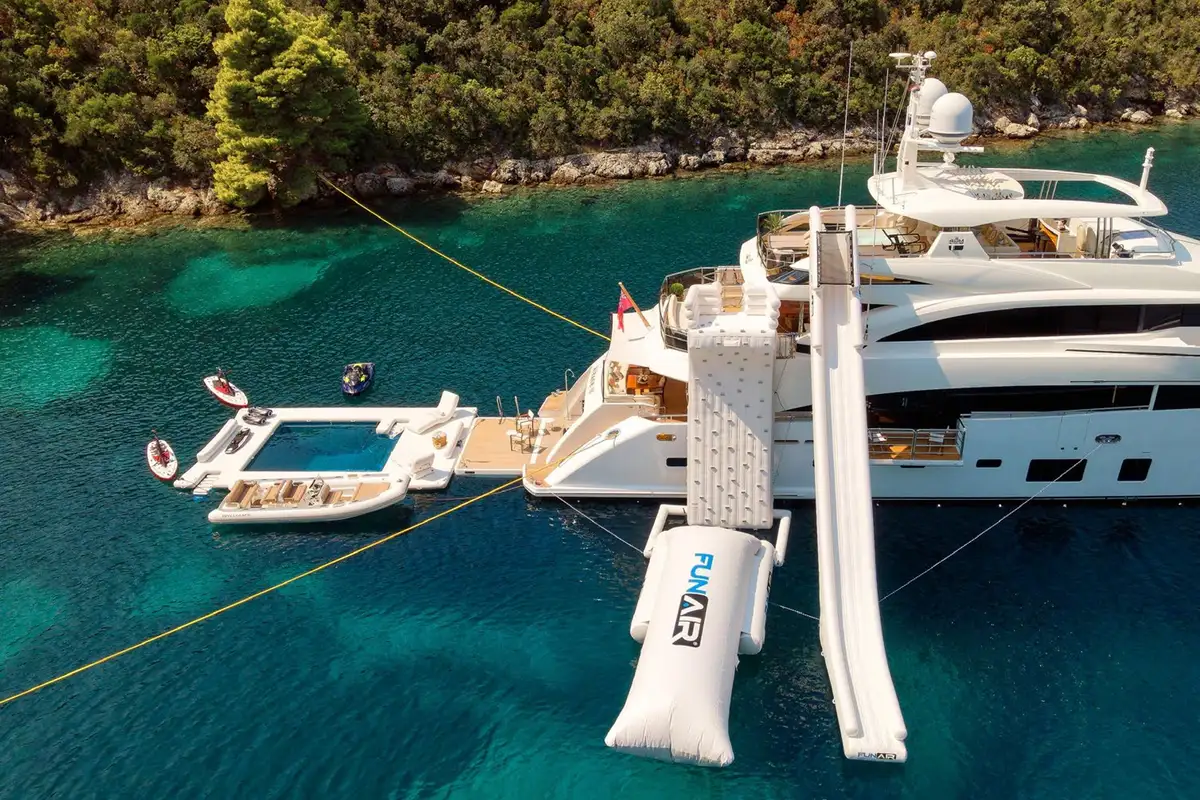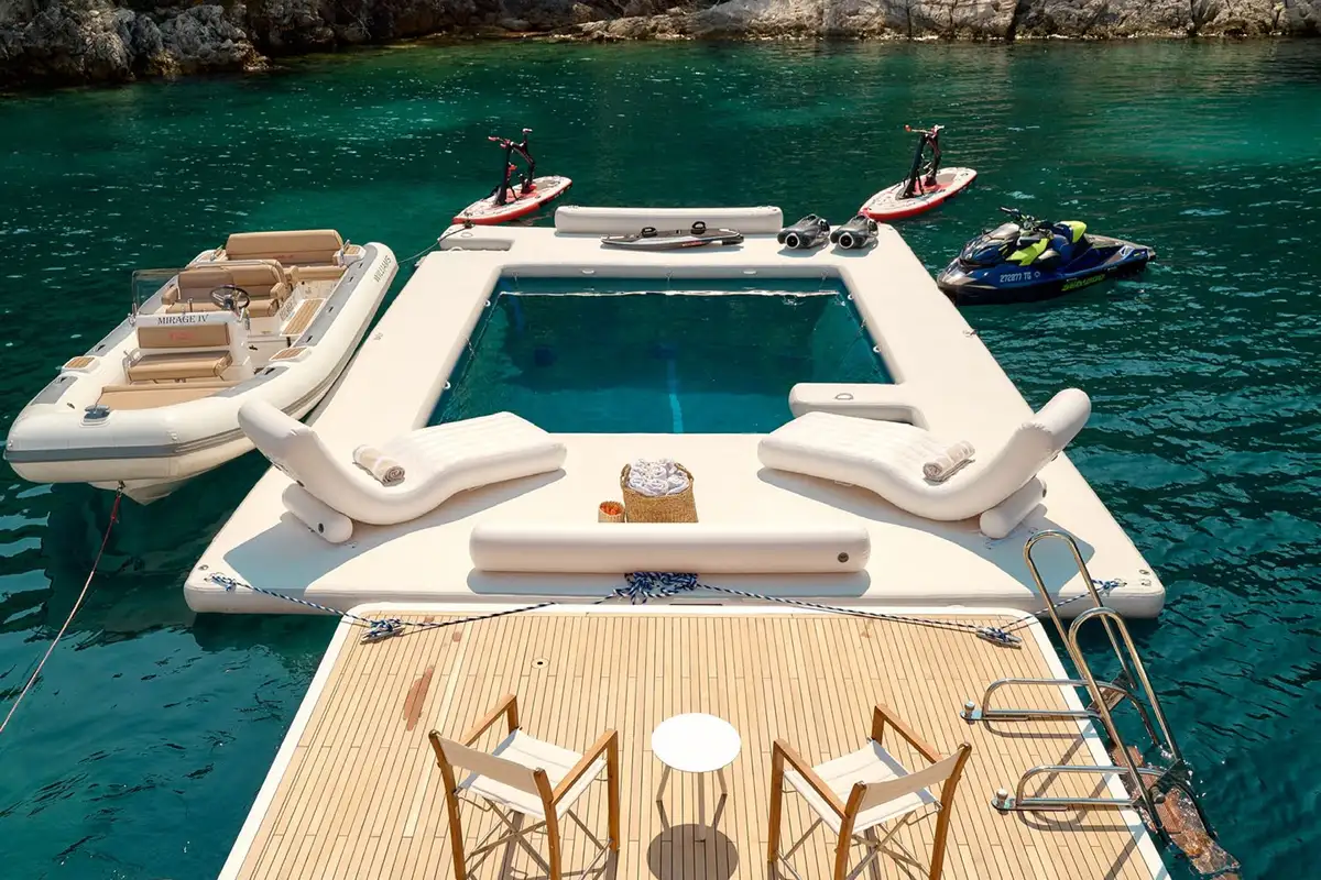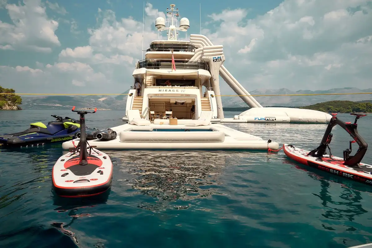 For thrill-seekers and water lovers, MIRAGE IV comes packed with toys, including jetskis, SeaBobs, waterskis, stand up paddleboards, wakeboards, surfboards, and snorkelling gear. The standout feature? A waterslide that takes you straight from the sun deck to the sea in seconds. Based in the Mediterranean and available for both summer and winter charters, MIRAGE IV promises a yacht experience that’s stylish, exhilarating, and effortlessly luxurious.
