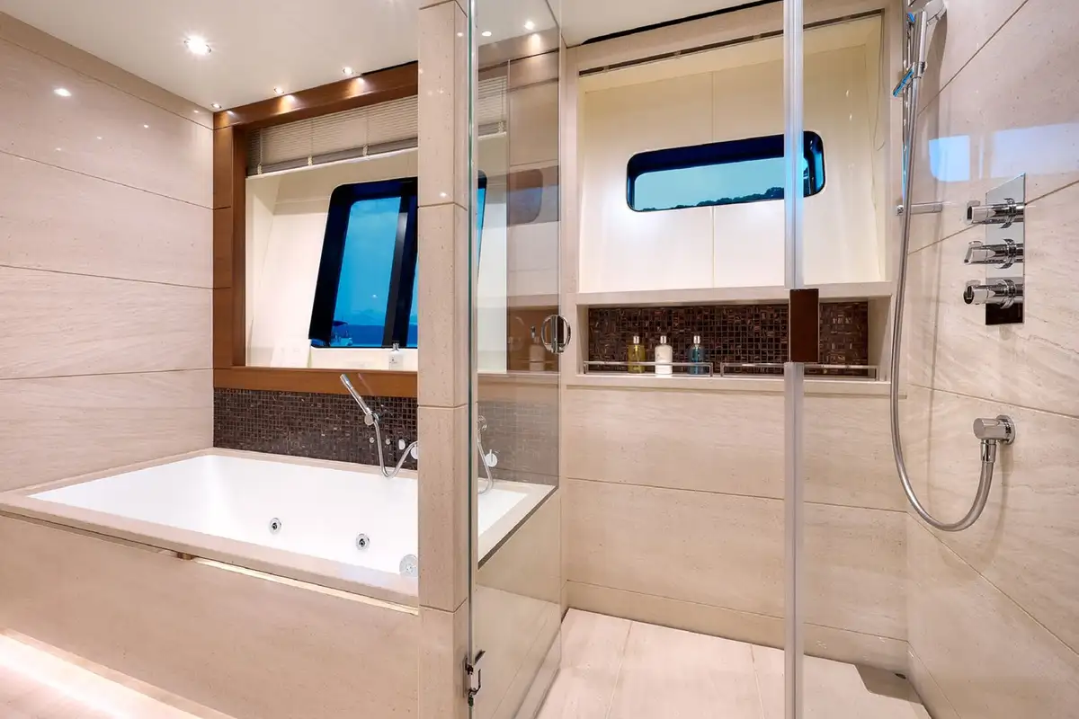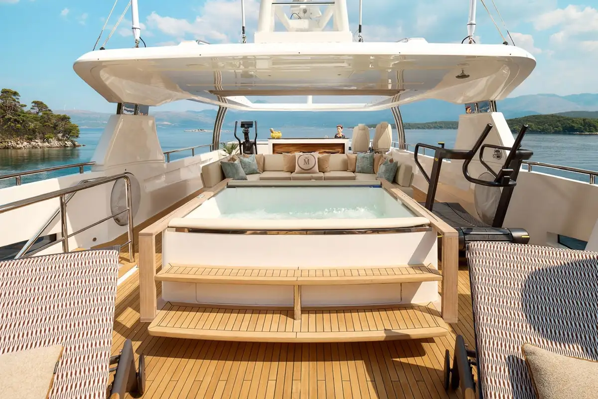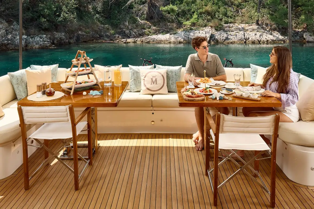 Whether you're lounging in the deck jacuzzi with a drink in hand or enjoying dinner under the stars, MIRAGE IV is built for luxurious relaxation. Wi-Fi connectivity and full air conditioning keep things comfortable and connected, while generous deck areas offer panoramic views and plenty of space to unwind or entertain.
