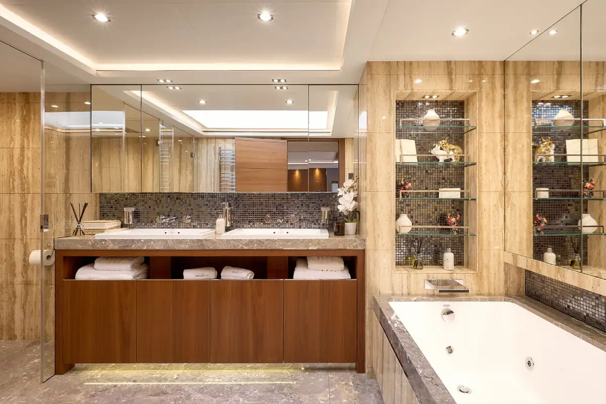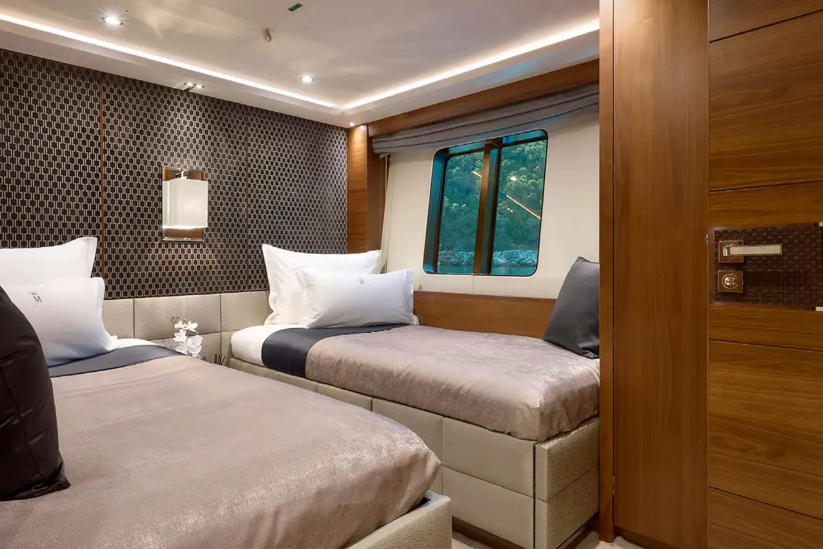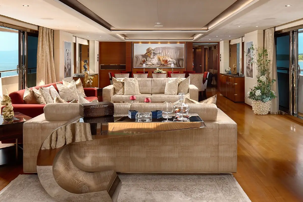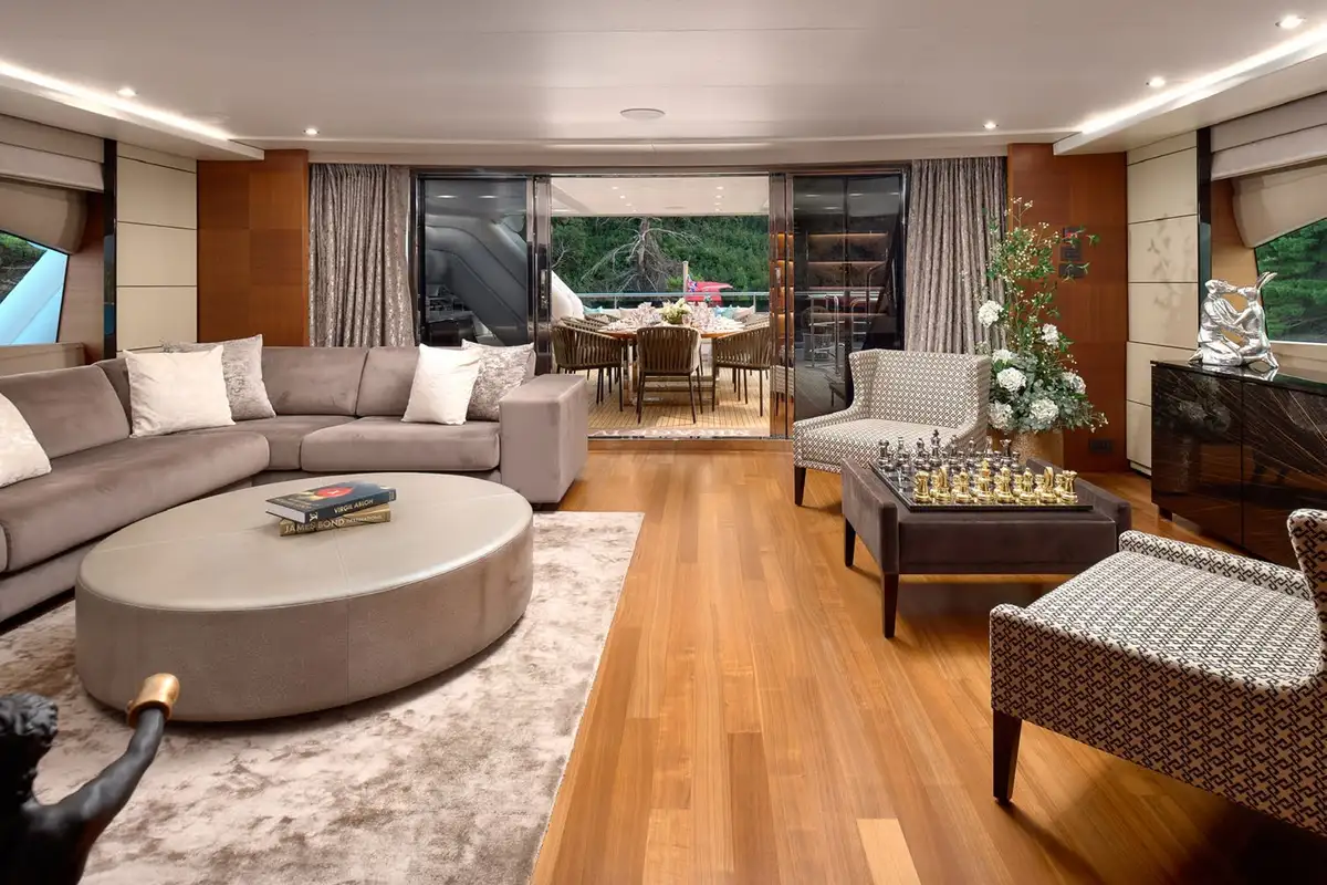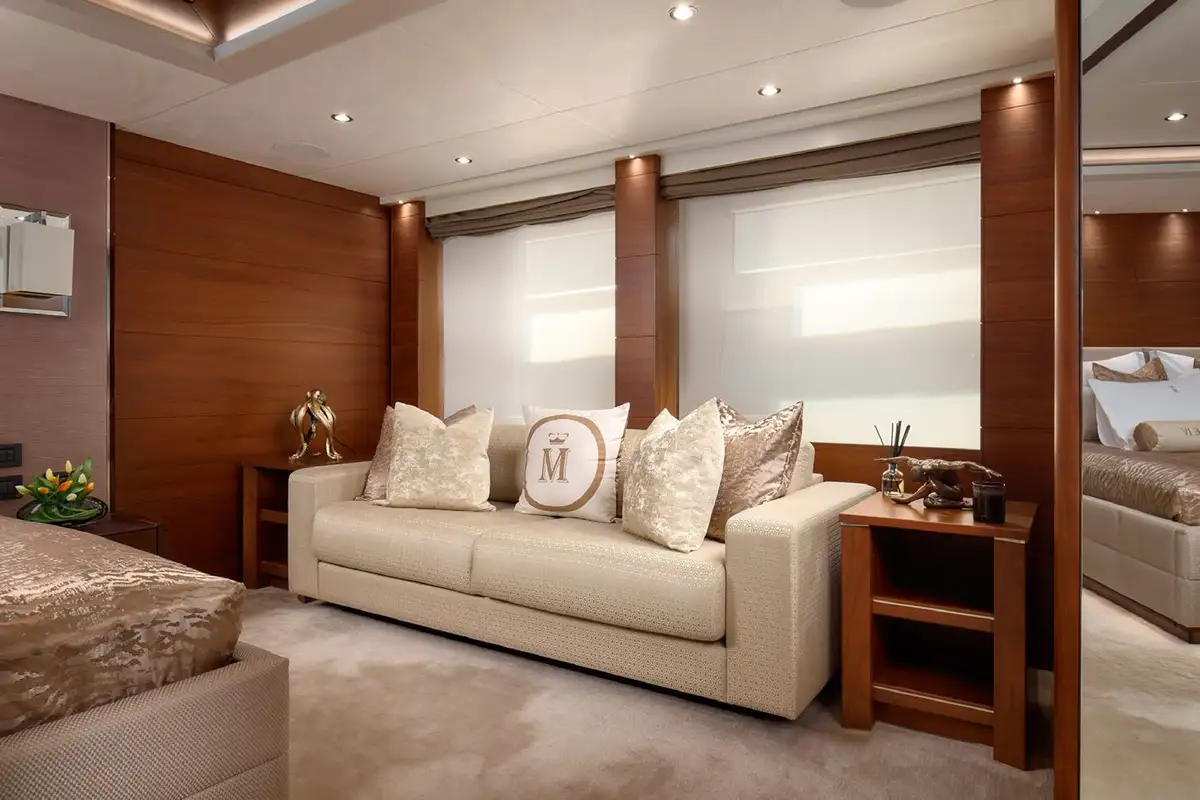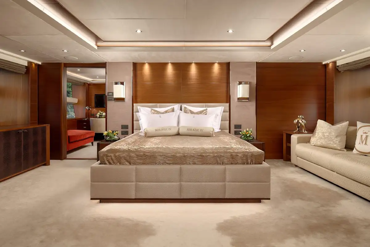Accommodating up to 12 guests in six elegant cabins, MIRAGE IV is perfect for larger families or groups of friends. The layout includes a mix of doubles and twins for flexibility, all served by a highly trained crew of seven dedicated to delivering a relaxed and refined charter experience. Every space aboard is thoughtfully designed, creating a warm, welcoming atmosphere with an unmistakably upscale feel.