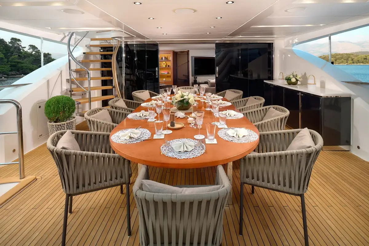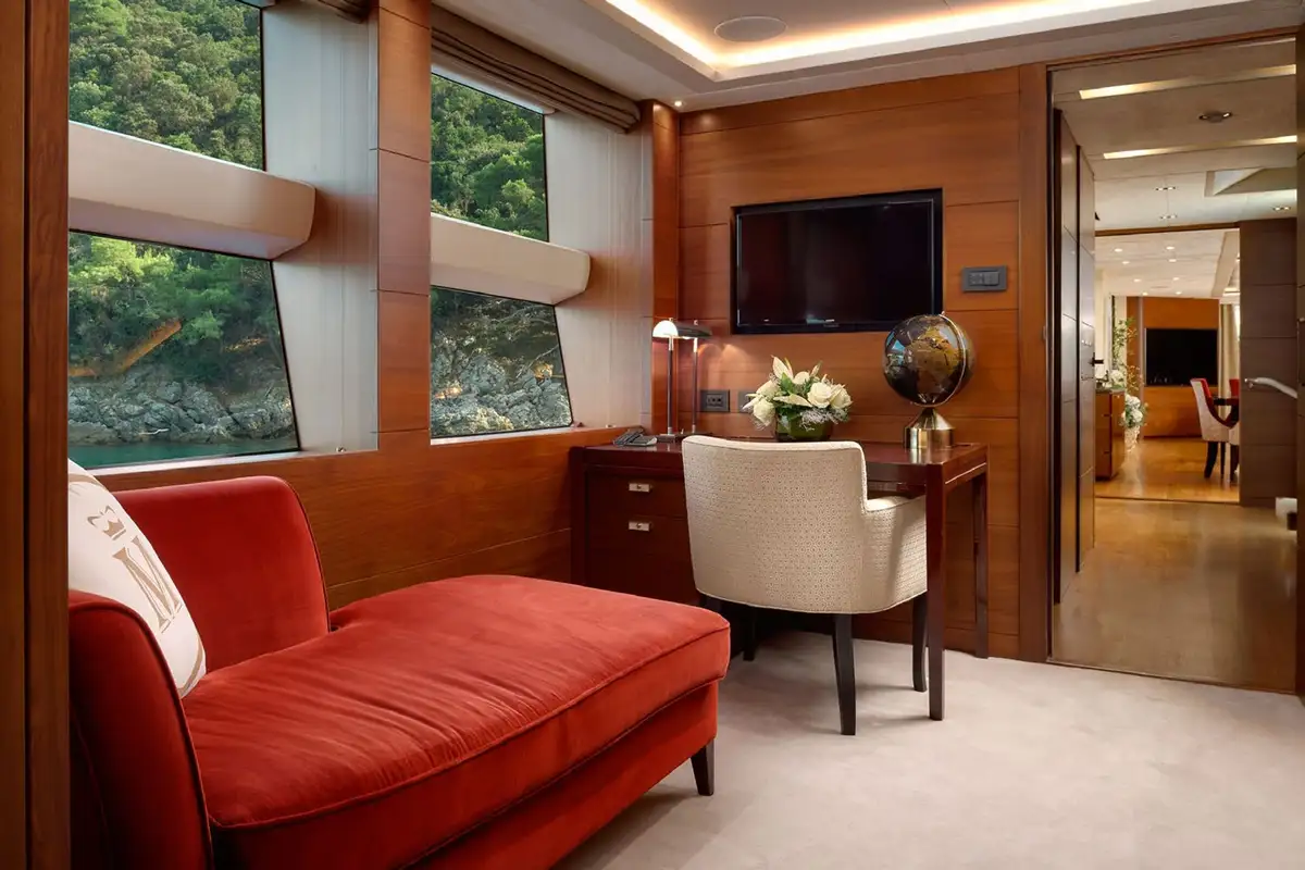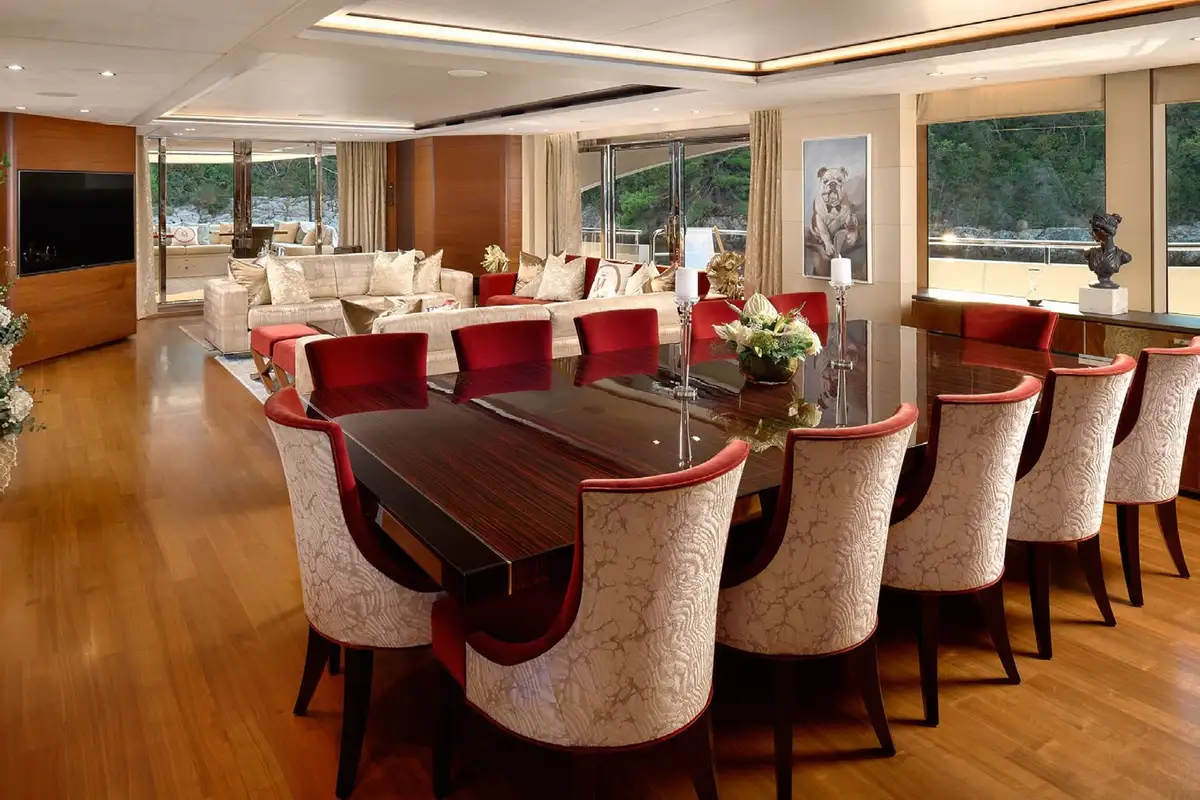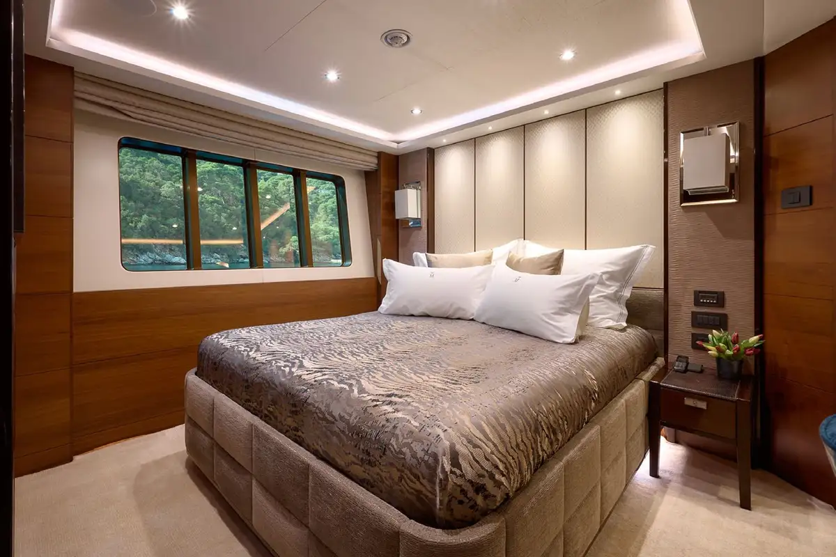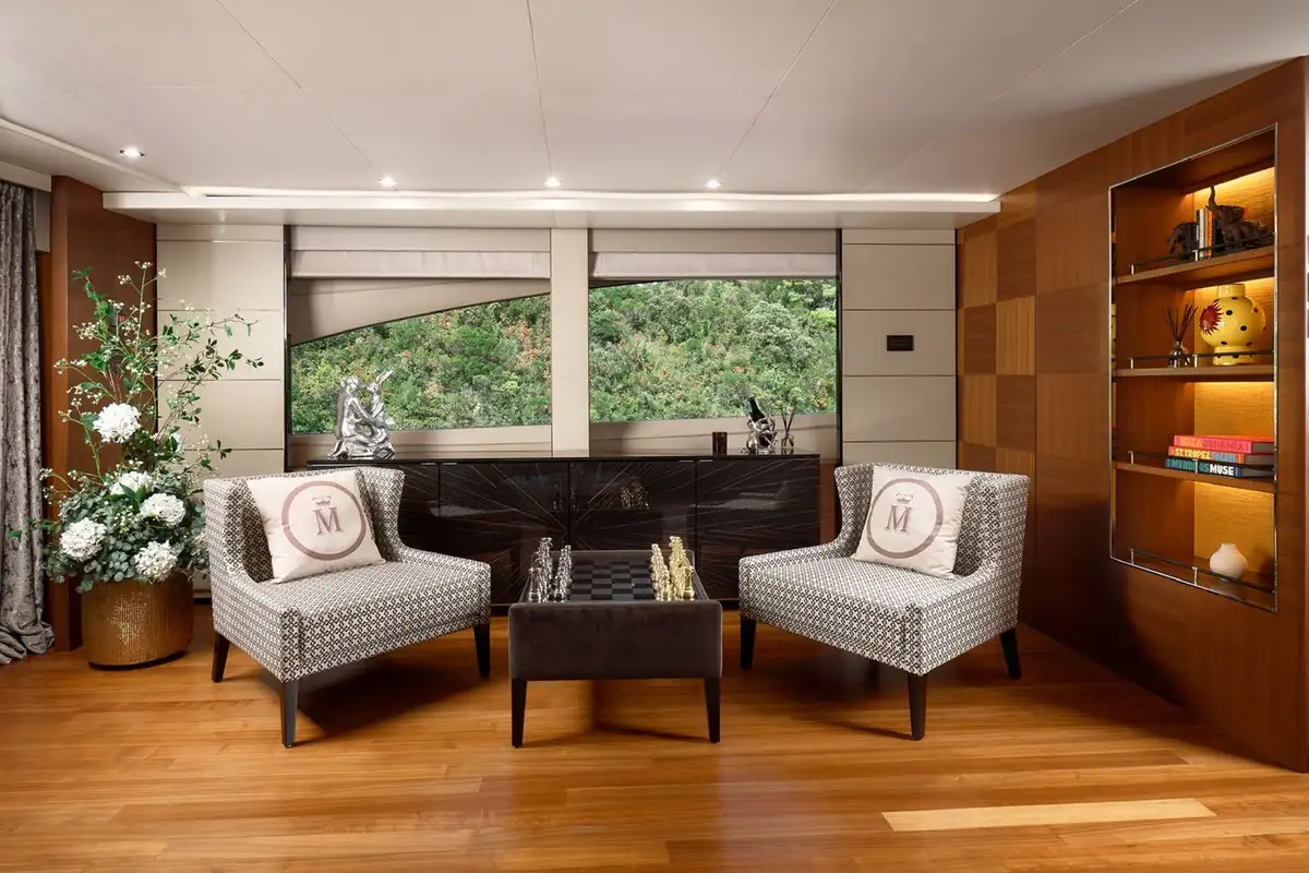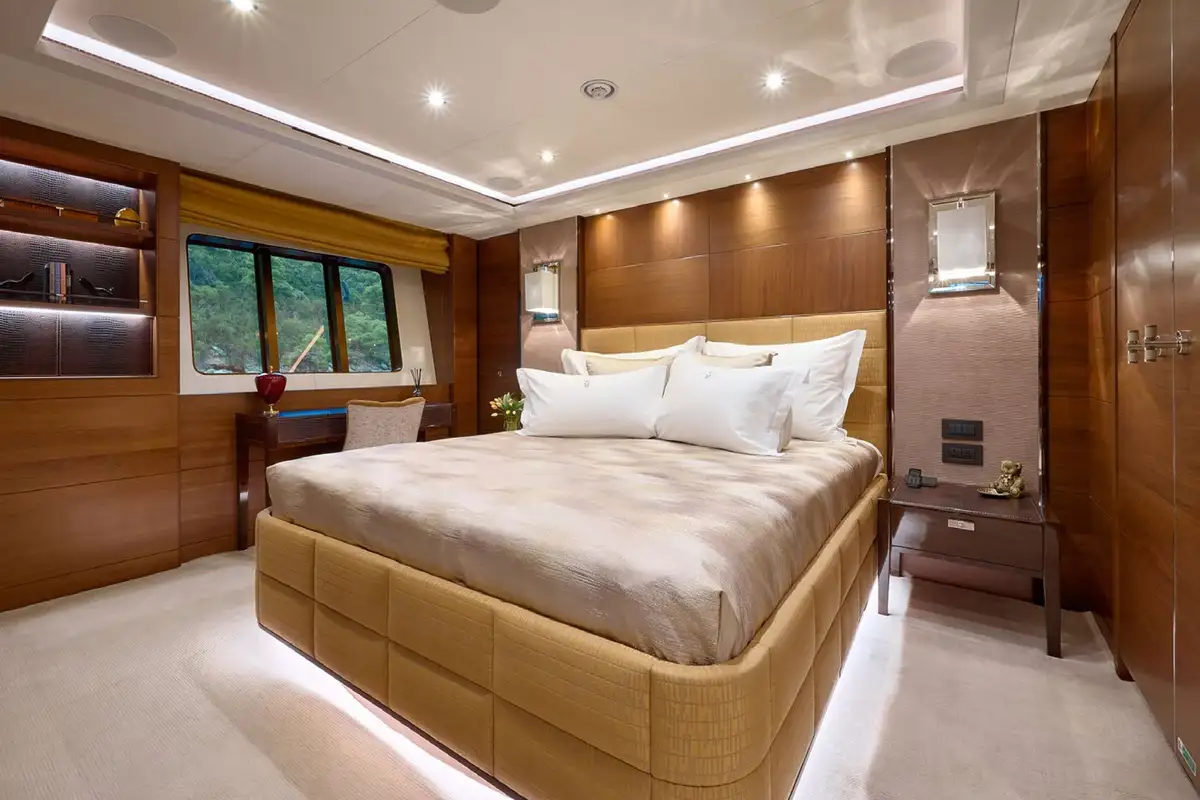 Accommodating up to 12 guests in six elegant cabins, MIRAGE IV is perfect for larger families or groups of friends. The layout includes a mix of doubles and twins for flexibility, all served by a highly trained crew of seven dedicated to delivering a relaxed and refined charter experience. Every space aboard is thoughtfully designed, creating a warm, welcoming atmosphere with an unmistakably upscale feel.