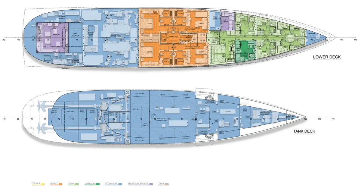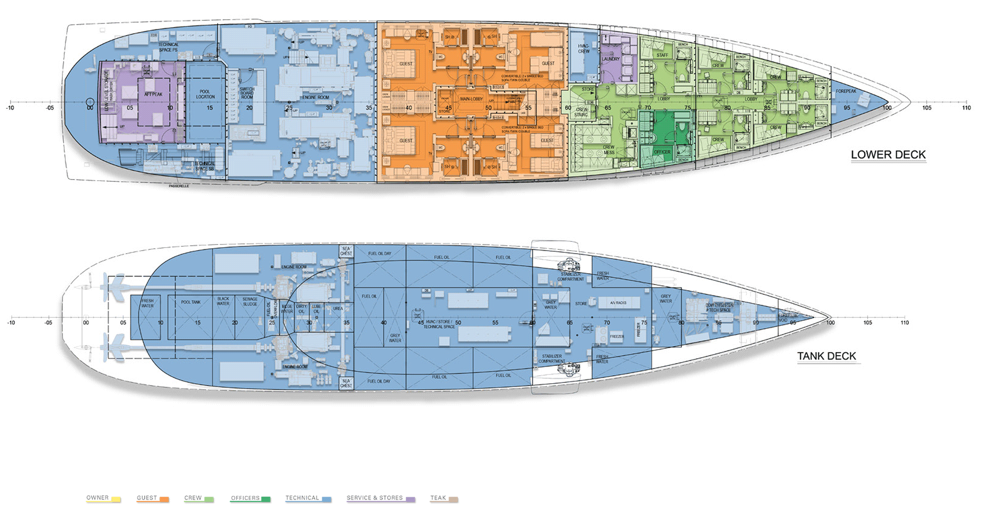 - Zero speed stabilisers to reduce any rolling motion while at anchor