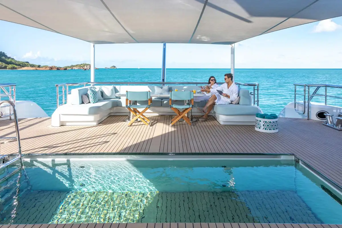 - Lowering pool with swim jet on the main deck